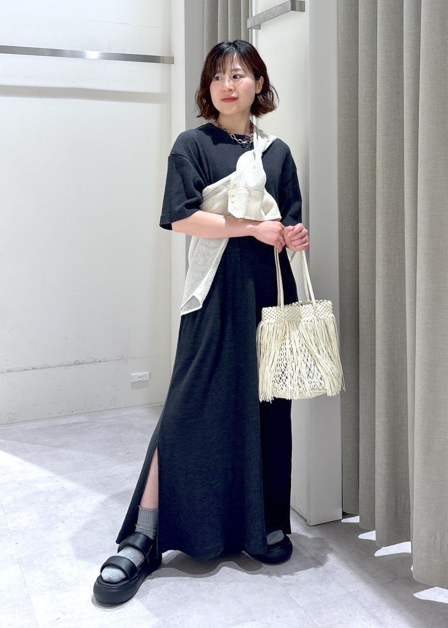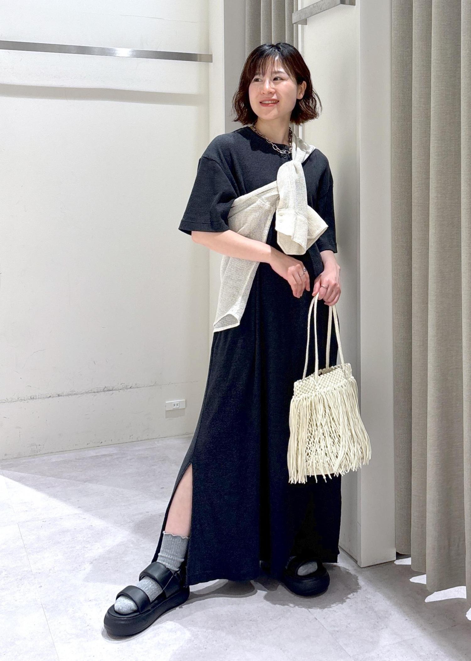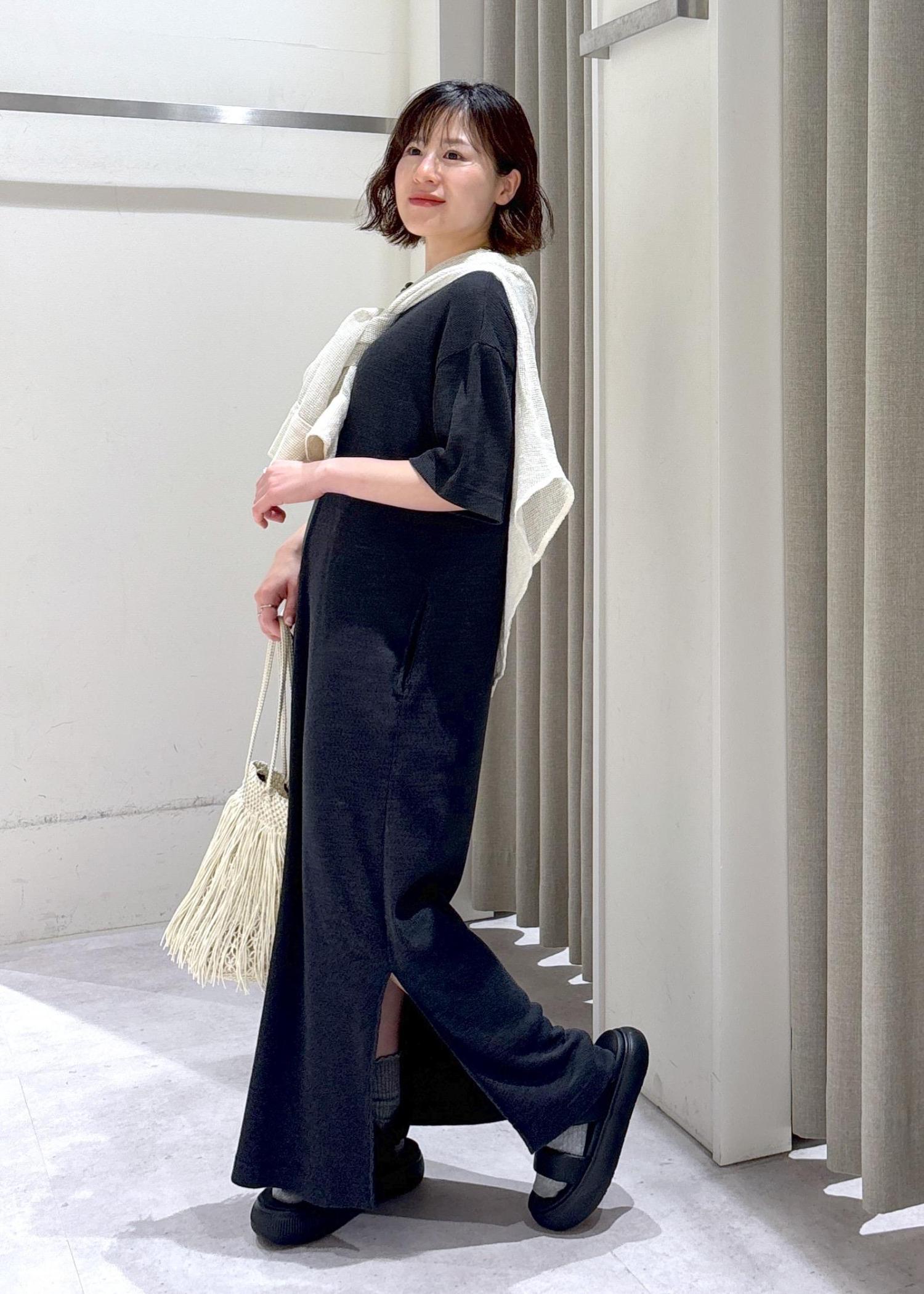 足元にスリットが入っており足の肌見えでさらに抜け感もあり重たくなりすぎない楽ちんワンピース! -