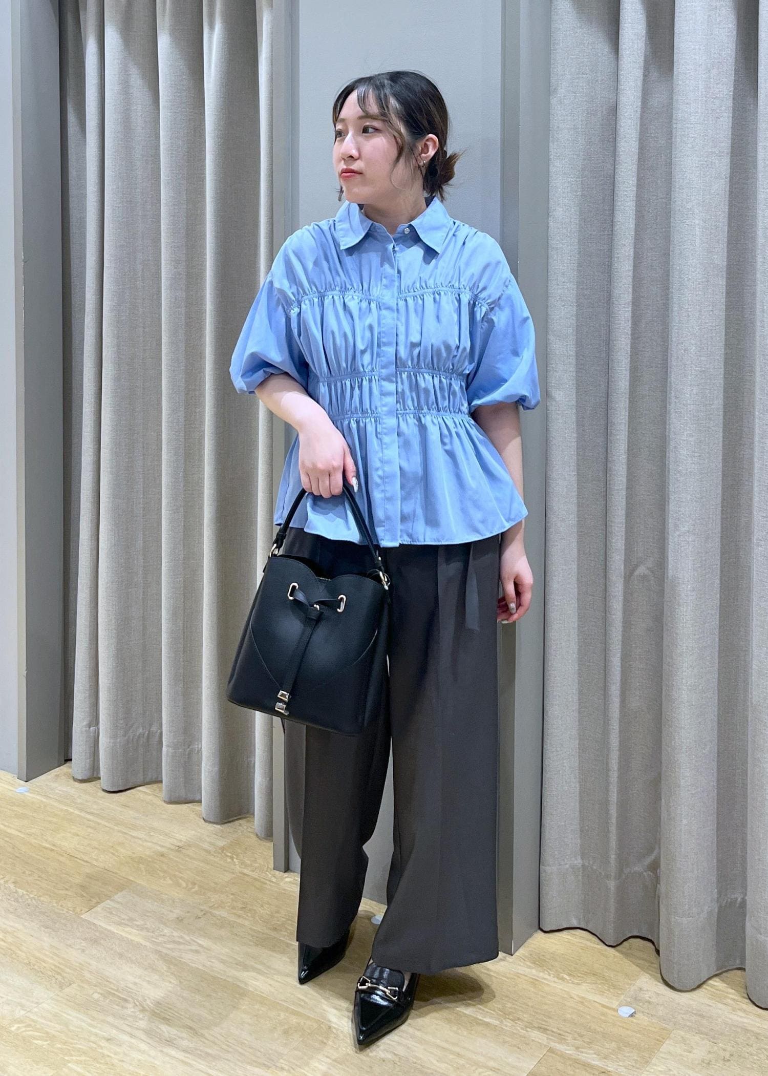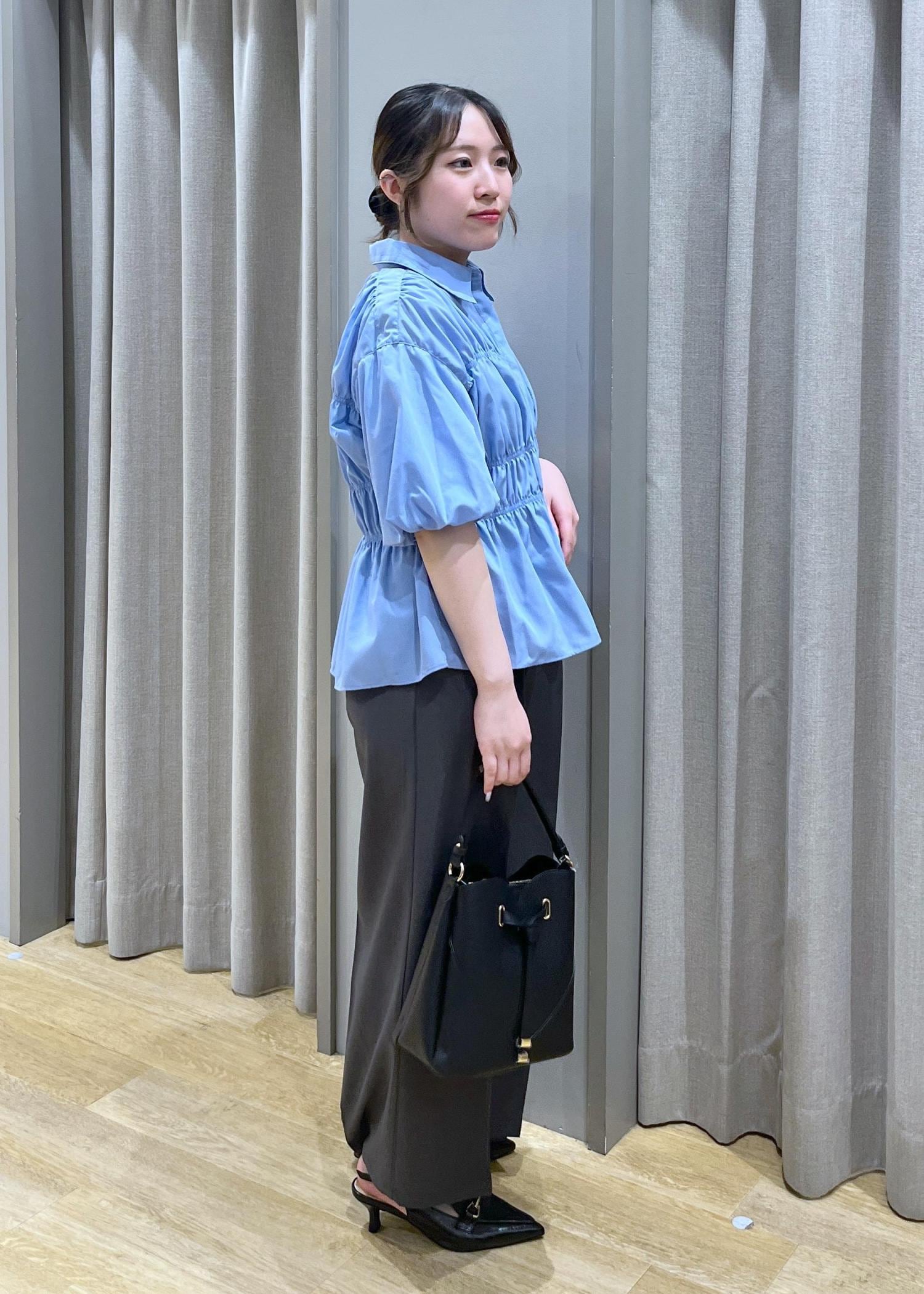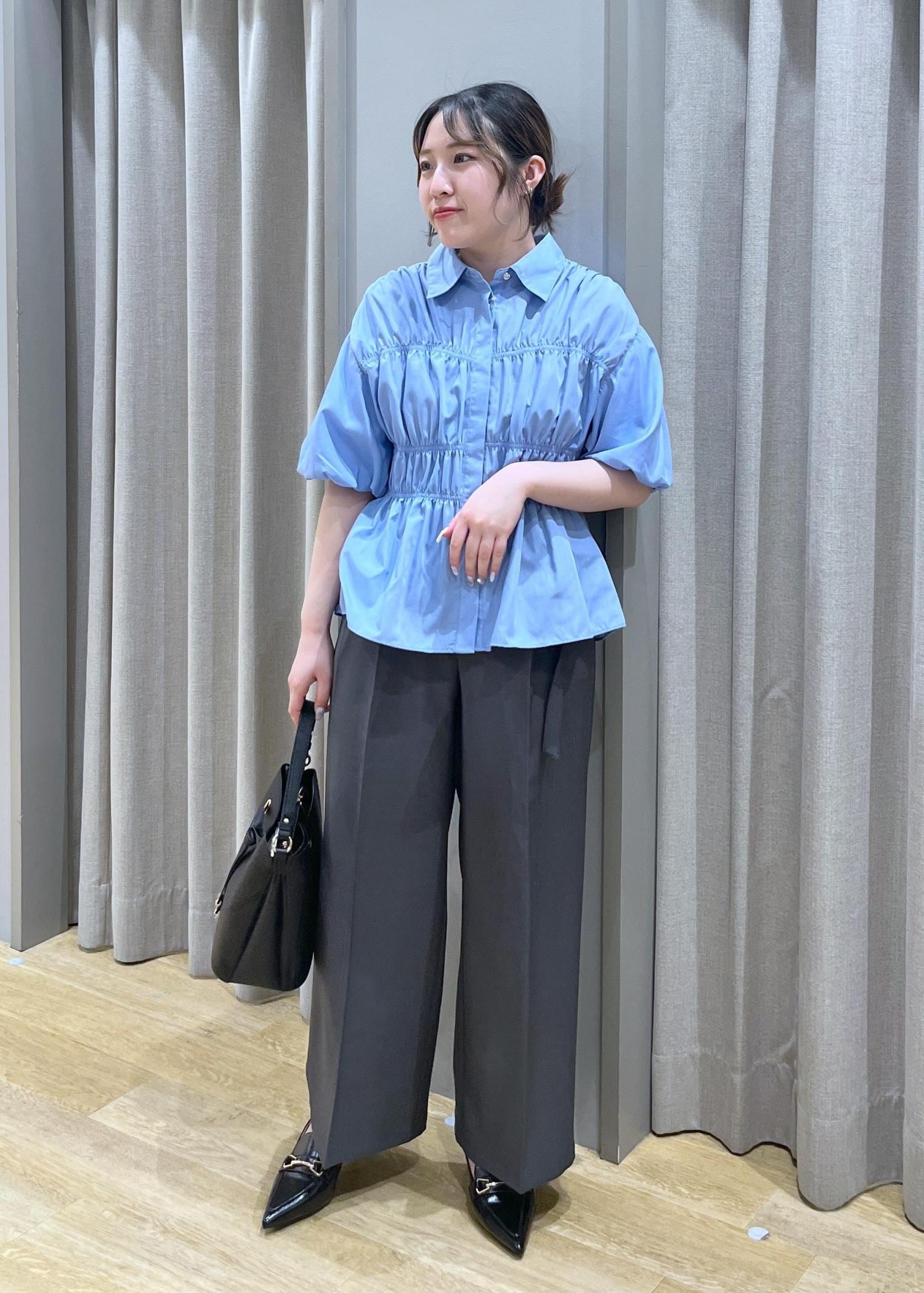 程よいボリュームのあるブラウスと、ワイドパンツを合わせました。