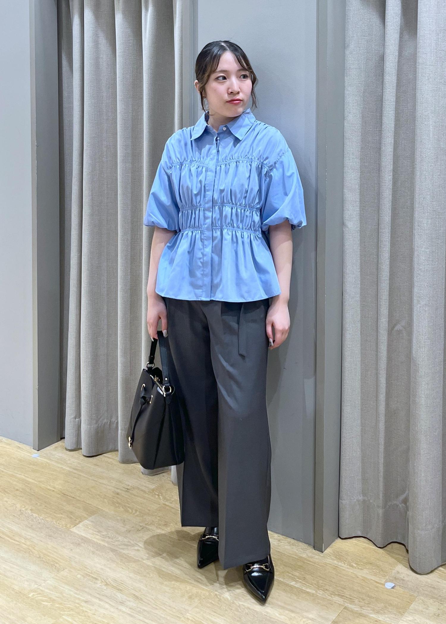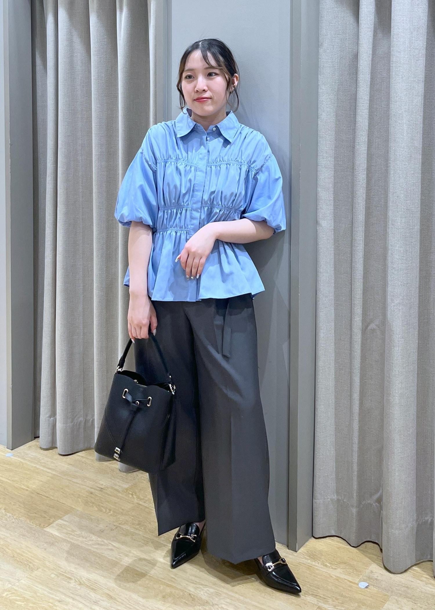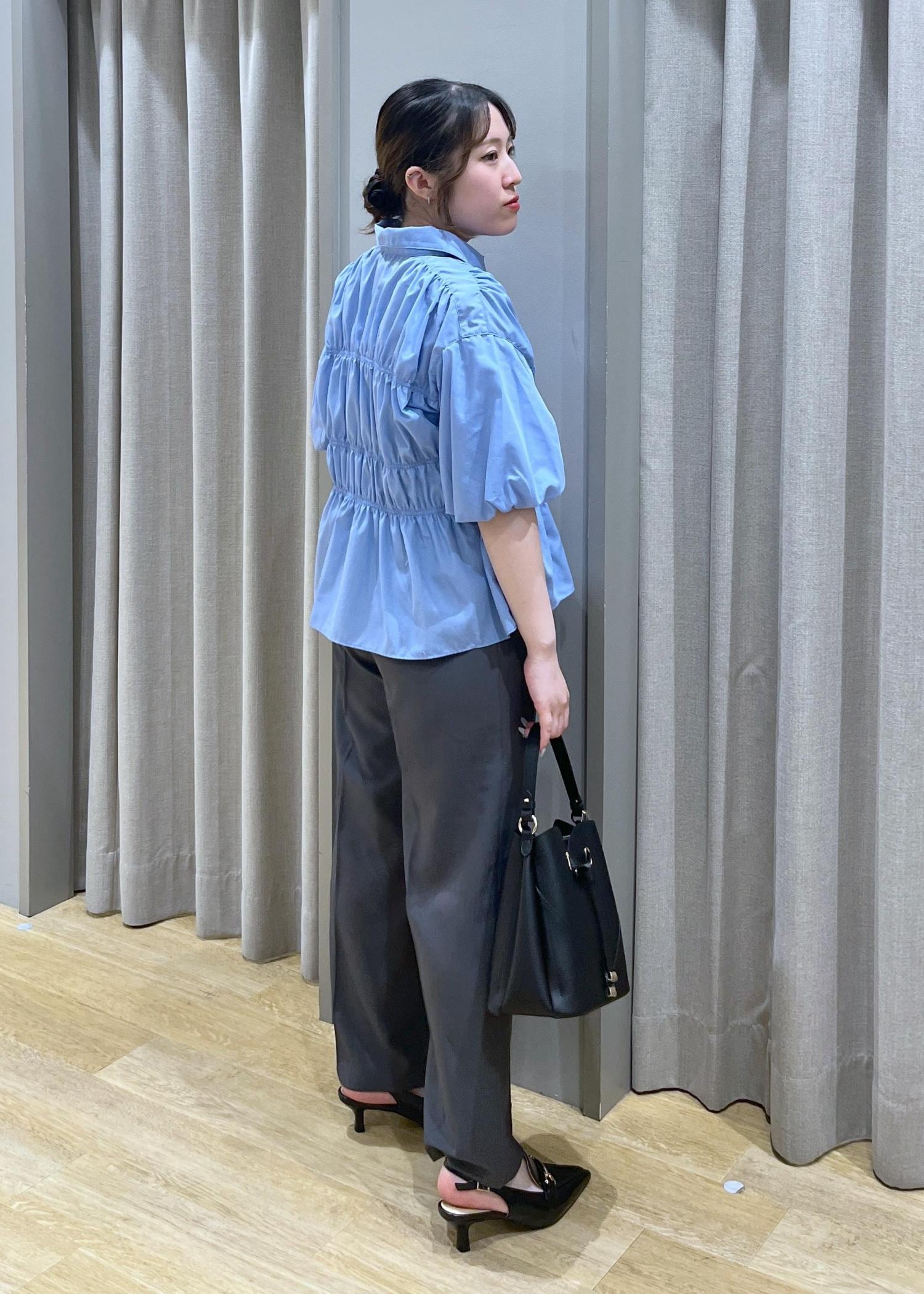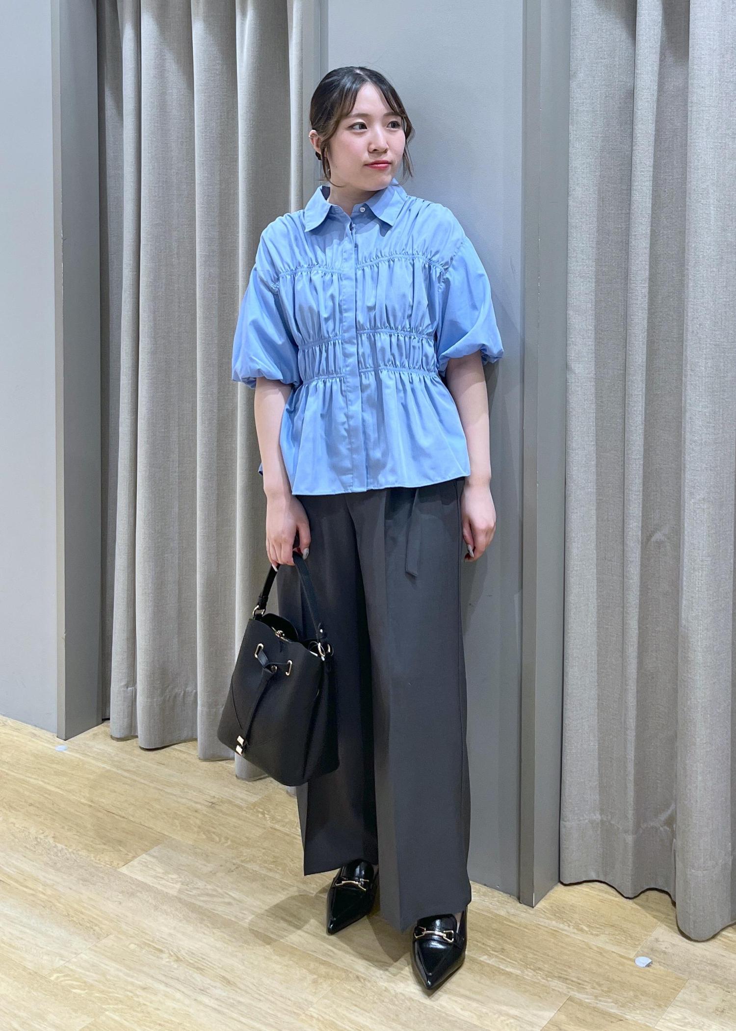 程よいボリュームのあるブラウスと、ワイドパンツを合わせました。
