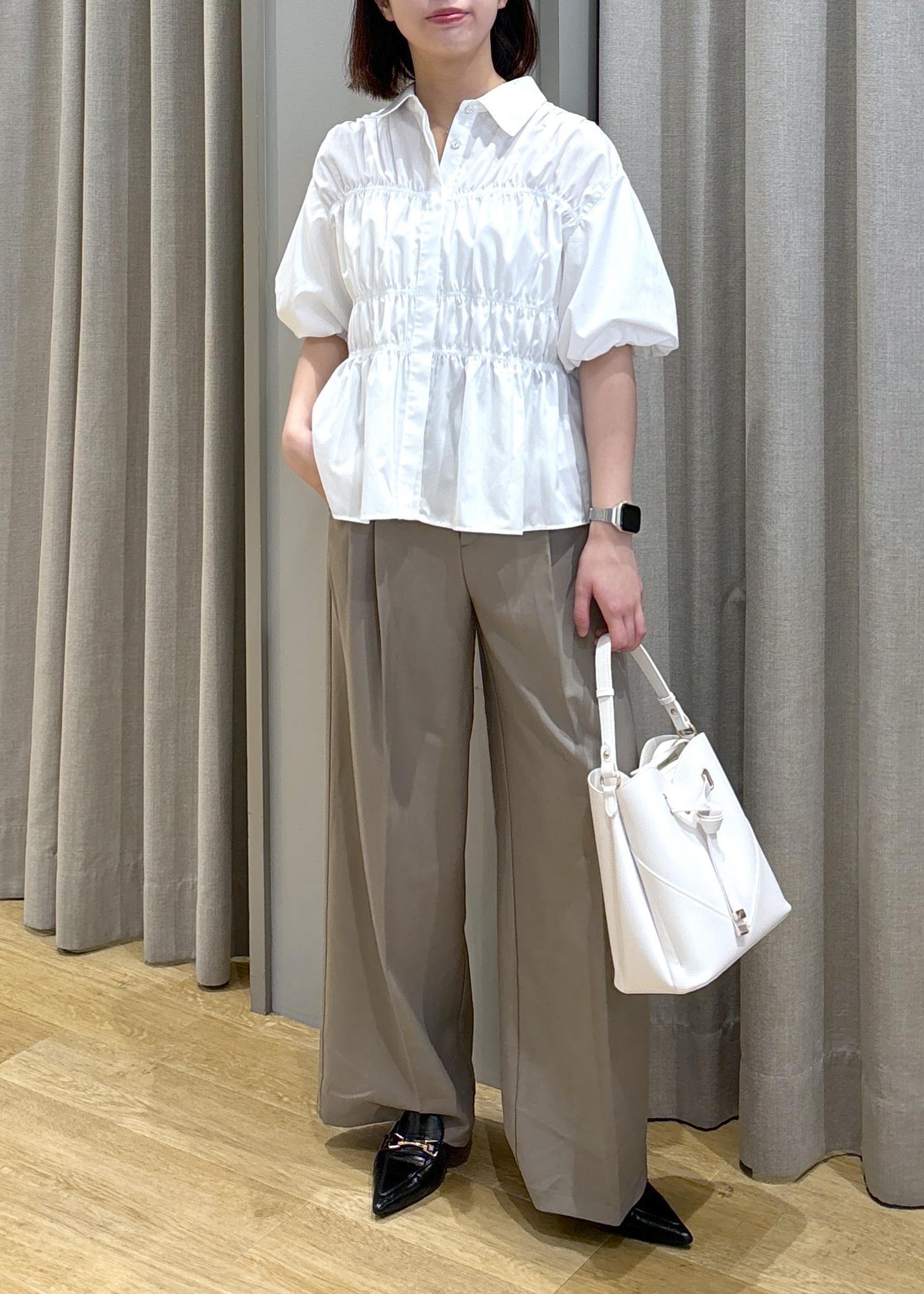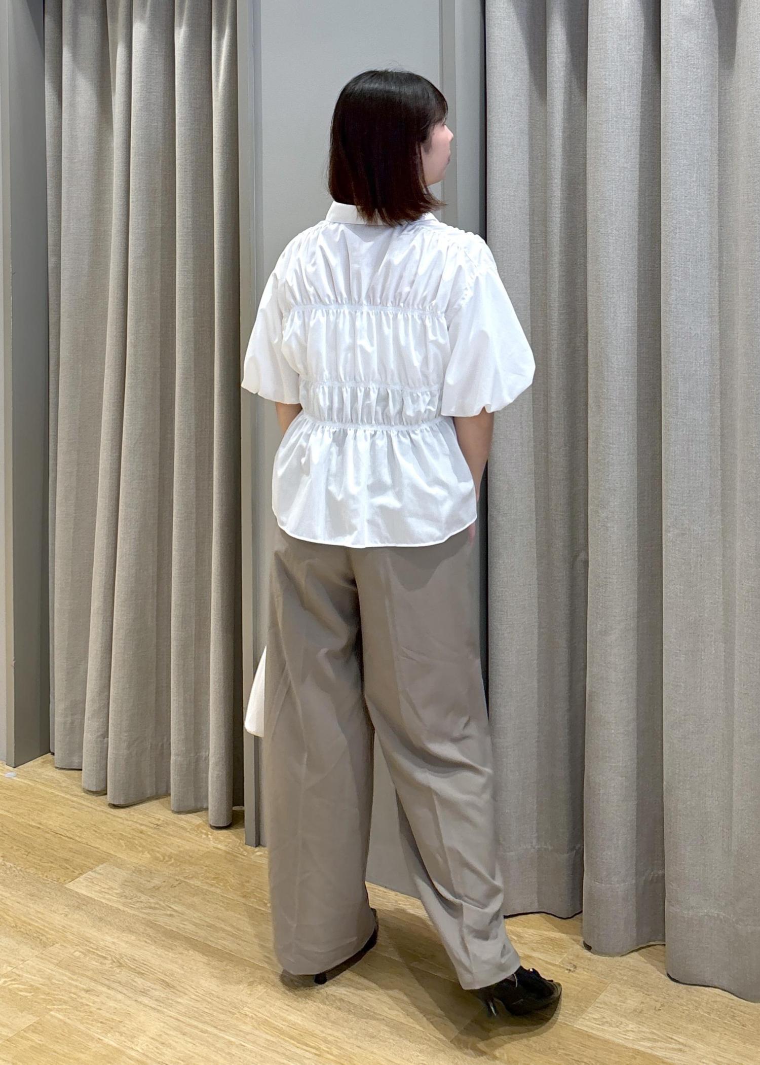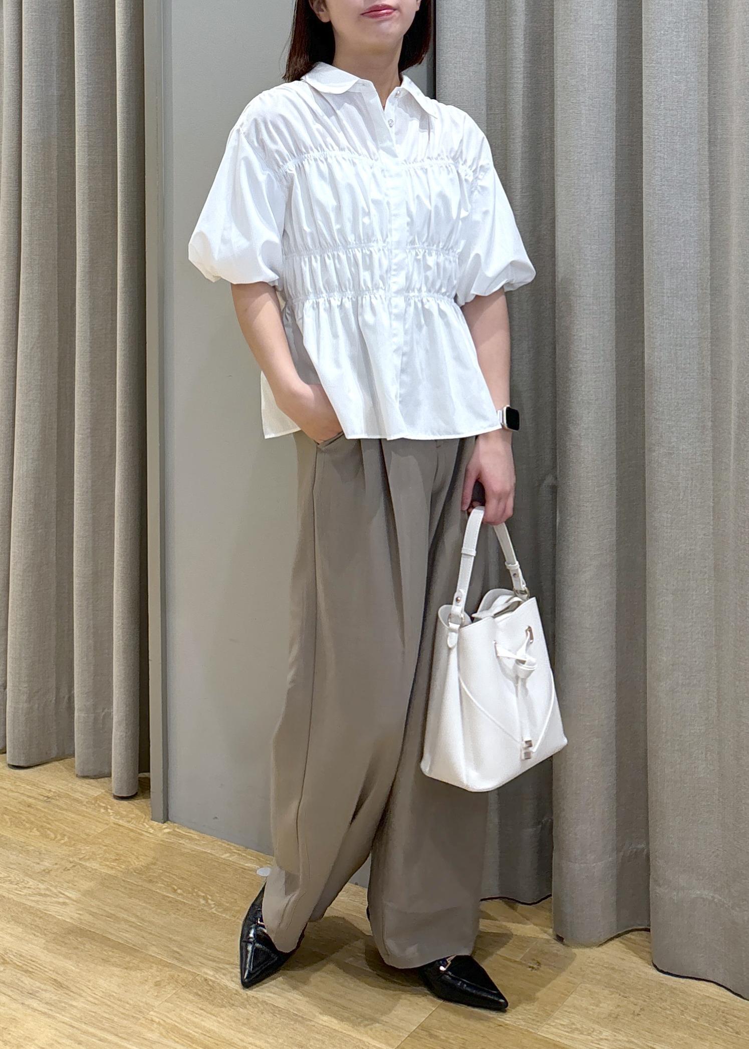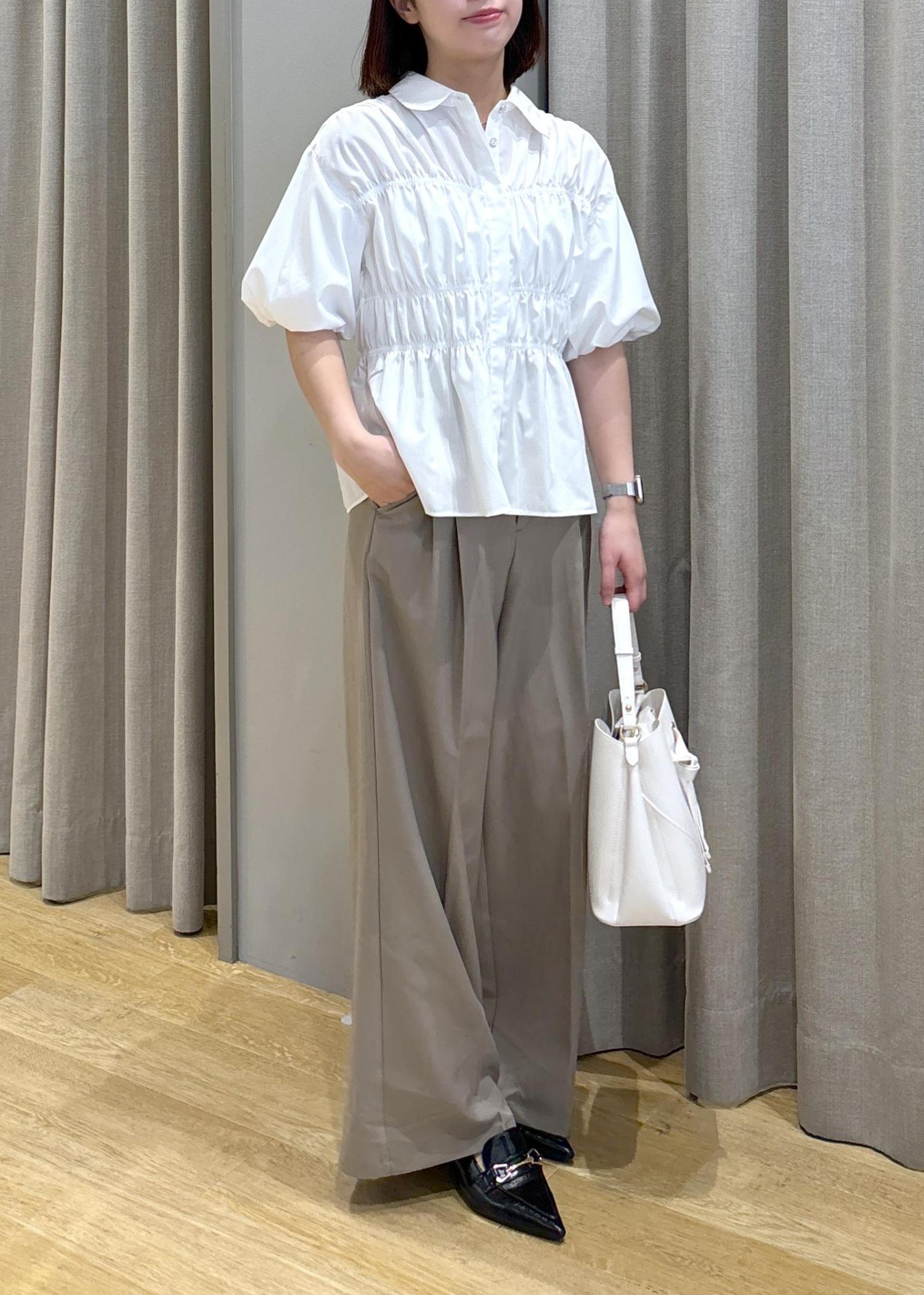 VIS【新色追加】【店頭人気】シャーリングバルーンシャツホワイト / F¥5,489レビュー身長158cm、Fサイズ着用。