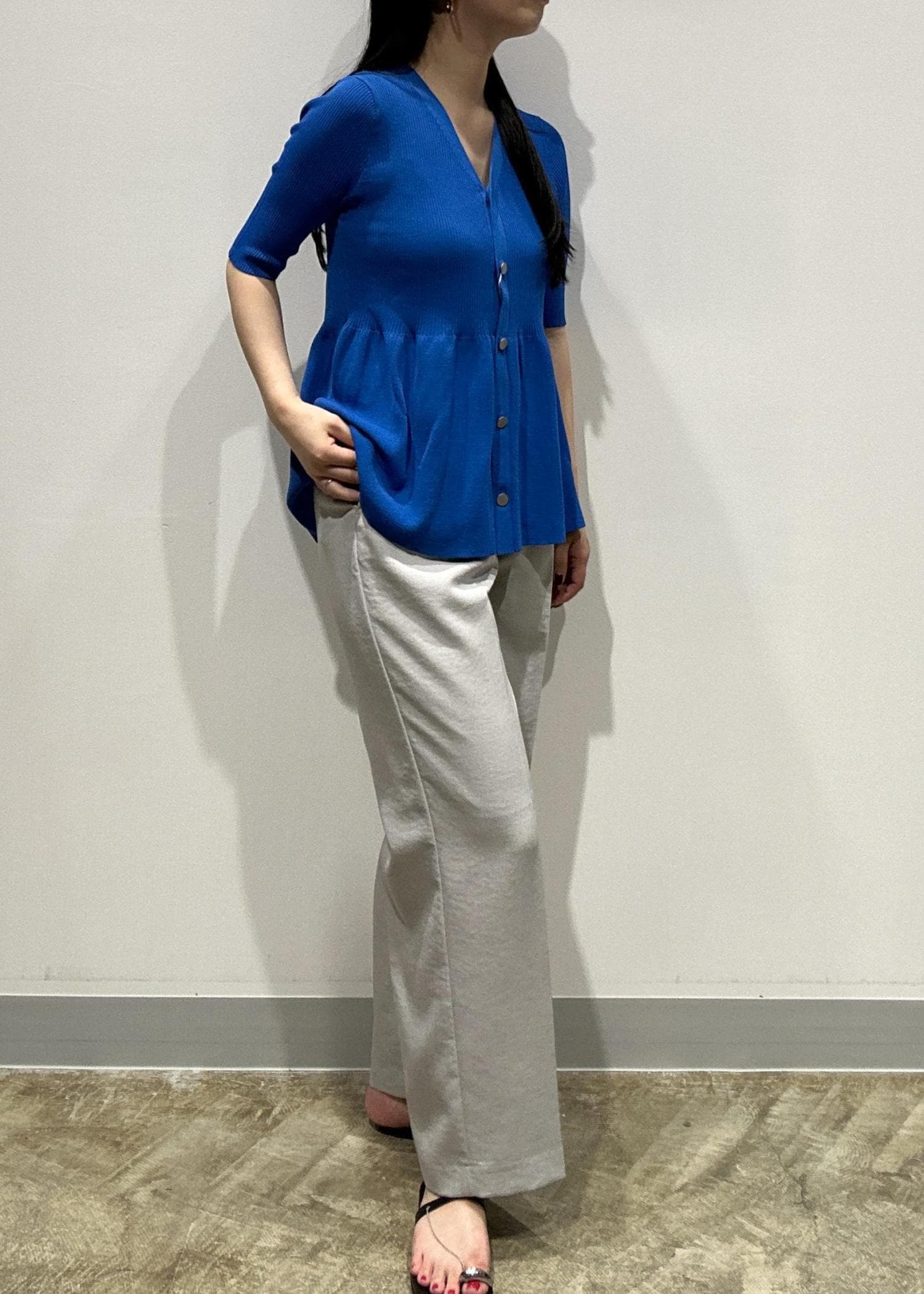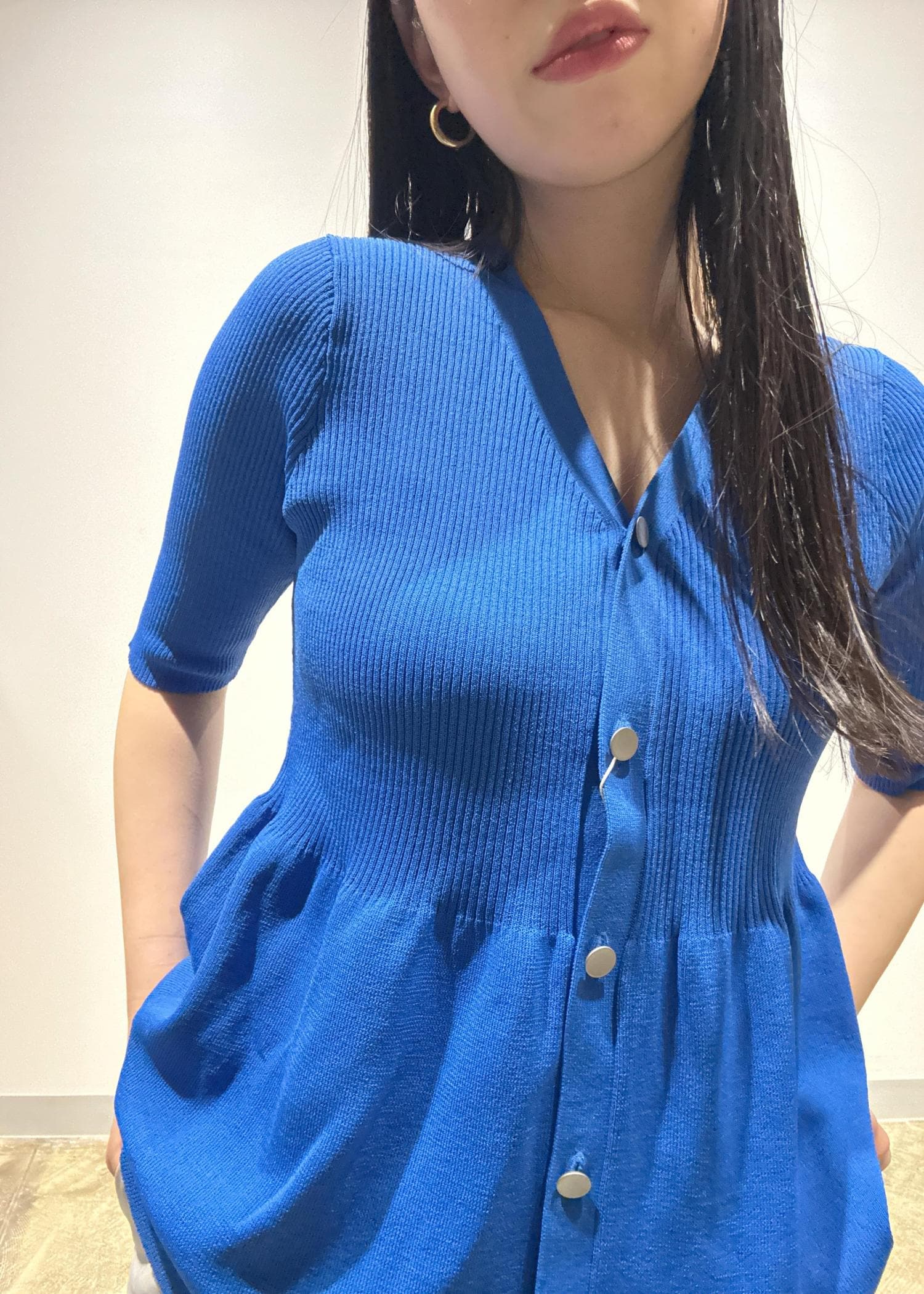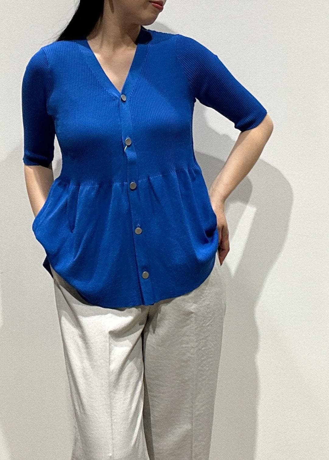 LE CERCLE par ropé【UVケア/接触冷感】ペプラムリブ5分袖カーディガンブルー / F¥3,795