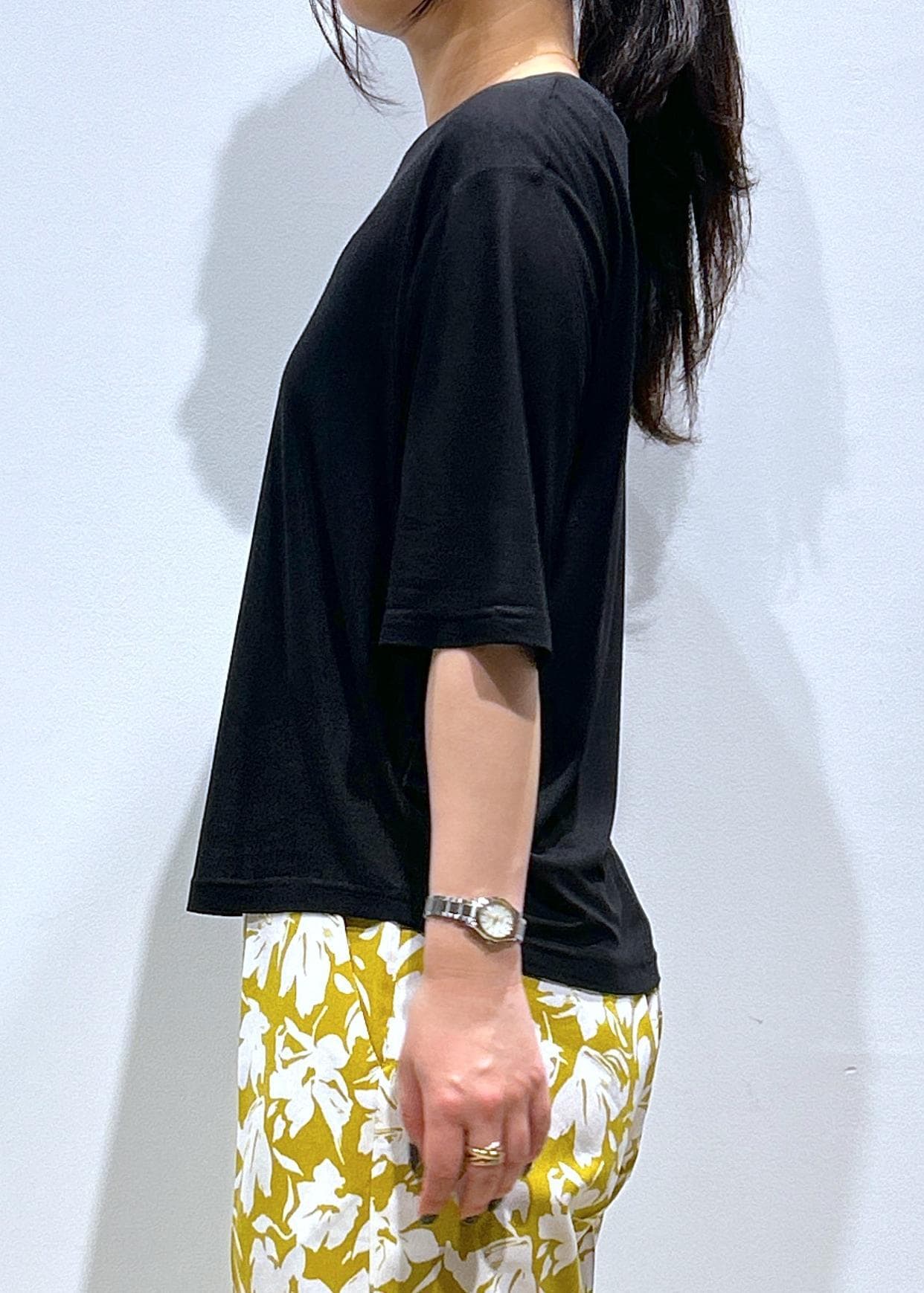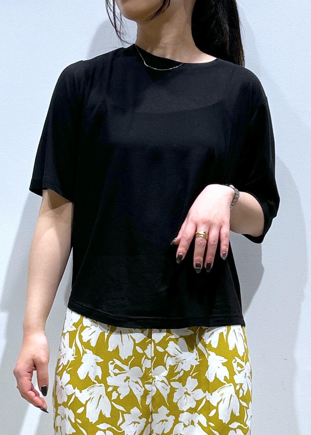 LE CERCLE par ropéシアー5分袖Tシャツブラック / F¥4,290レビュー二の腕が隠れる袖、腰が隠れる丈感です。