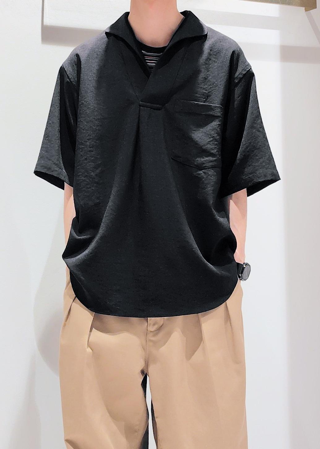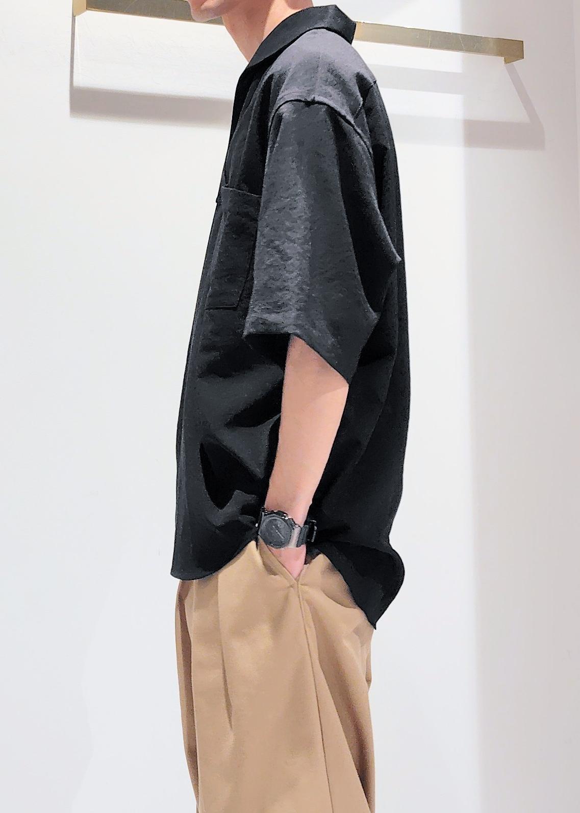 ADAM ET ROPÉ HOMME【WEB限定】リネンライク フロントタック スキッパーシャツ / 防シワ / ユニセックスブラック / M¥9,460レビュー174cm Mサイズ