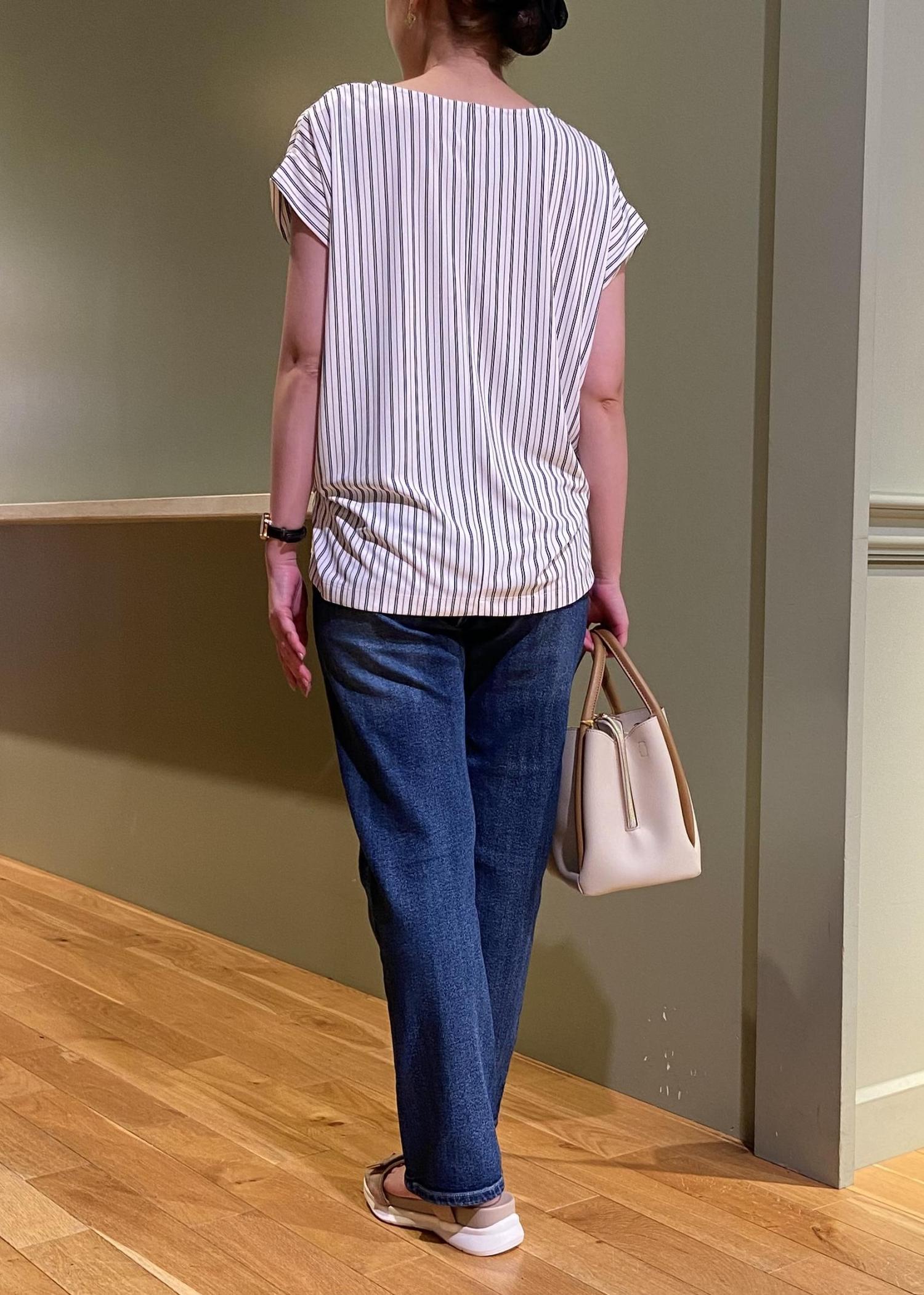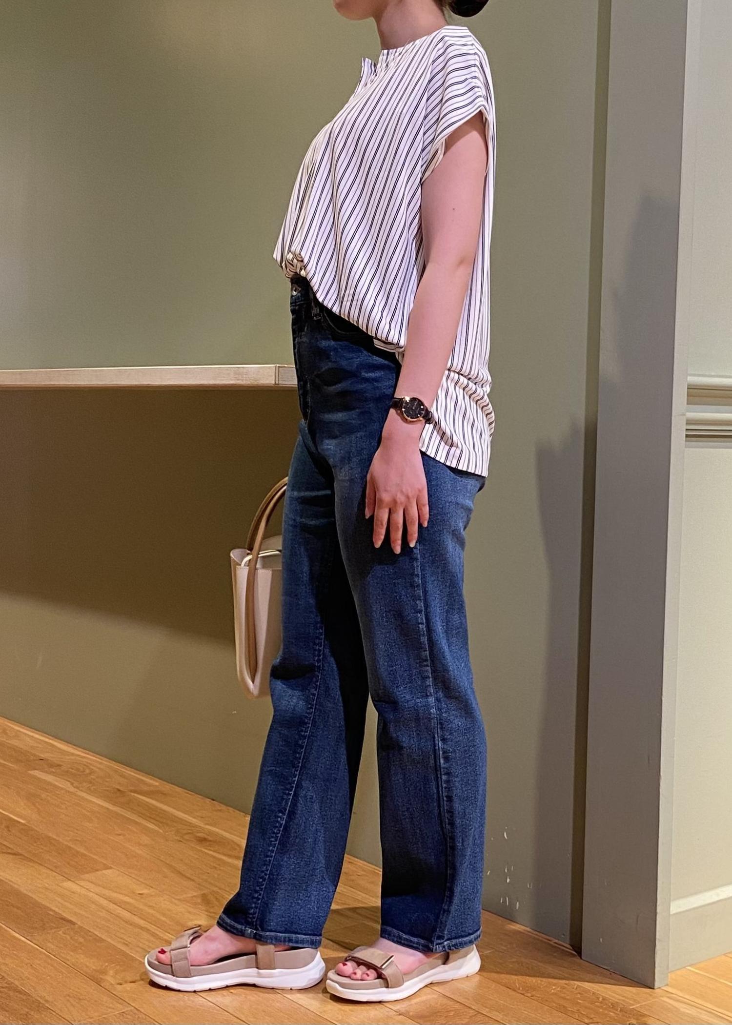 裾は長めですので少し折るかヒールのあるパンプスやサンダルを合わせるのがオススメです。 -