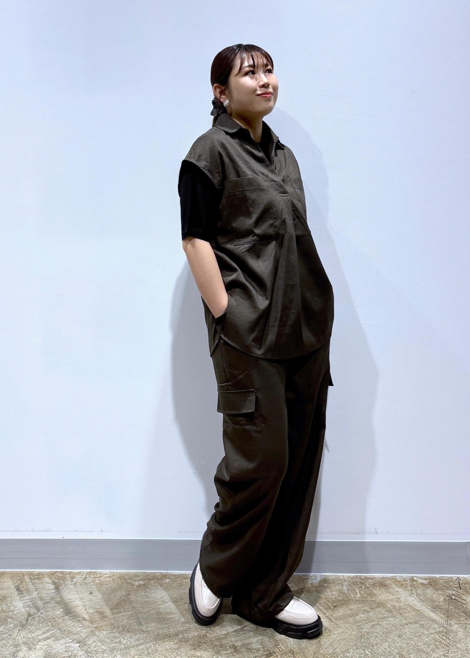 リネンライクでさわやかなスキッパーシャツとカーゴパンツのセットアップコーデ