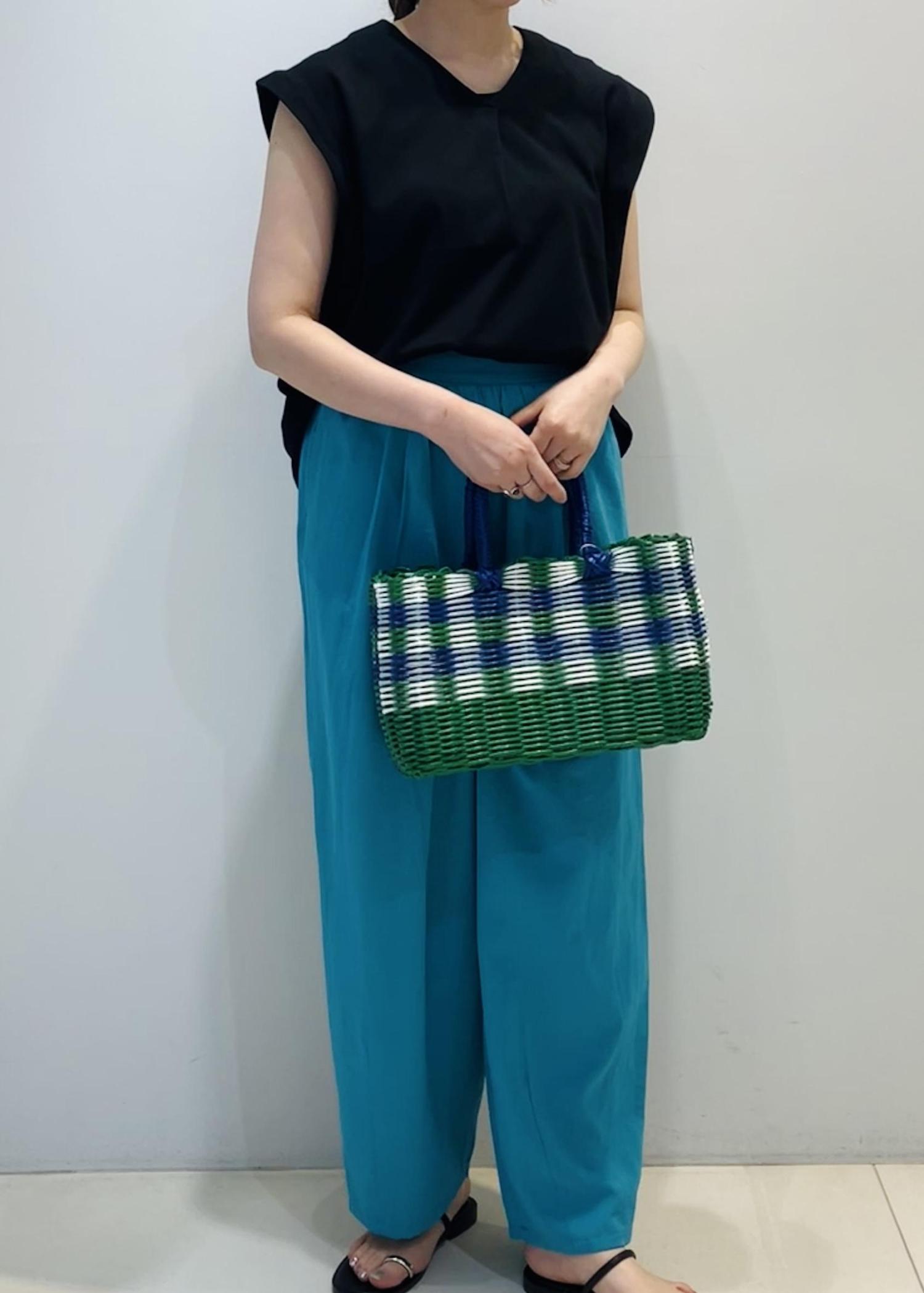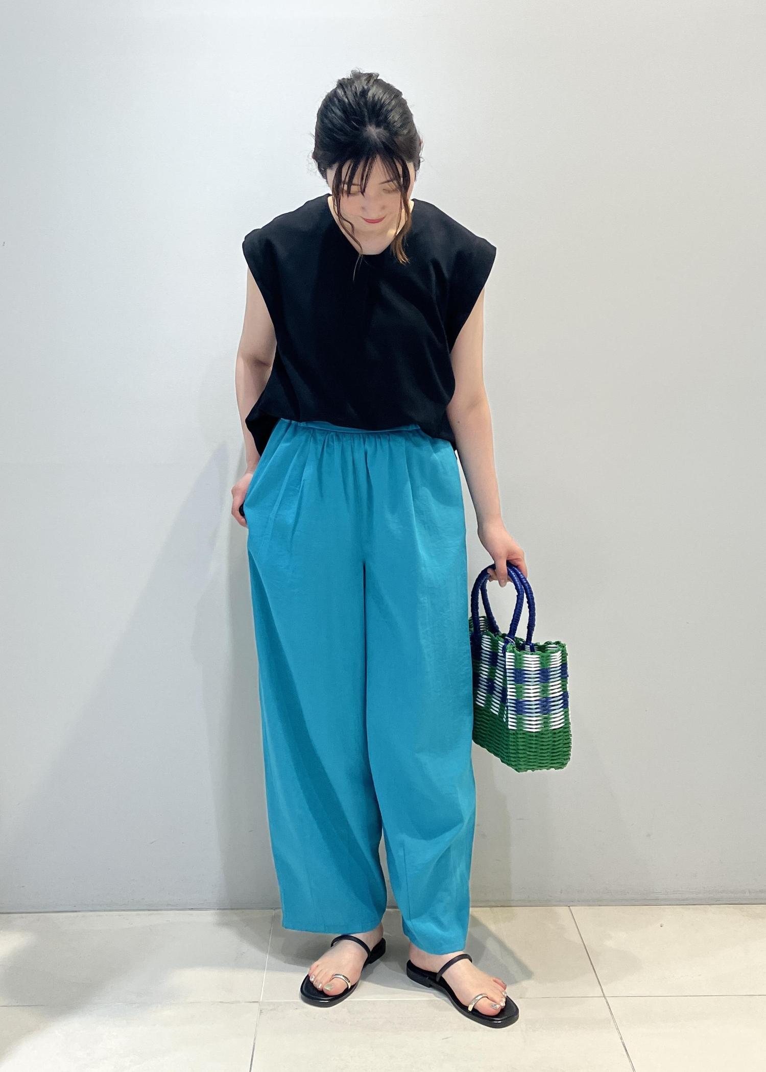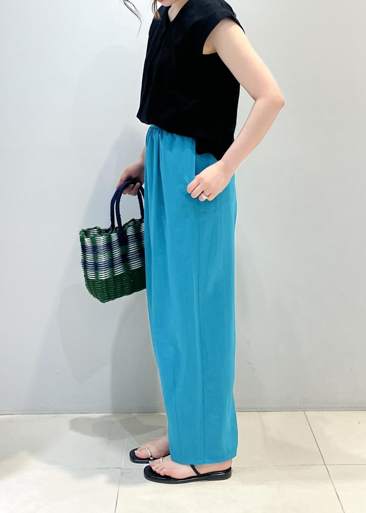 LE CERCLE par ropé麻調リラックスワイドパンツターコイズ / F¥4,345レビュー【着用感】