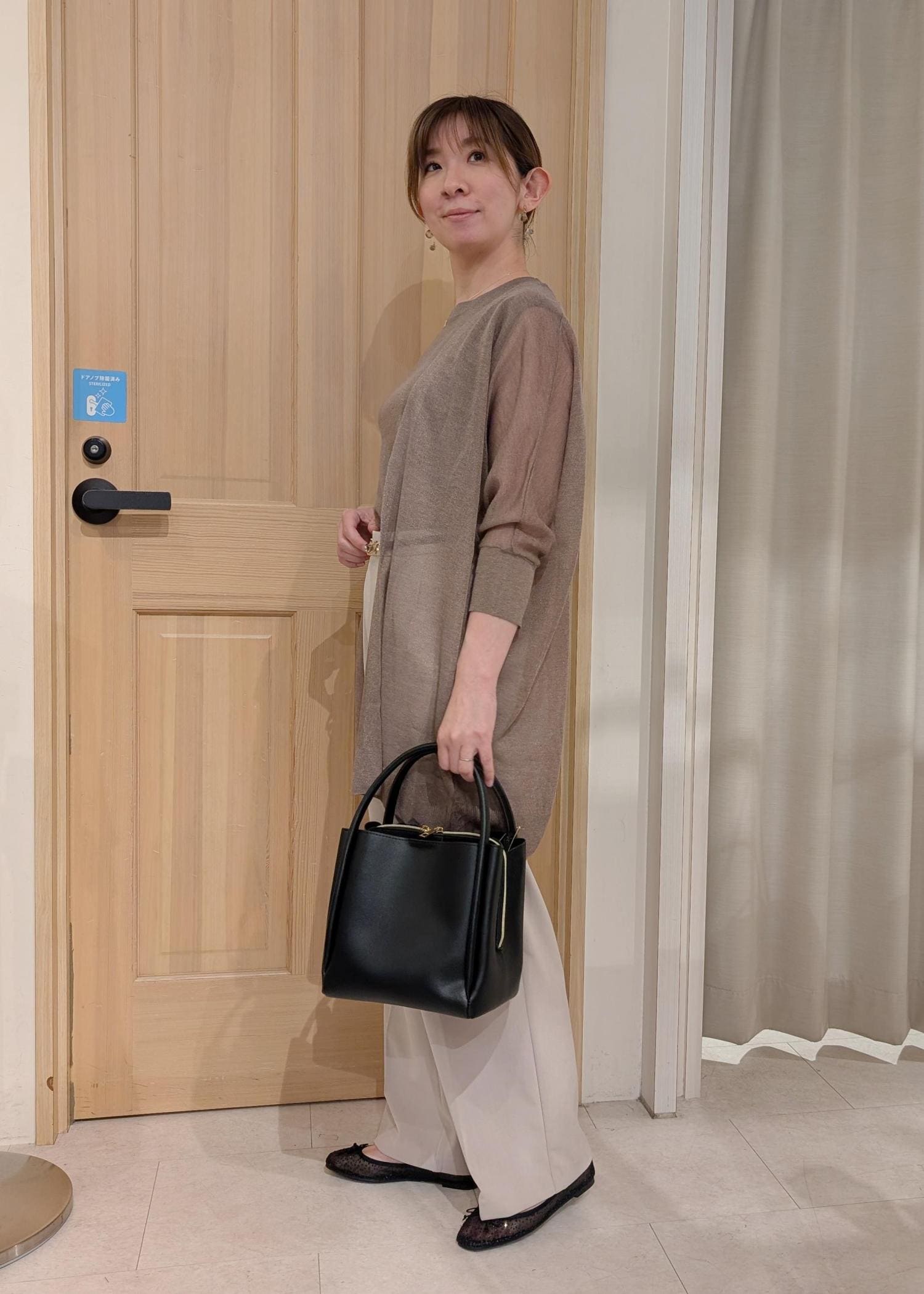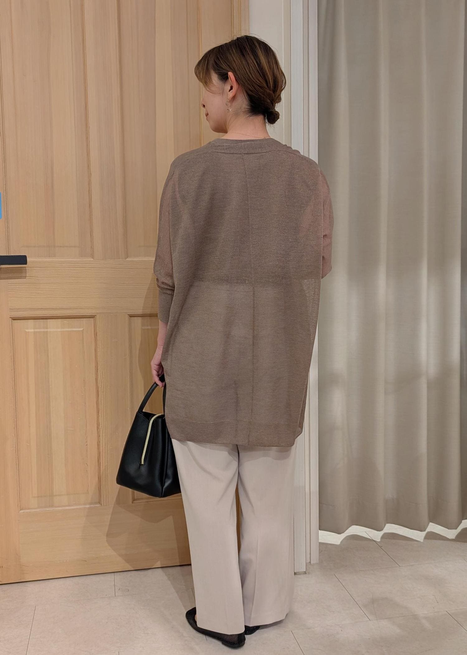 柔らかなトーンでまとめた大人のリラックススタイルです。
