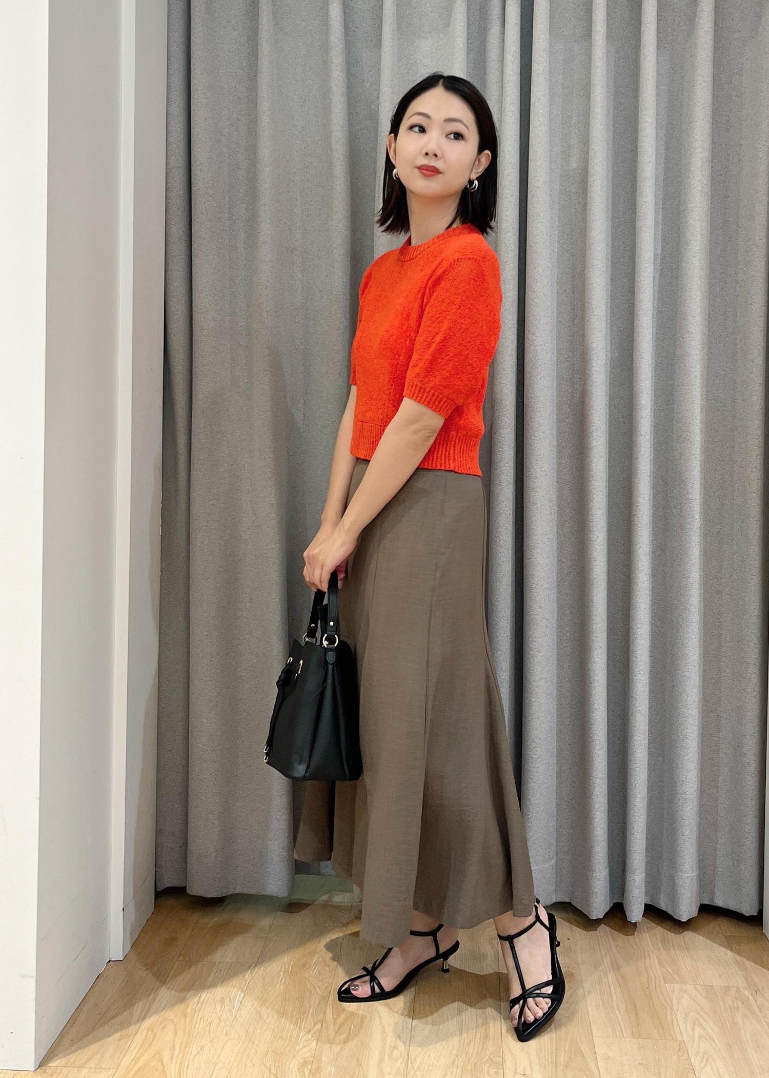 夏らしい明るいオレンジのトップスと合わせました☺︎