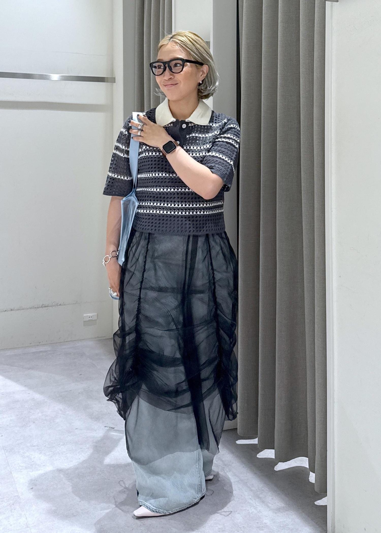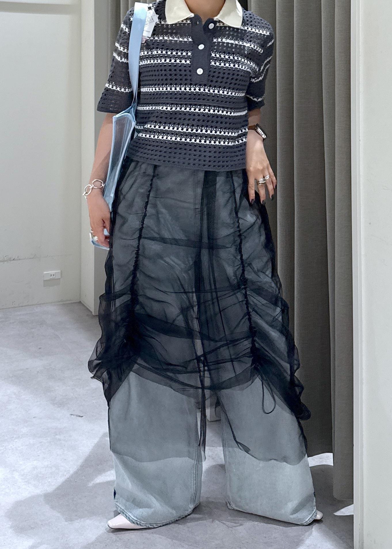 あみあみのシアーデザインのサマーニットポロ。
