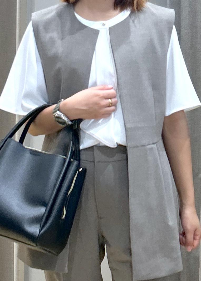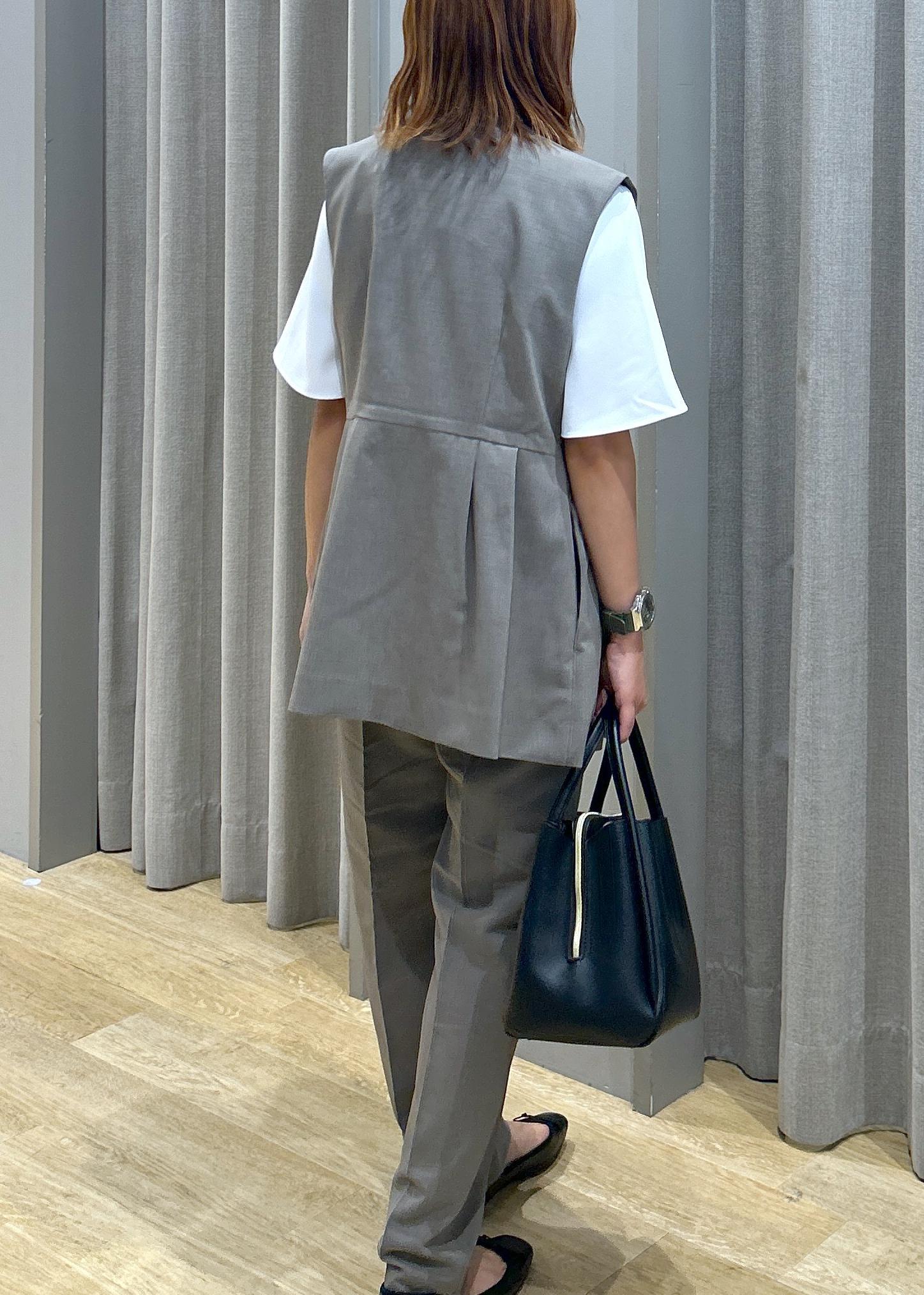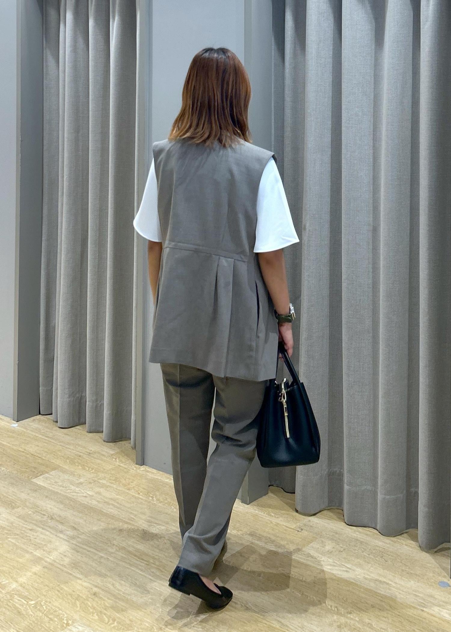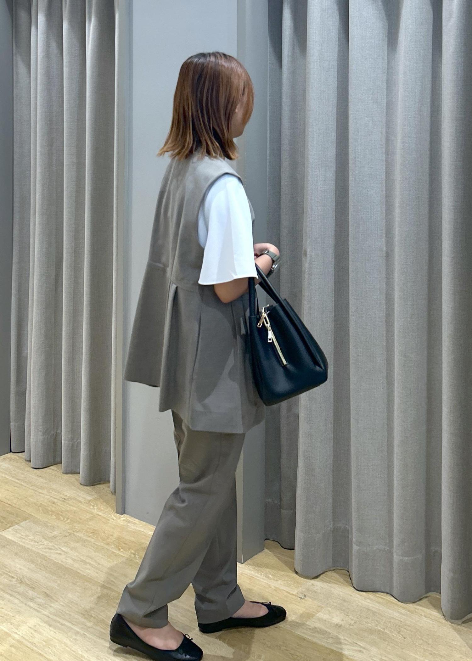 ヒールのある靴を着用するか、ベルトでしっかり上げて履いた方がより形が綺麗です。 -