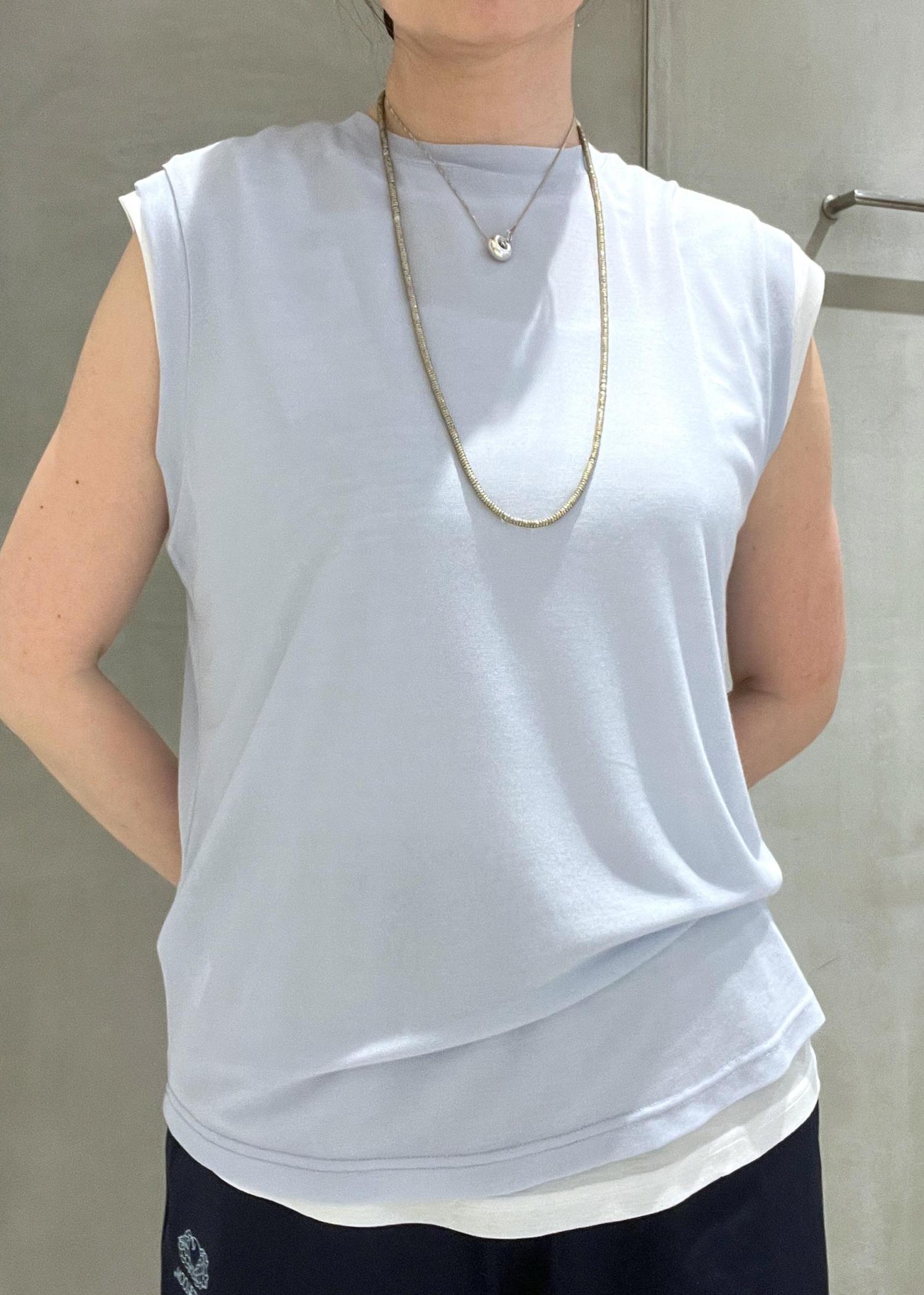 LE CERCLE par ropéシアーノースリーブTシャツサックス / F¥3,190レビューシアー素材のシンプルなタンクトップ。肩にほんの少しかかる袖口で、露出が多くないので着用しやすいです。