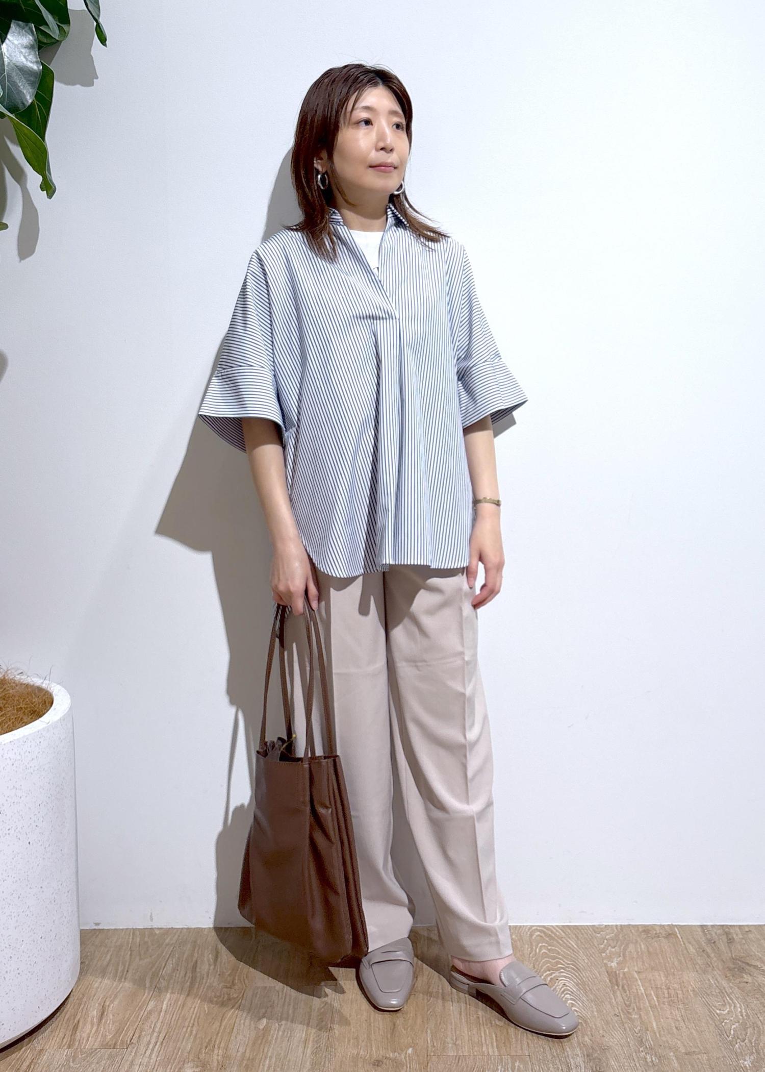ゆったりサイズでとにかく着心地楽ちんなスキッパーブラウス。