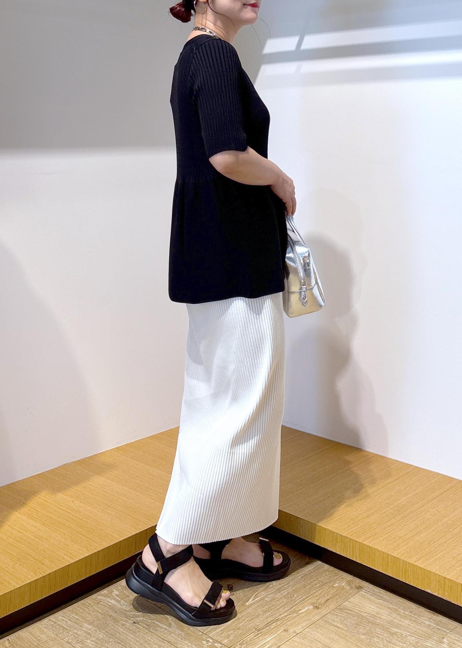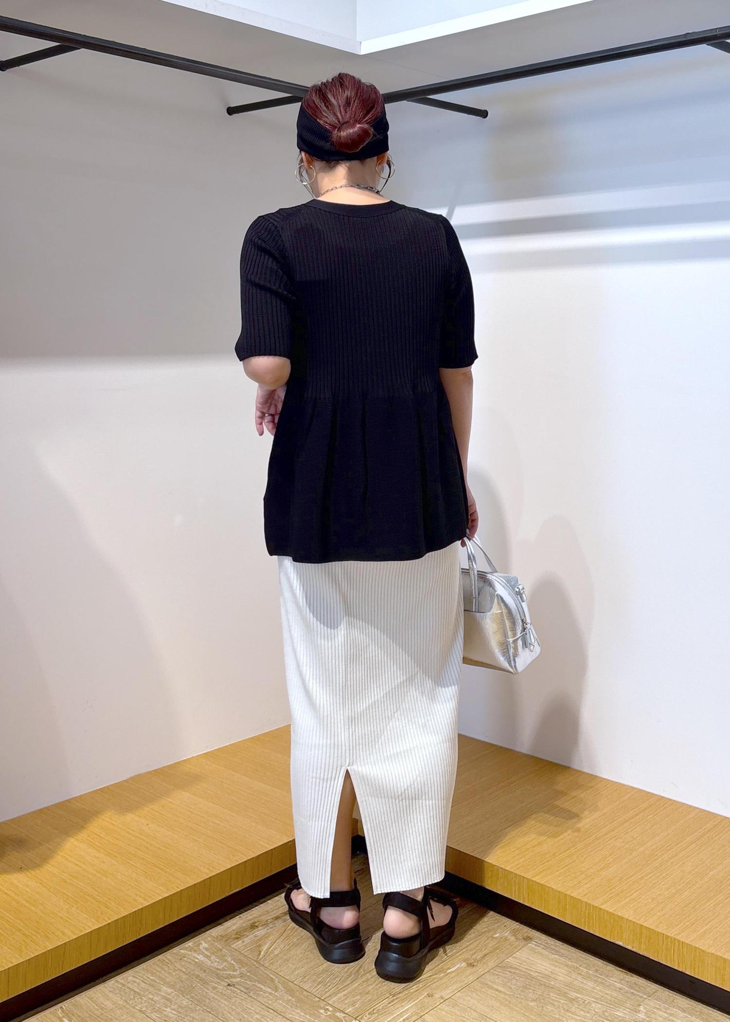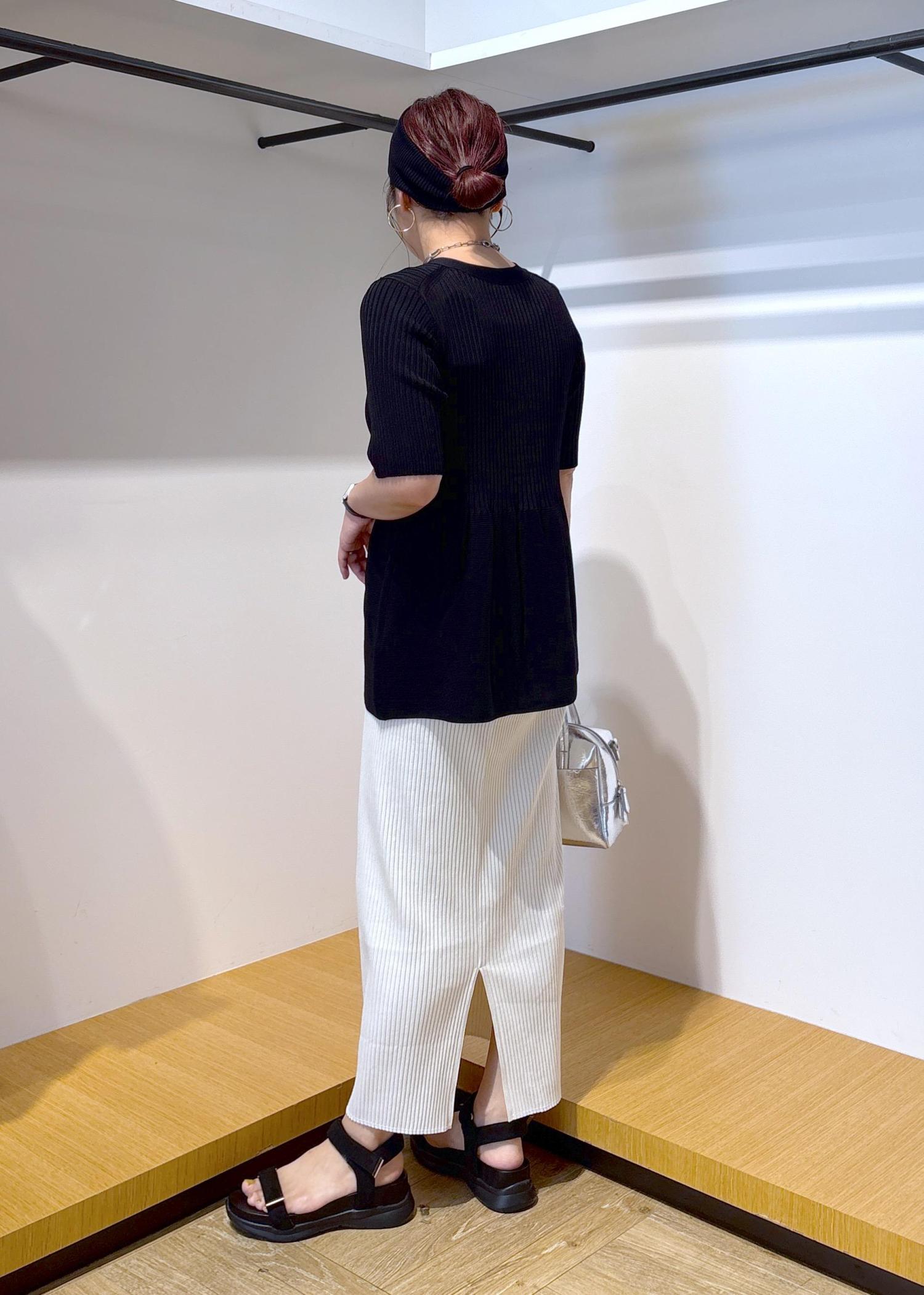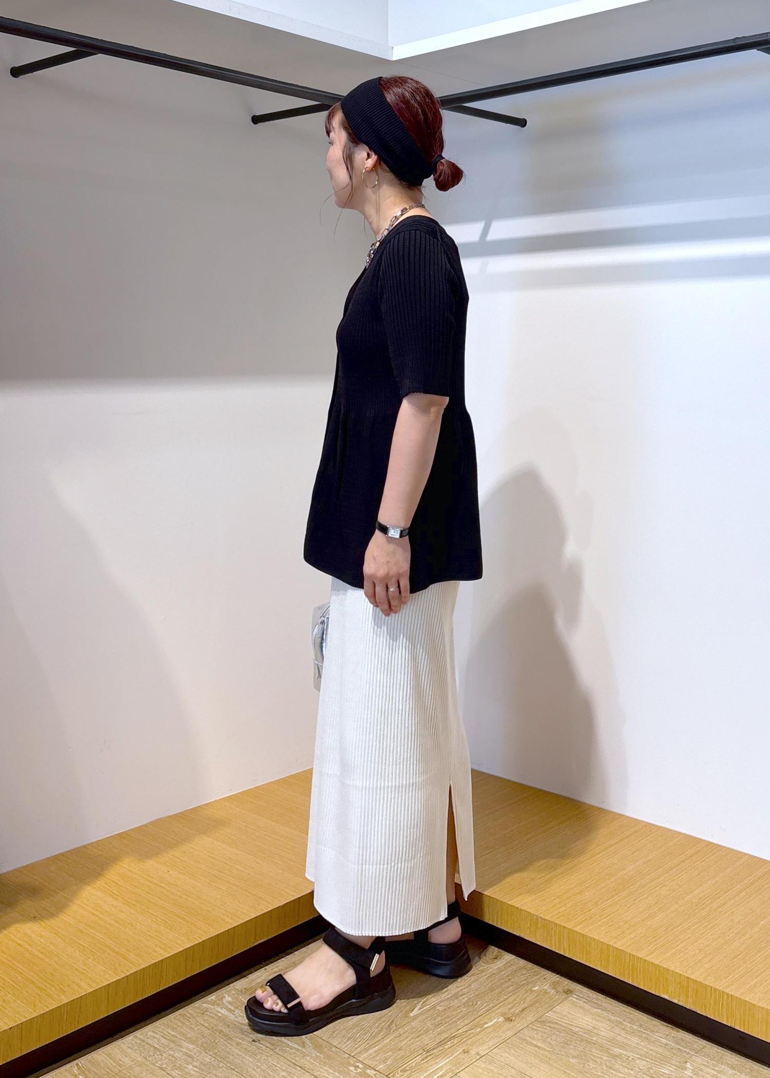 スリットを後ろで着用していますが、横にずらして履いていただくことも可能です!