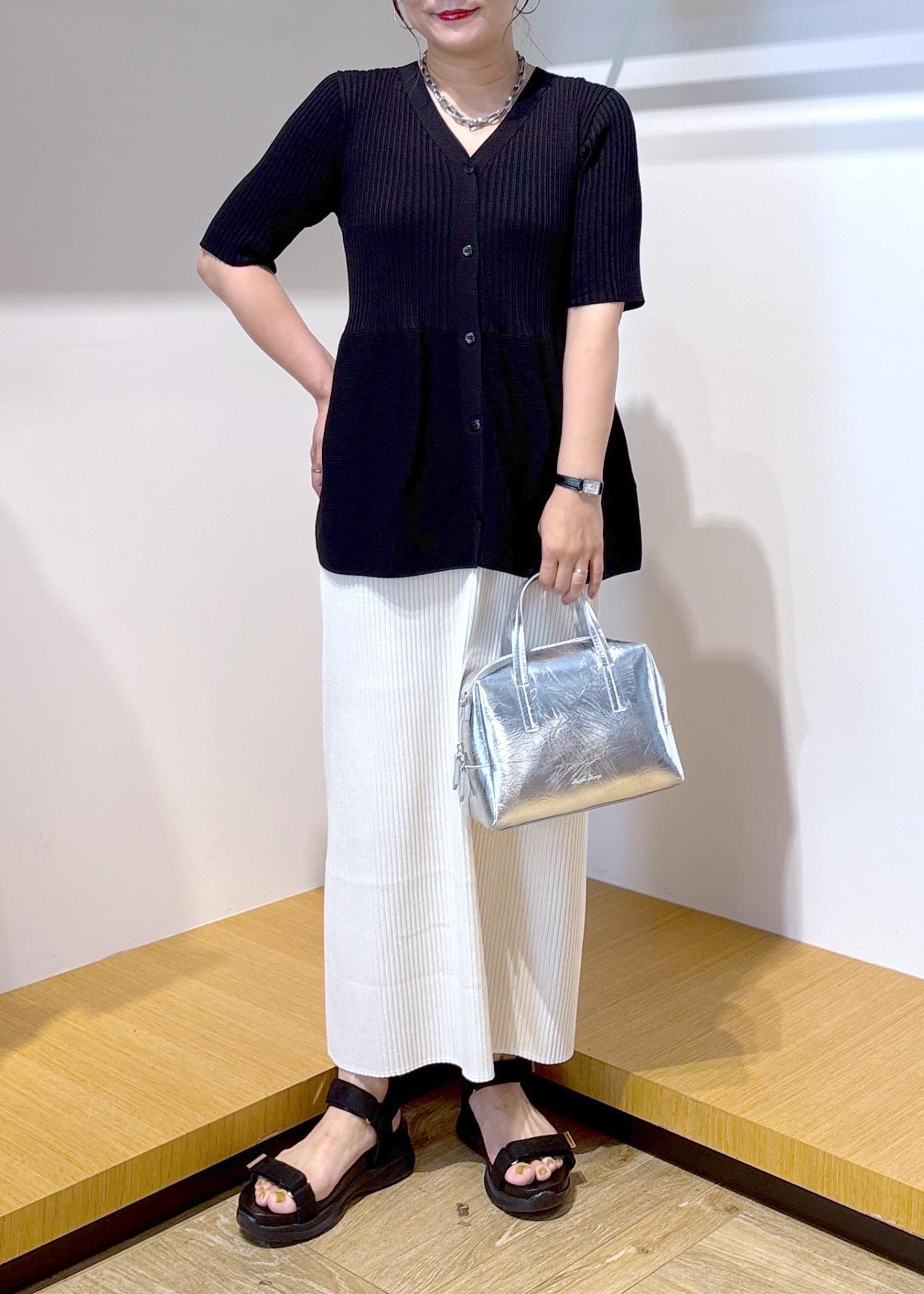 羽織りで着用しても1枚でスッキリ着用してもかわいいカーディガンを使ってモノトーンスタイルにしてみました☆★