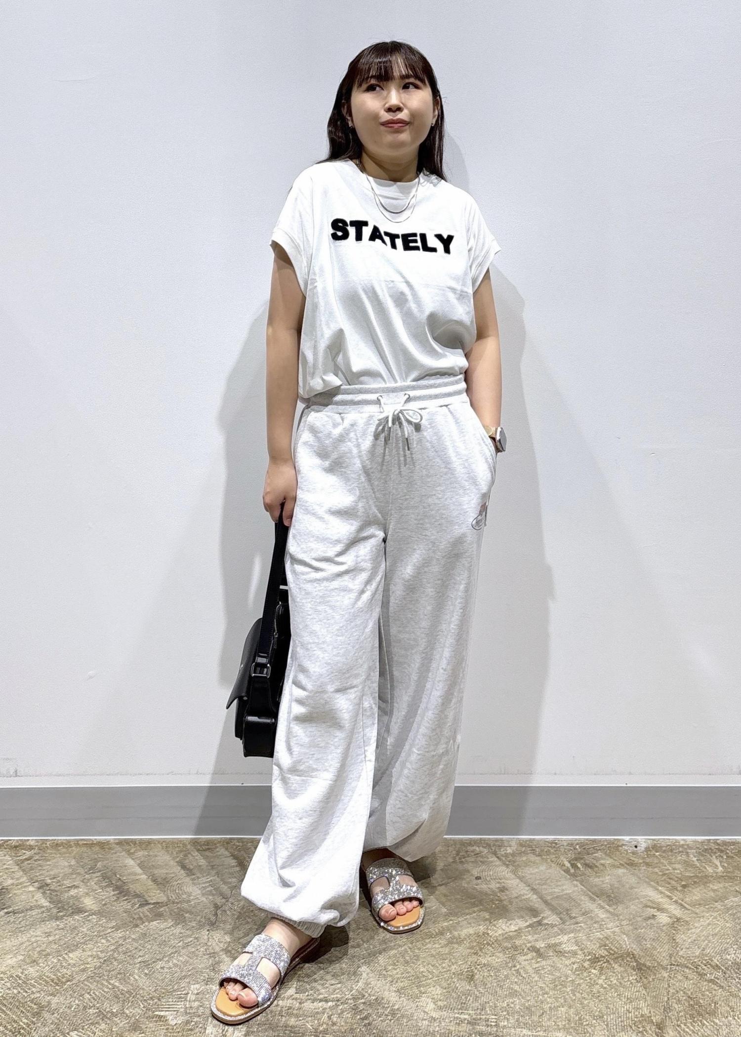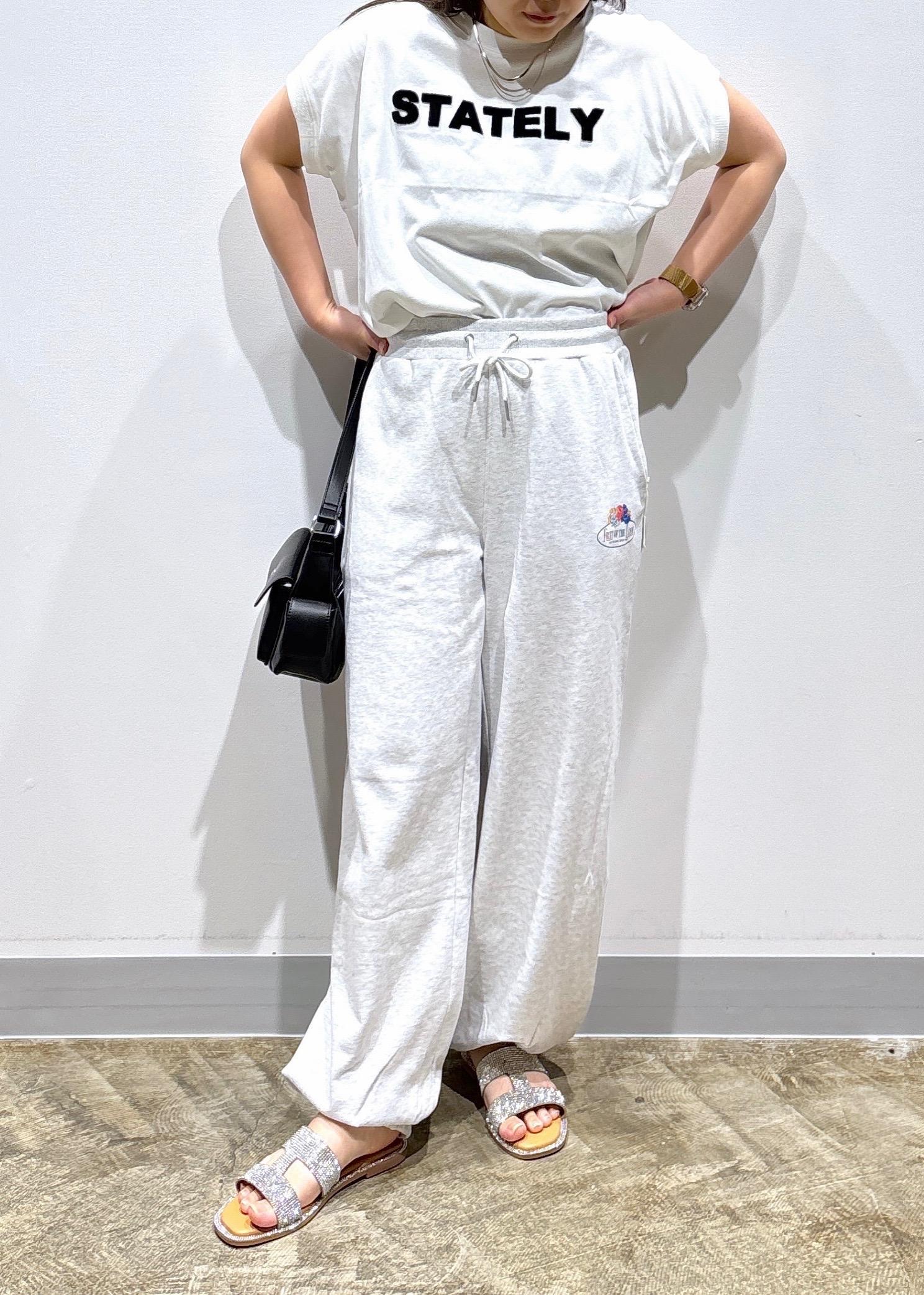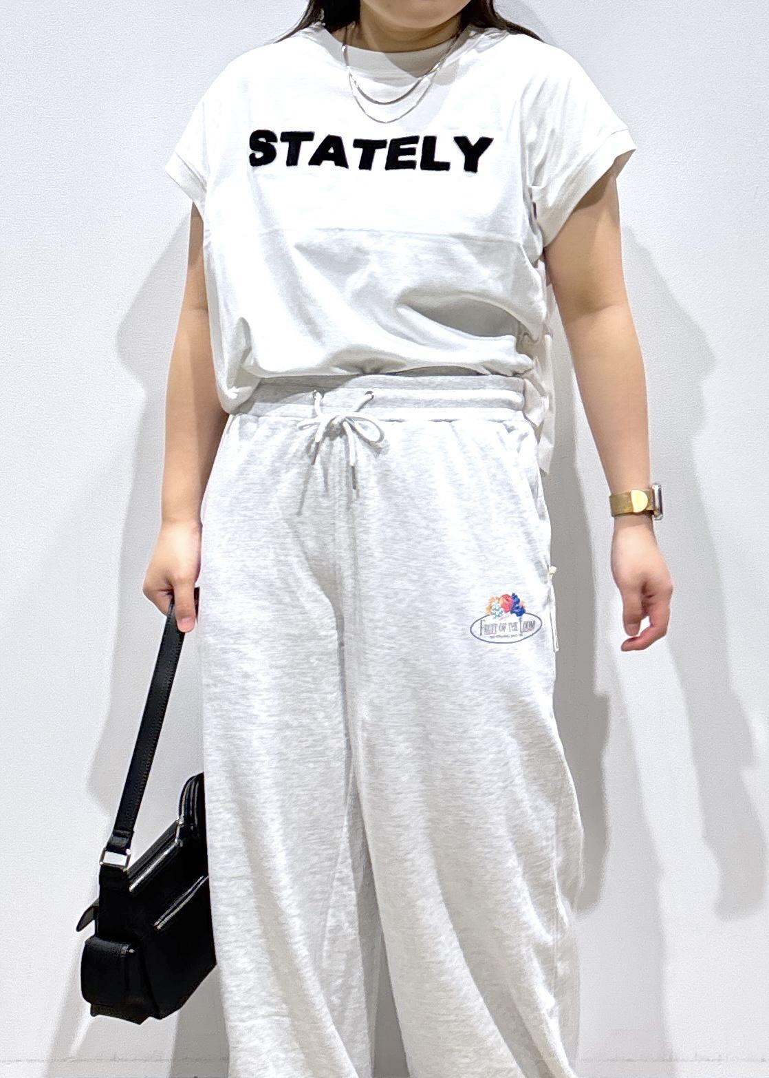 くだけすぎない高みえできるフルーツオブザルームのスウェットパンツと併せてみました