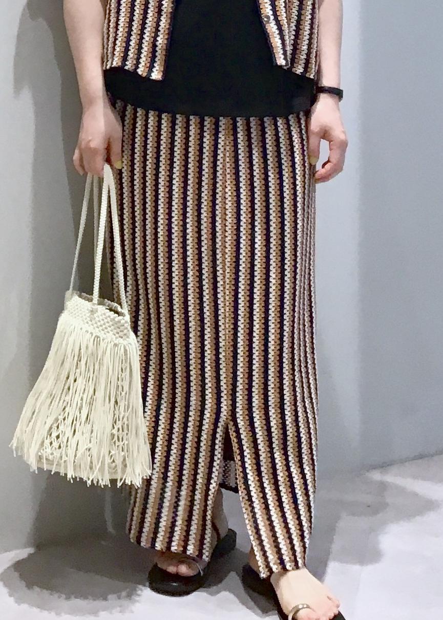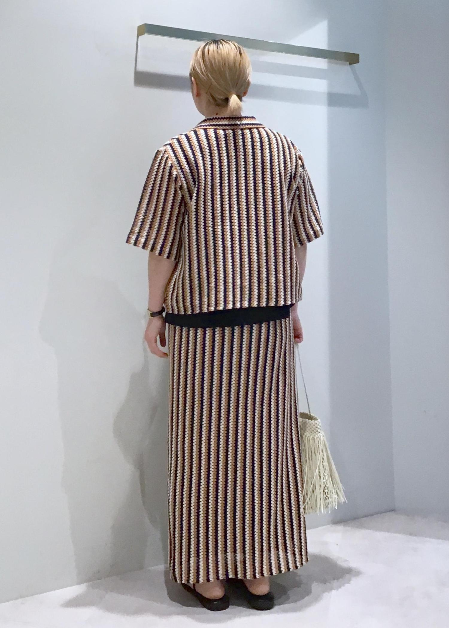 LE CERCLE par ropé【セットアップ対応】マルチボーダー Iラインスカートオレンジ系 / F¥6,050レビュー155cmで足首が隠れる丈。フラットシューズでも合わせられます。
