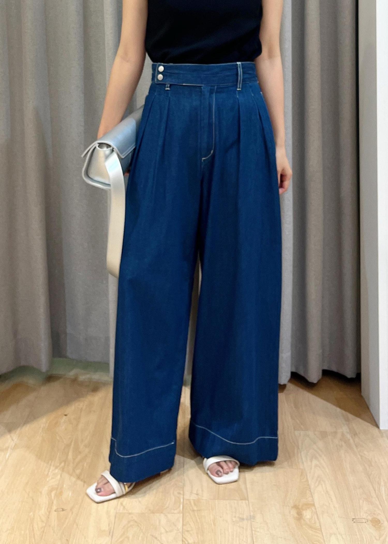 アウトレットVISタックデザインリラックスデニムパンツブルー / M¥3,460レビュー柔らかな素材で夏でも涼しく着用できます。Mサイズ着用で少しゆとりのあるサイズ感でした。