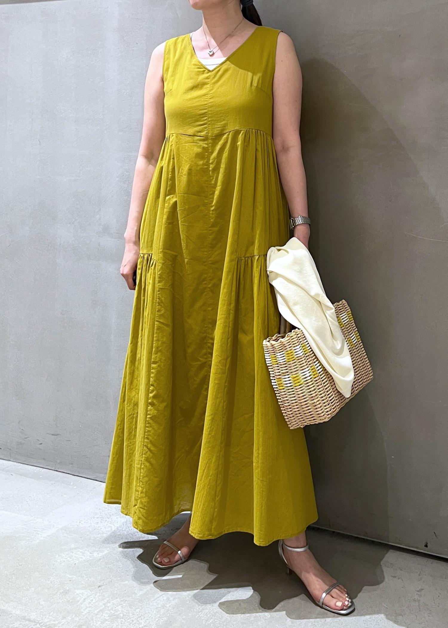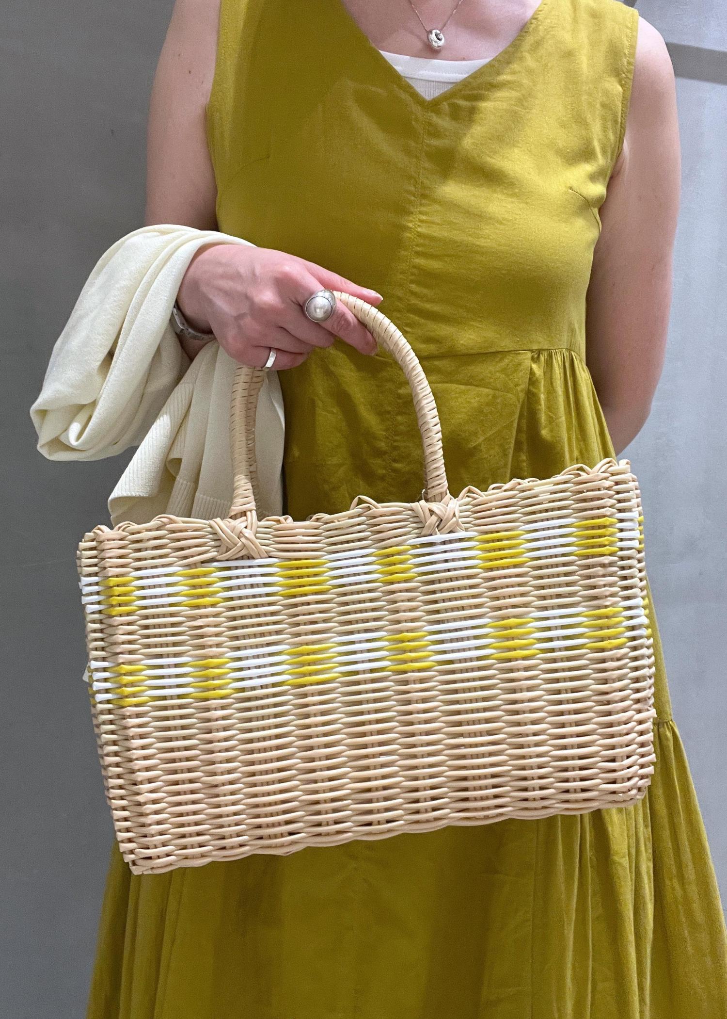 今回は同系色のカゴバッグと合わせて、真夏のお出かけをイメージしてコーディネートしました。