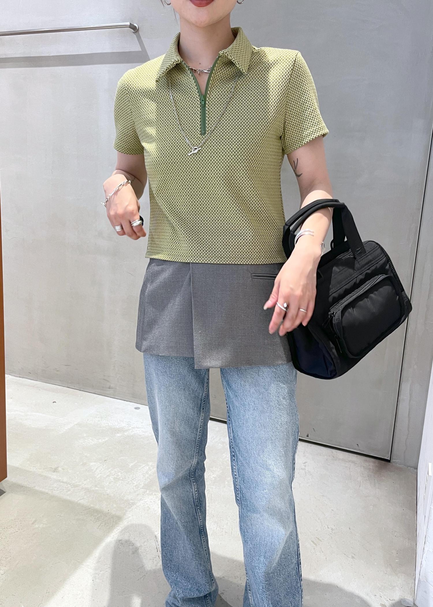 アウトレットM TO RSTANDZIP GEOMETRY S/S POLOキミドリ / 38¥3,960レビューコンパクトなサイズ感で着用しても、ストレッチの効いた柔らかな素材なので窮屈感はなくリラックスしてお召しいただけます!サイズを上げてやや大きめに着ても可愛いです。