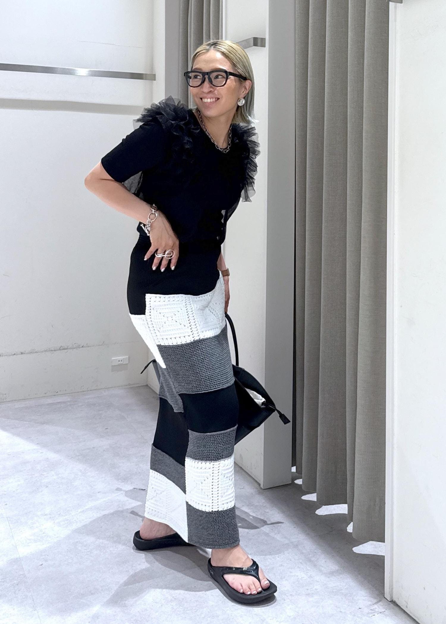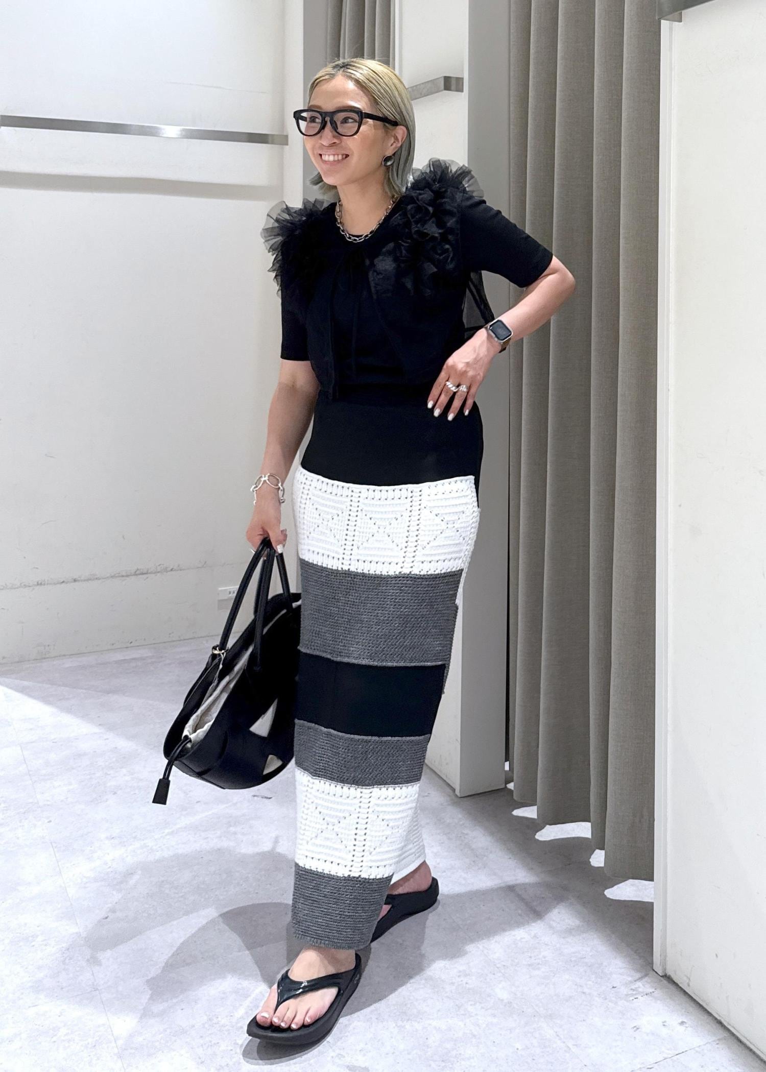 別の組み合わせでも使える汎用性の高さと、フェミニンさをプラスしてくれるデザイン性がとても可愛い逸品! -