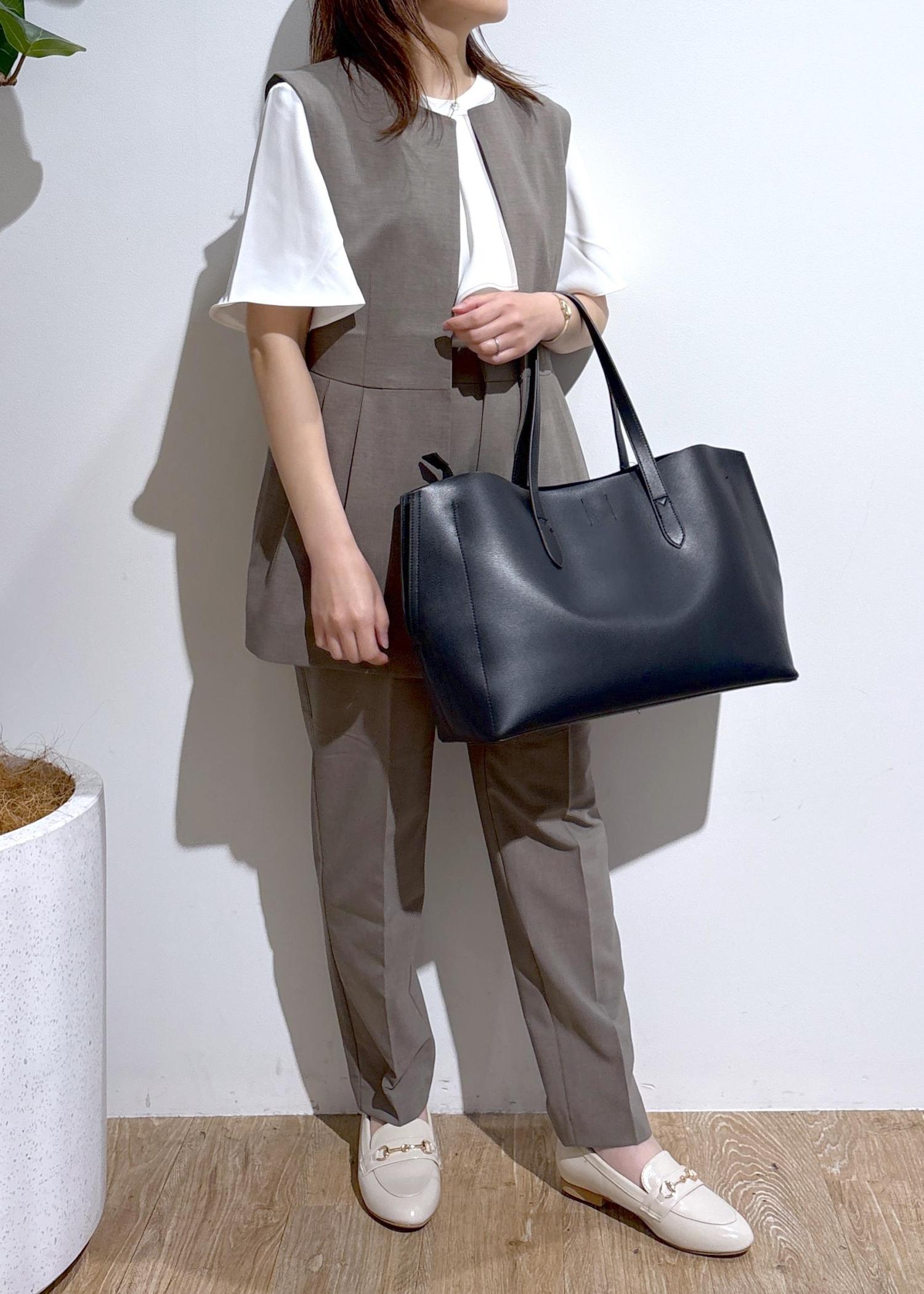 ほどよい柔らかさ且つ、ハリ感もあるので自立するきれいめバッグです。