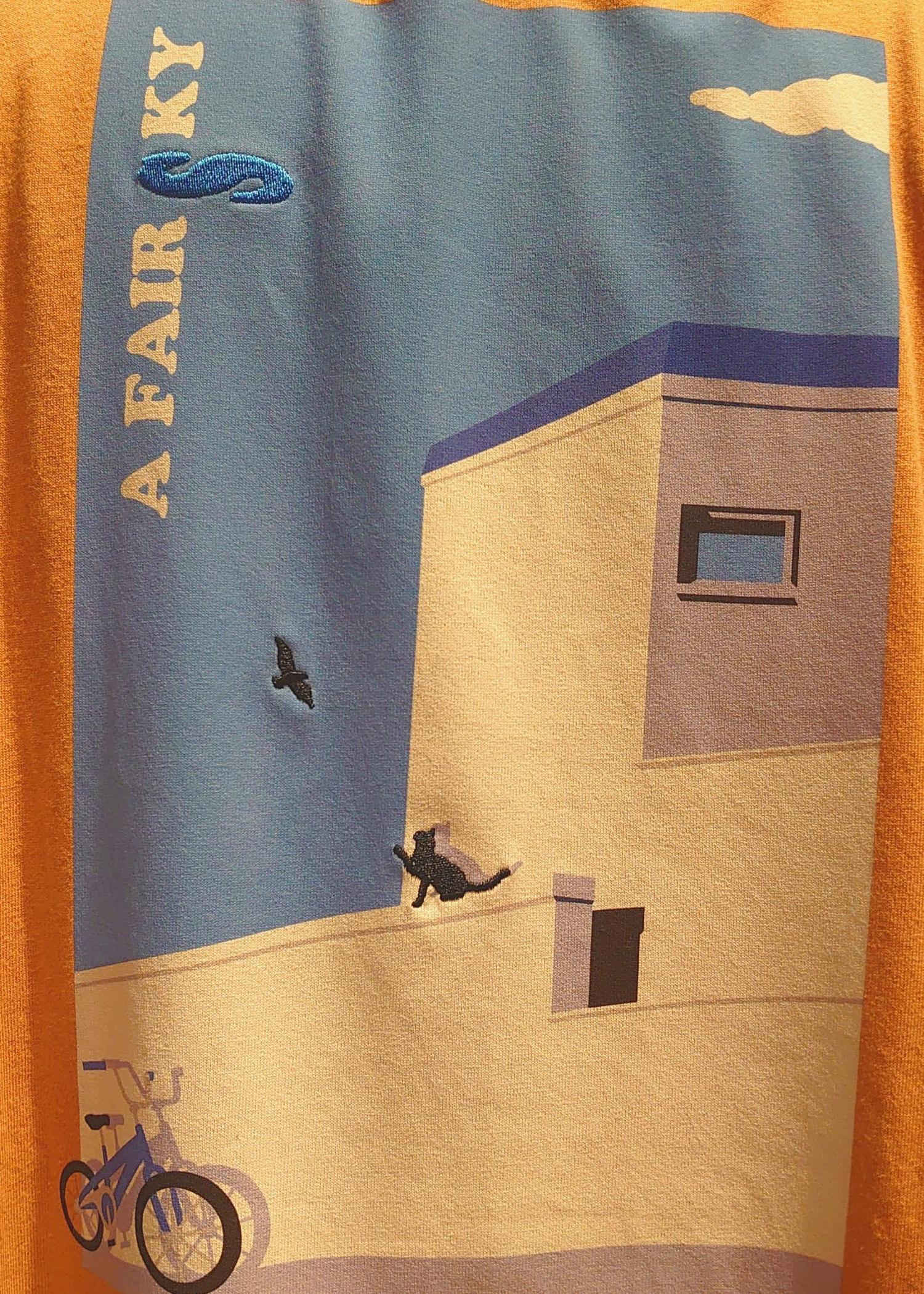 前はワンポイント、後ろはプリントと刺繍があり立体的に見えます!猫がとても可愛い。 -