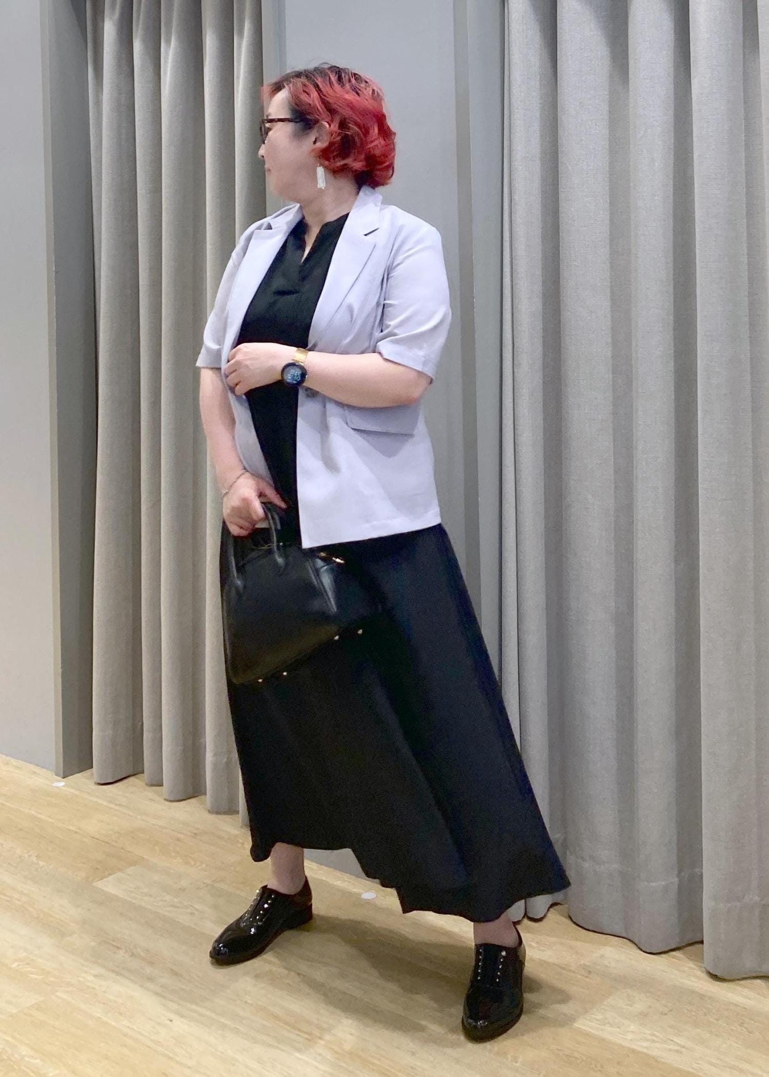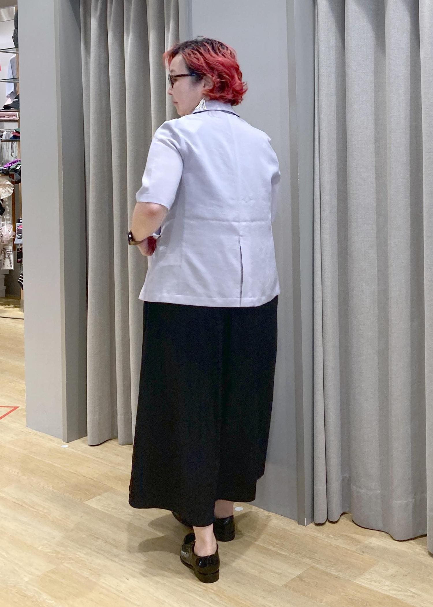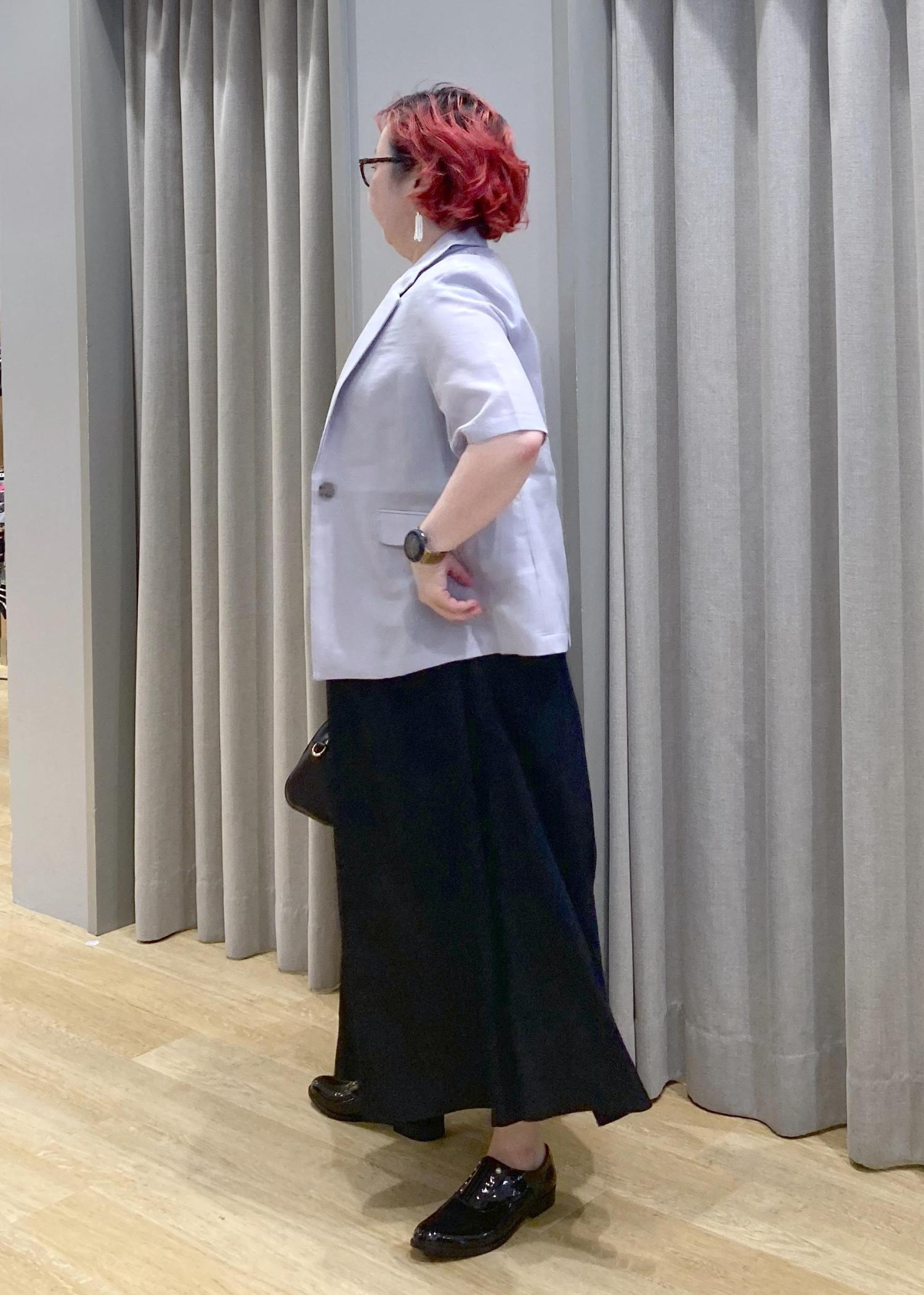 お腹・腰まわりも自然にカバーしながら、きちんと感はしっかりキープ。