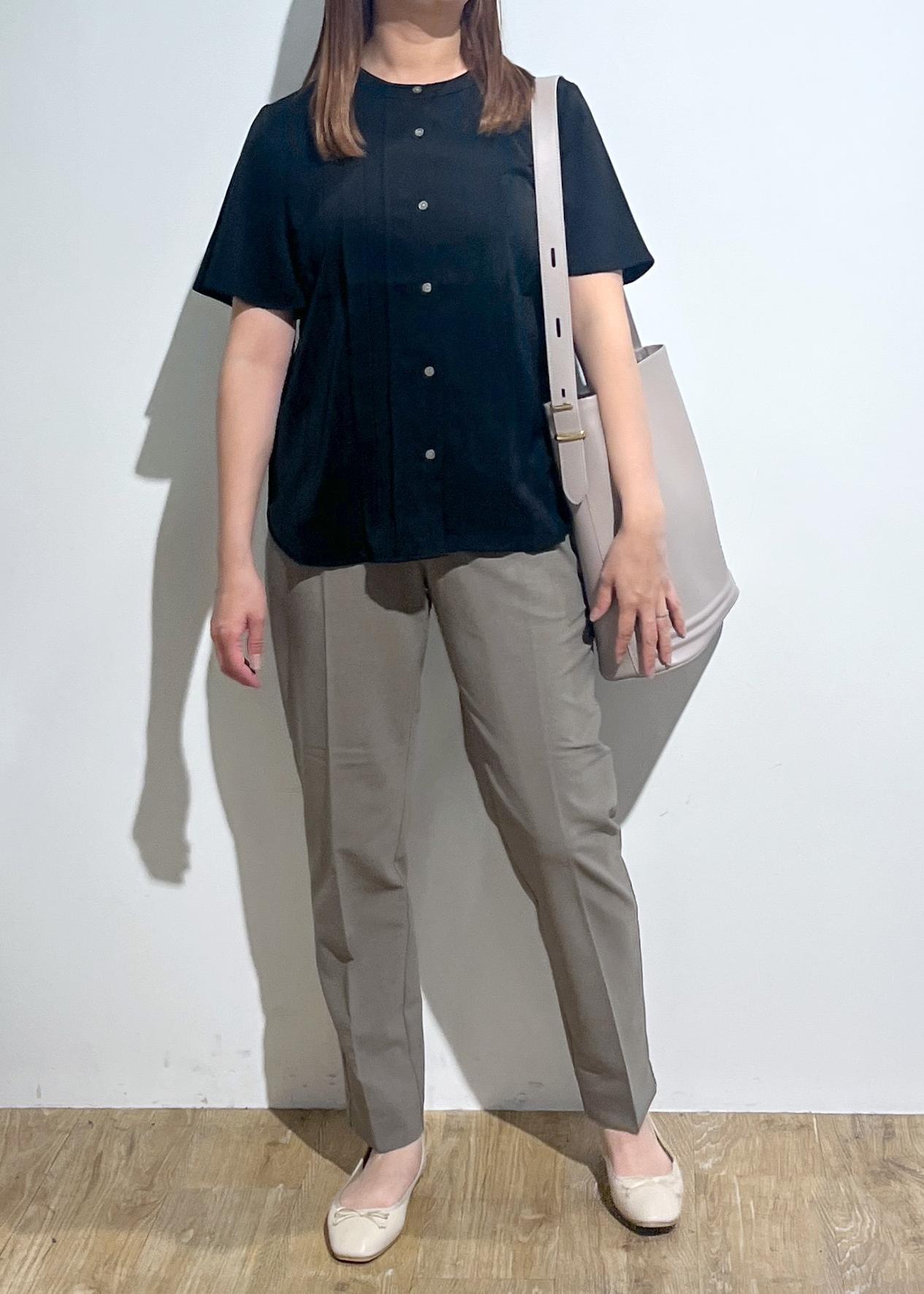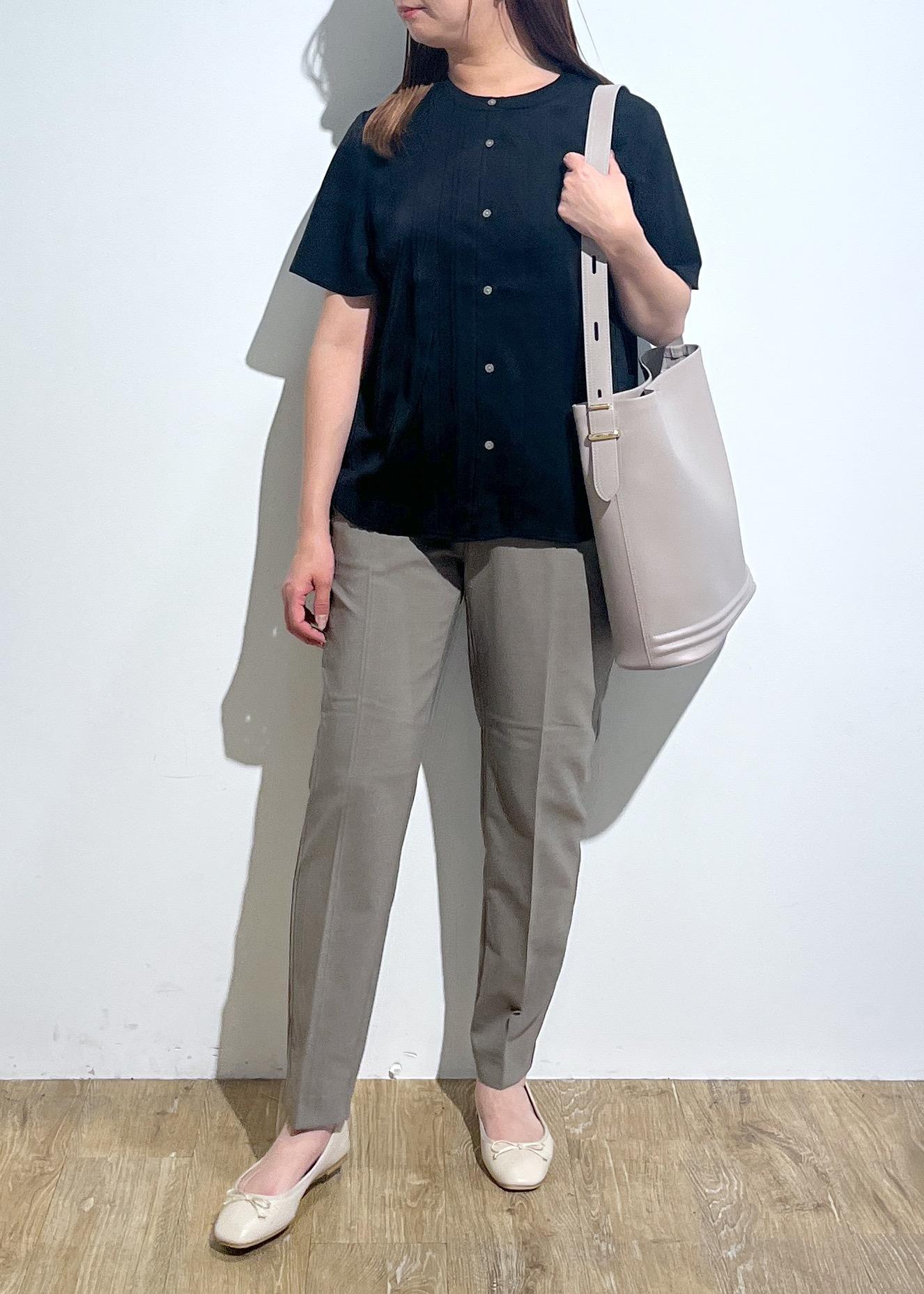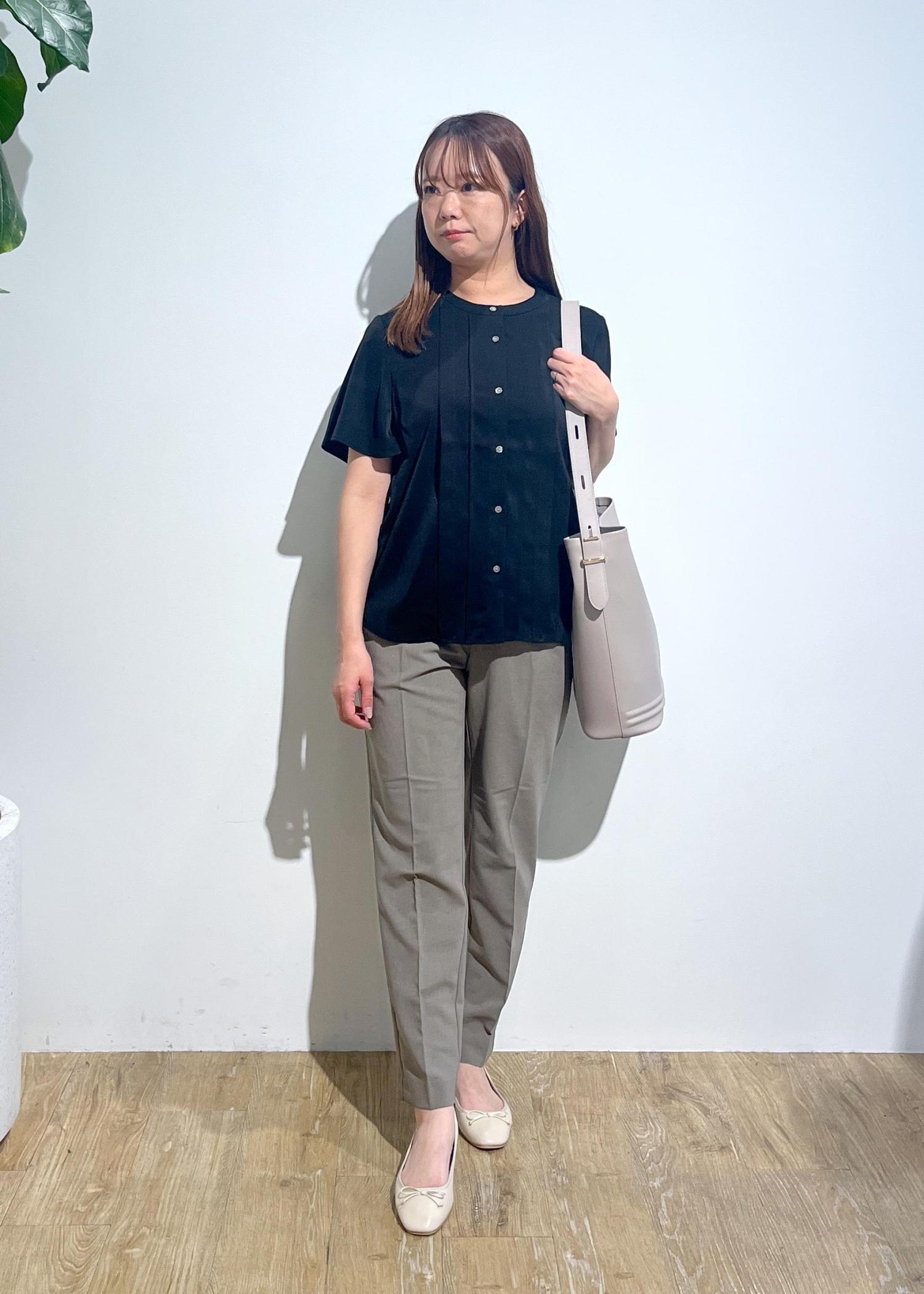 少しゆとりがほしくて38を着用しました。お仕事や普段着にもおすすめのトップスです。袖もふんわりしたデザインで二の腕をカバーしてくれます。