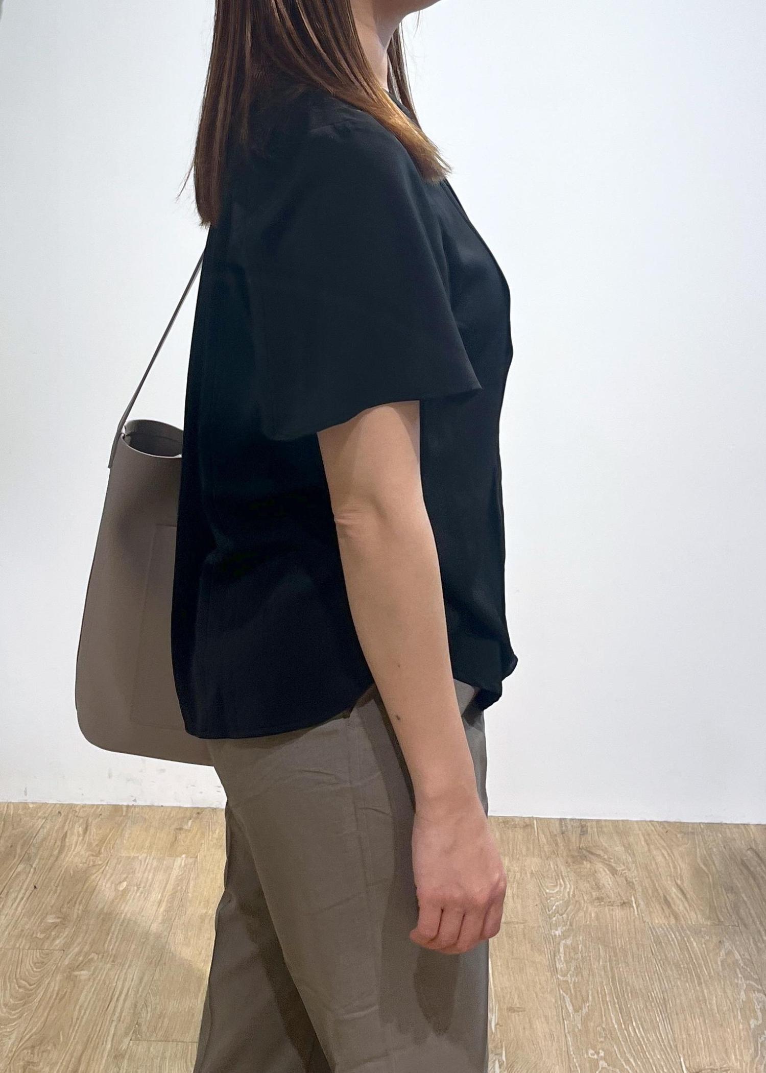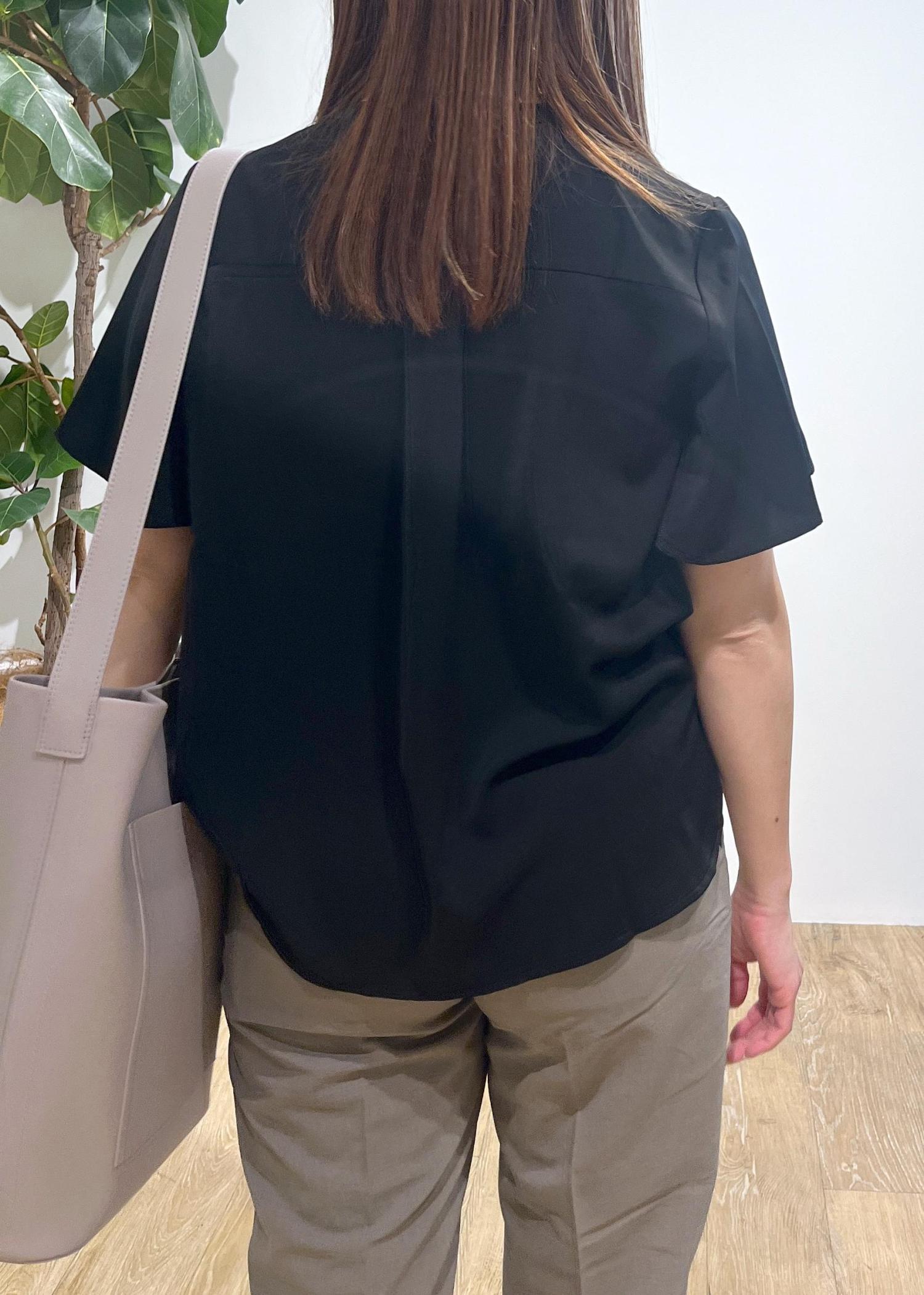 多機能ランダムタックハーフスリーブブラウス / 通勤にも