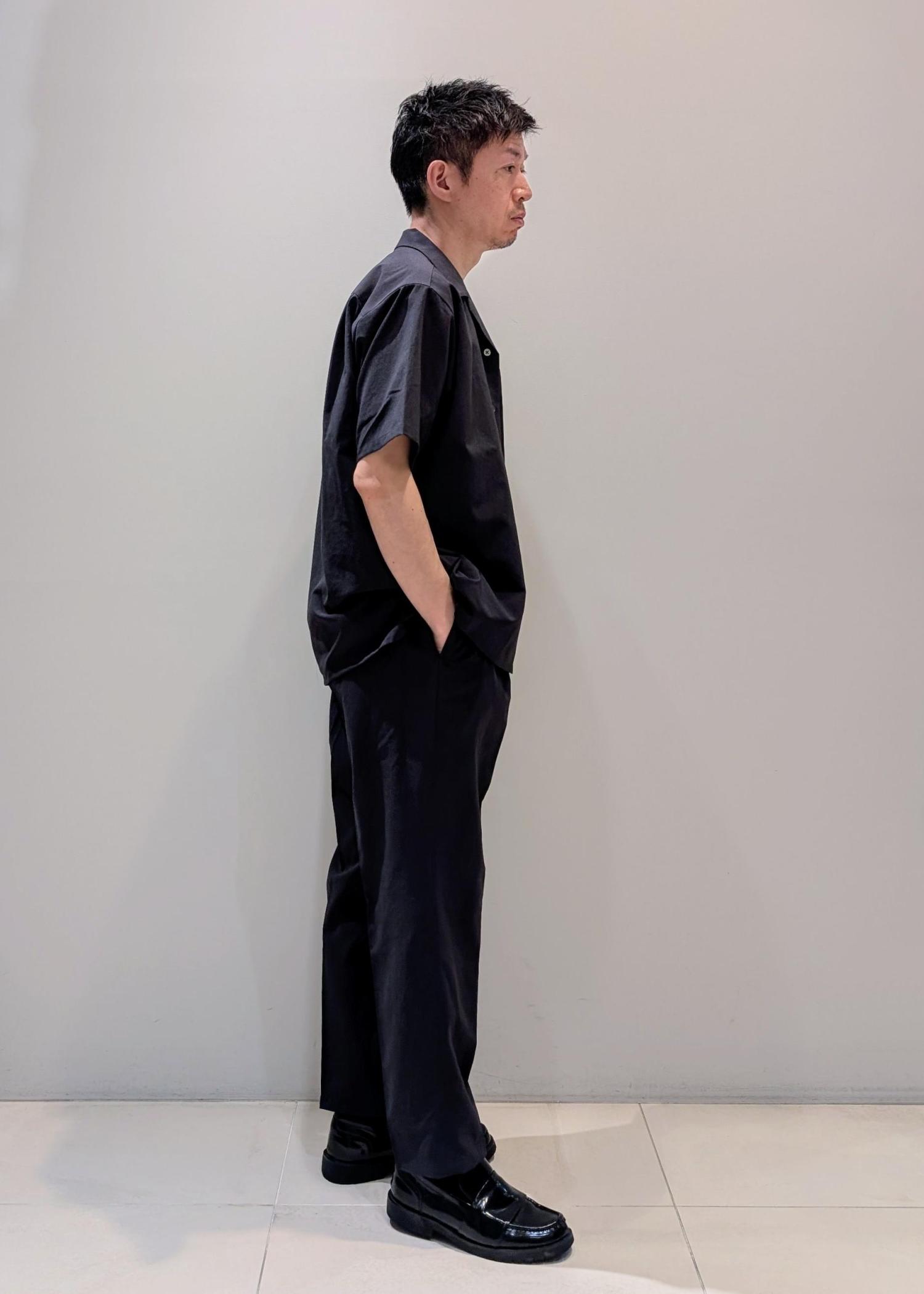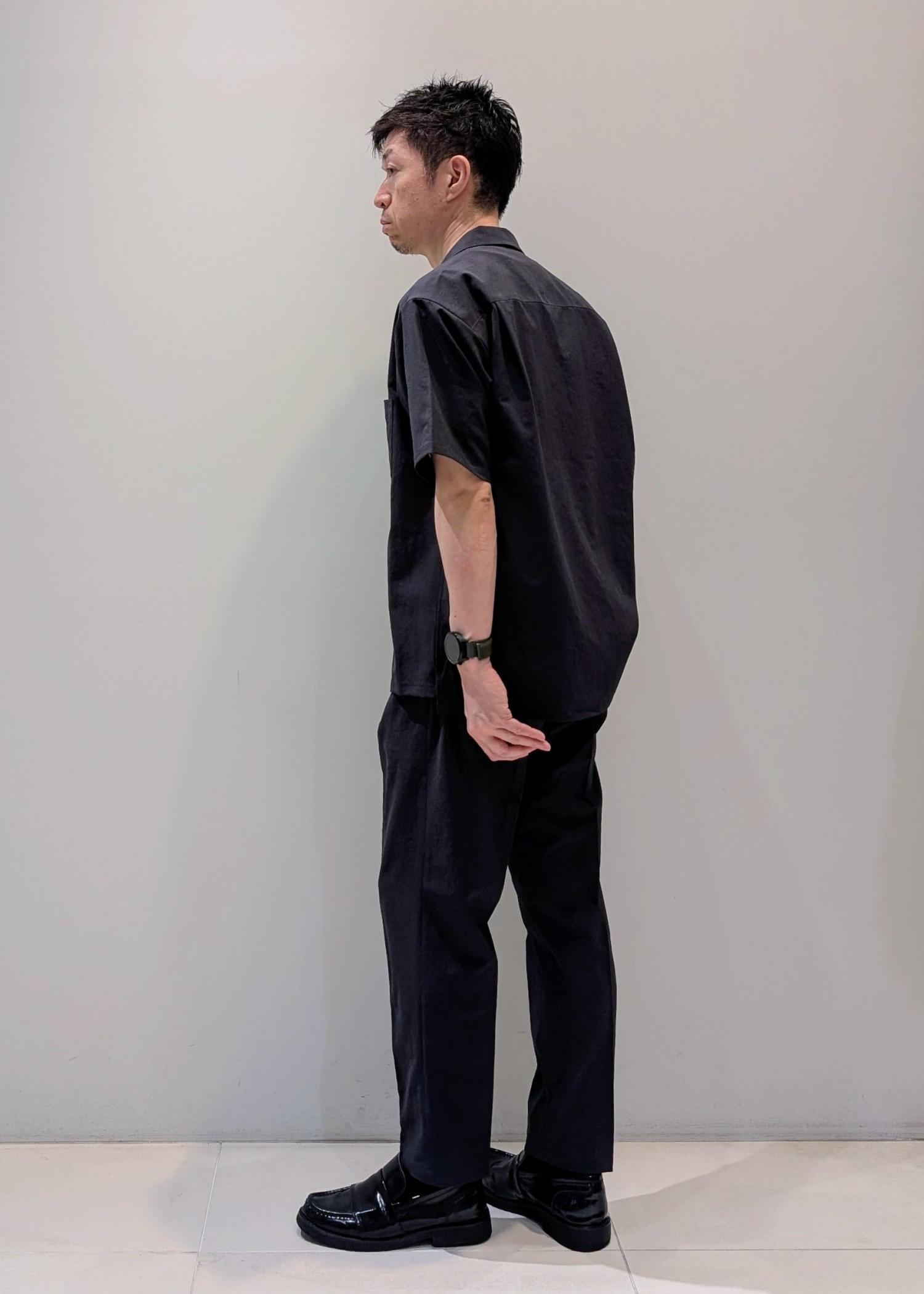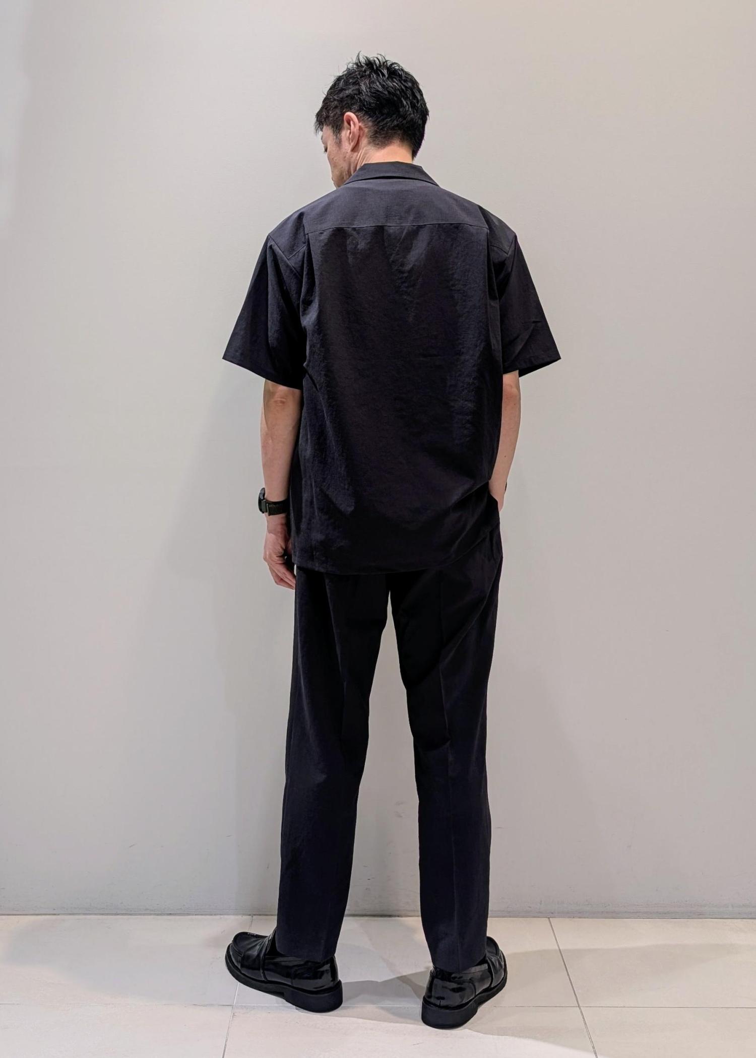 ADAM ET ROPÉ HOMME【RIRANCHA】サマーセットアップ / オープンカラーシャツ & スラックス / イージーケア / 接触冷感 / 吸水速乾ブラック系 / L¥17,930レビューLサイズ着用。トップスは肩が落ちないデザインでパンツ丈は短め。ウエスト調整できる為、ゆったり着たいならワンサイズアップをおすすめします。