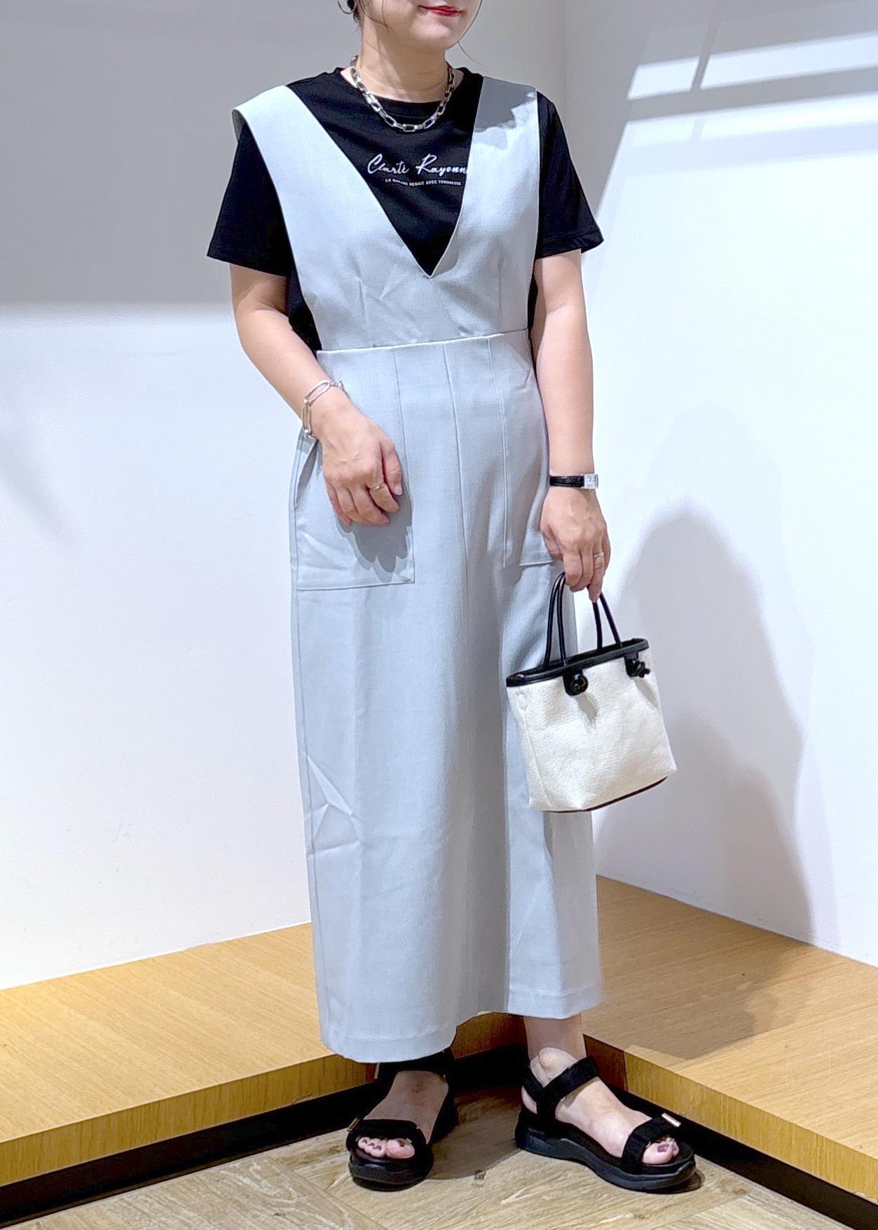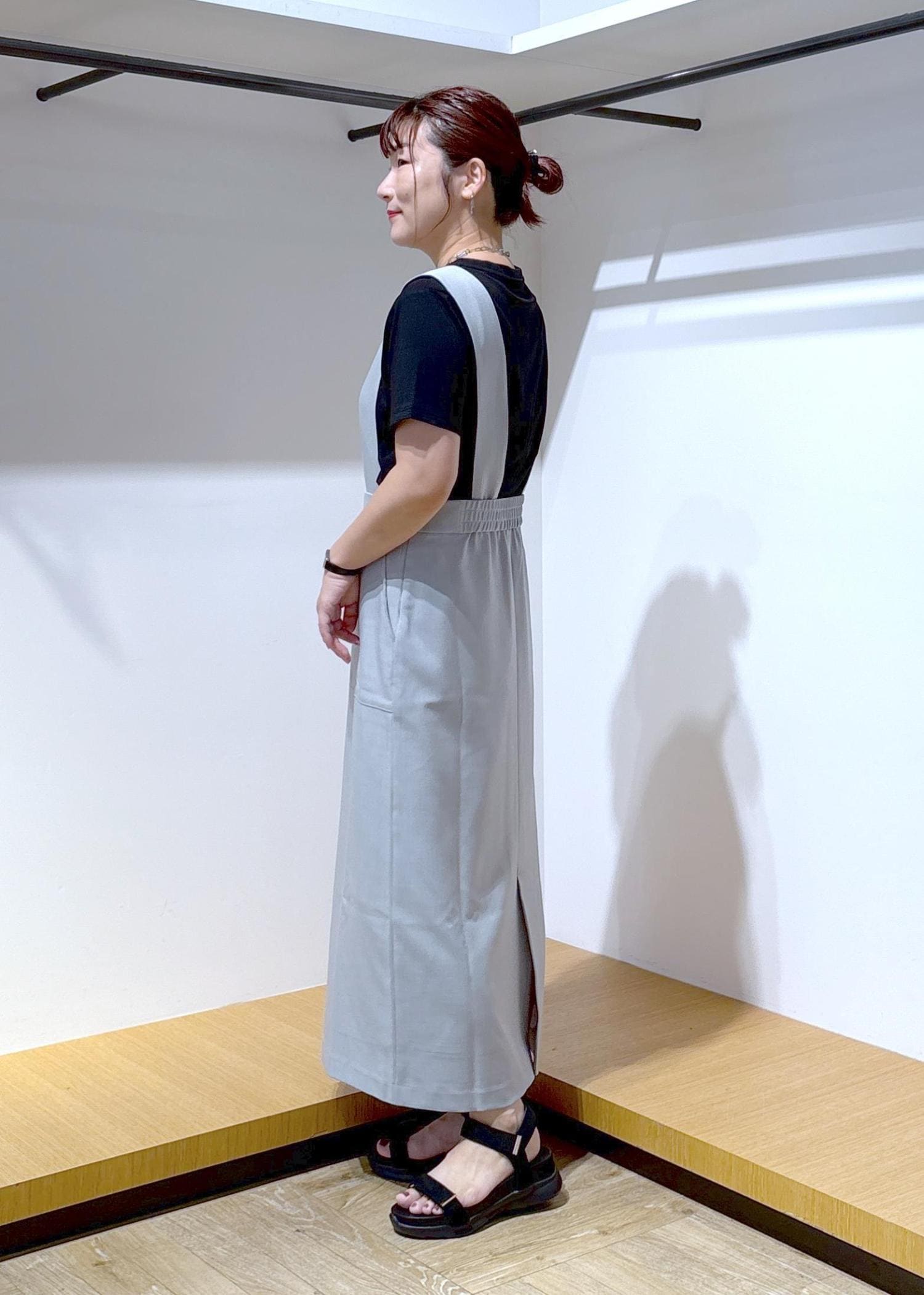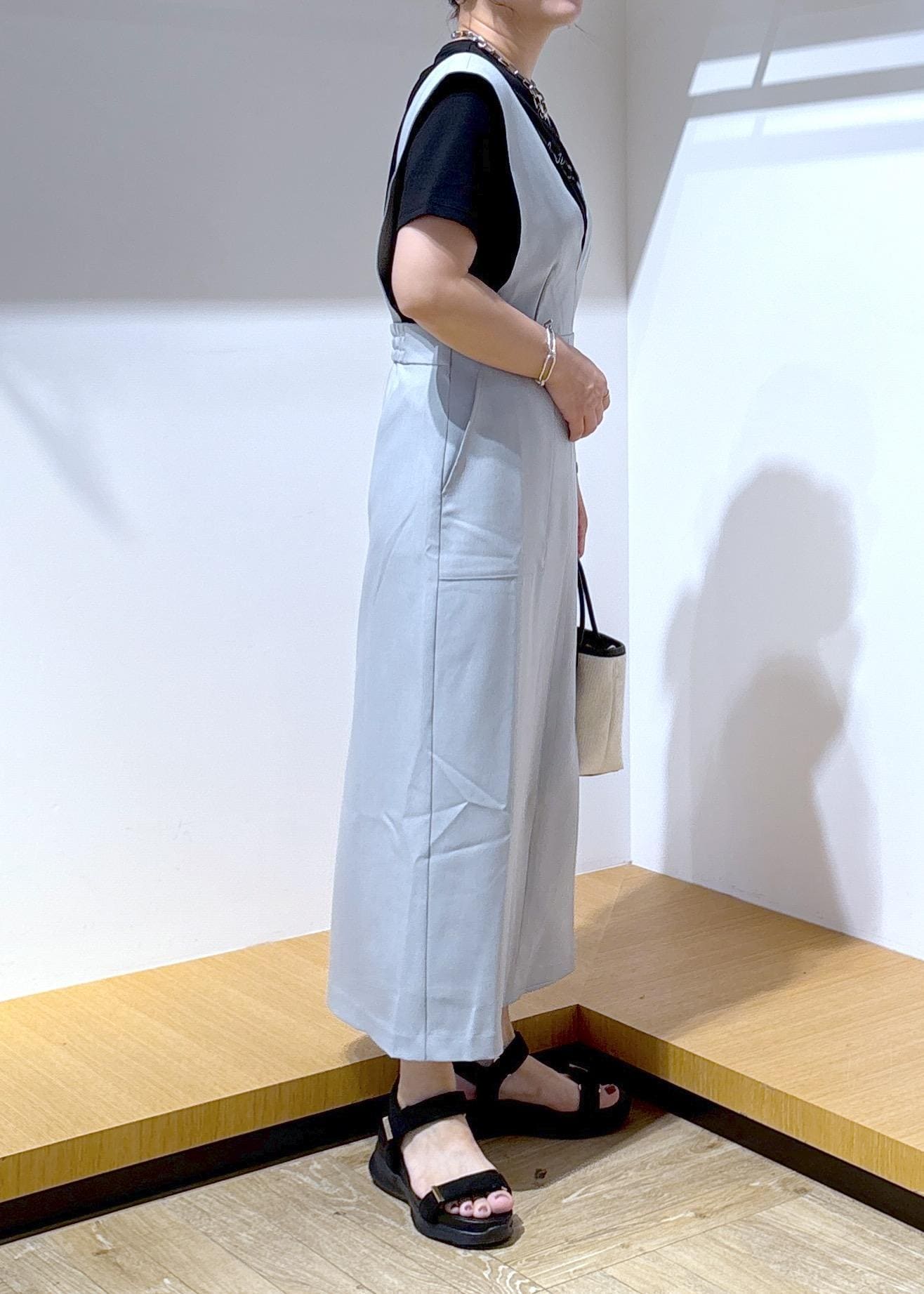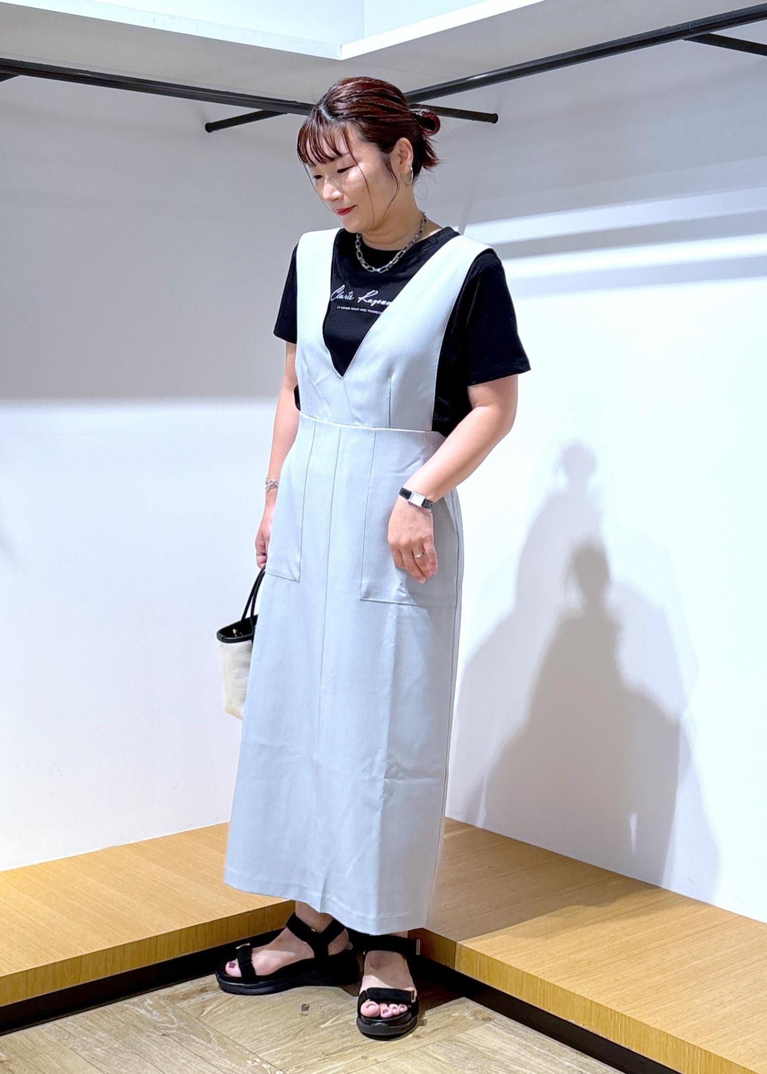 インナーをTシャツにしても、ジャンパースカートの丈が長めなので大人っぽく仕上がるところが気に入っています♪
