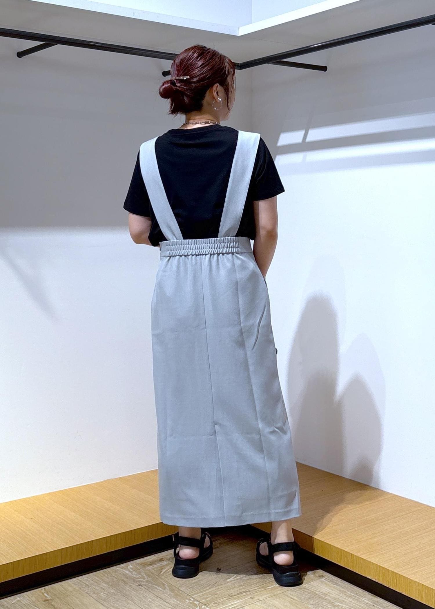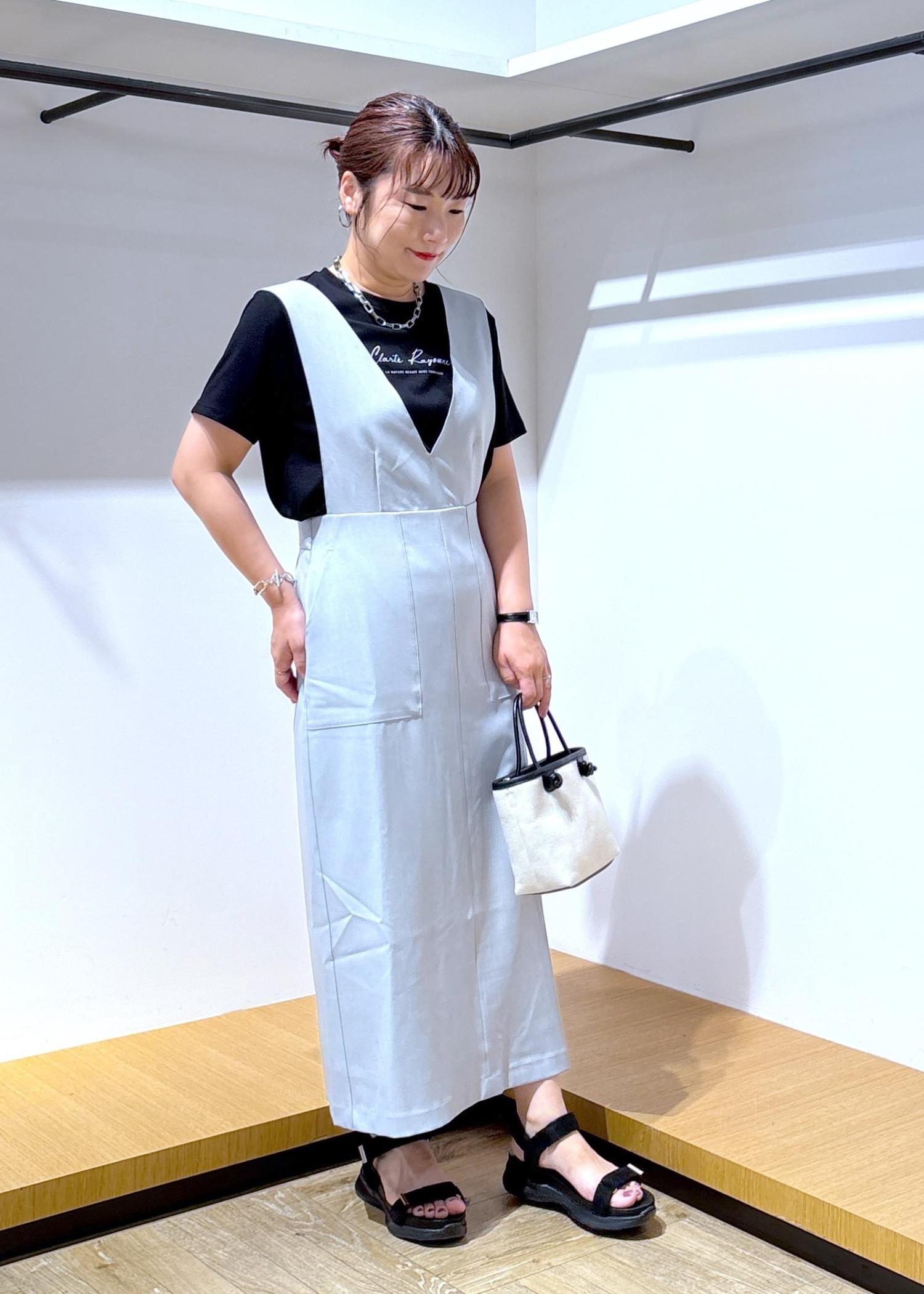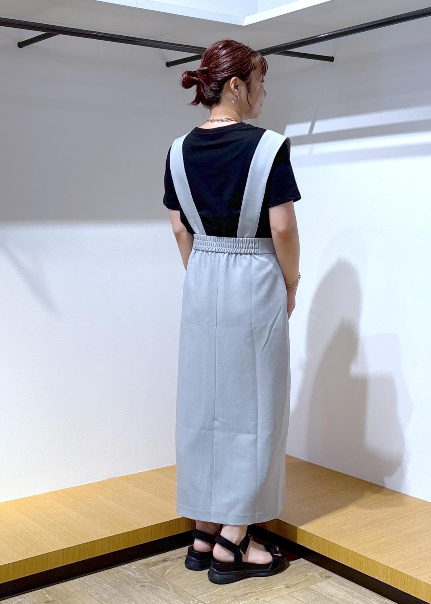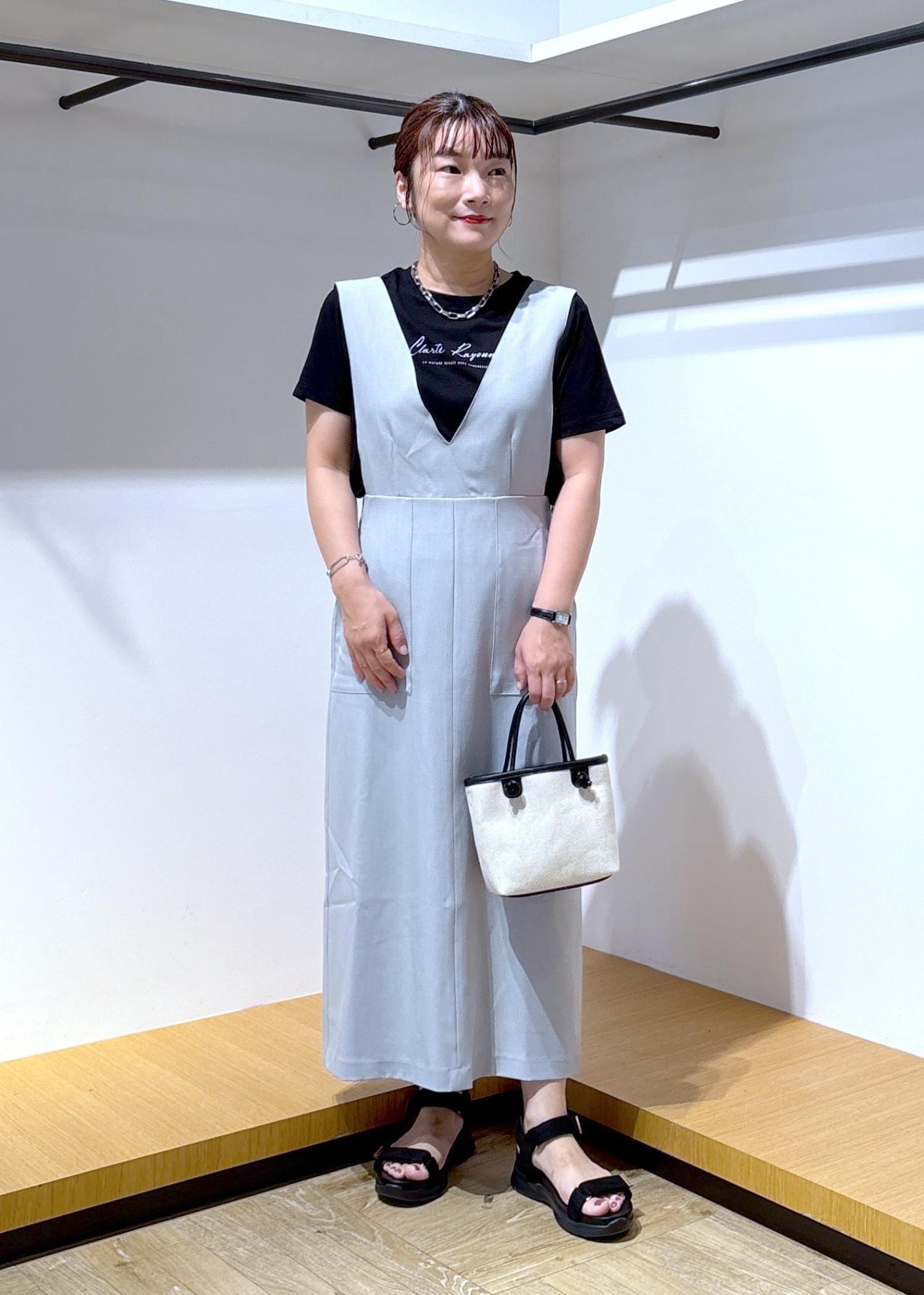 インナーをTシャツにしても、ジャンパースカートの丈が長めなので大人っぽく仕上がるところが気に入っています♪