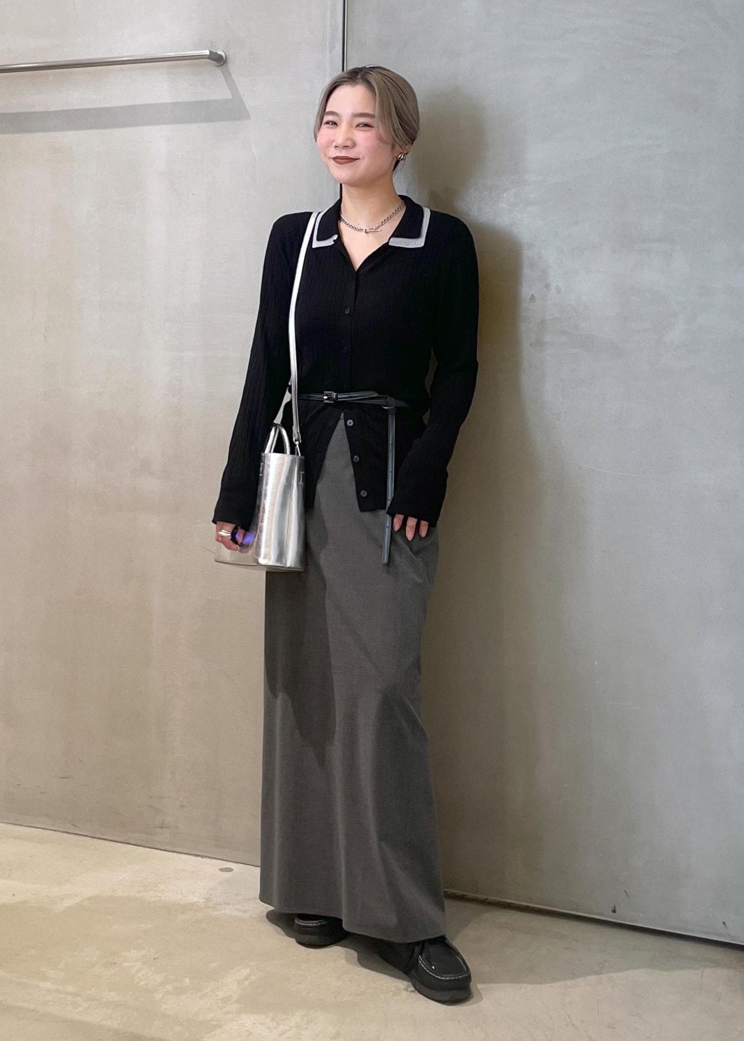 襟元がレースアップなので、ネックレス無しでも華やかな雰囲気になりますよ。