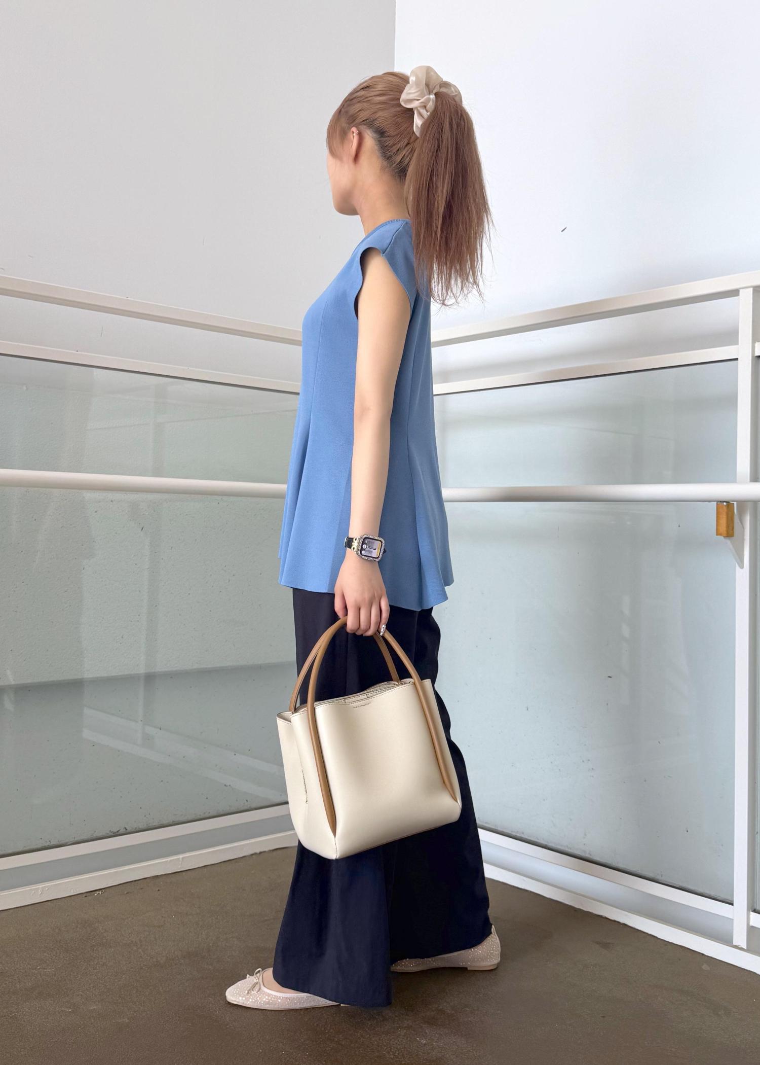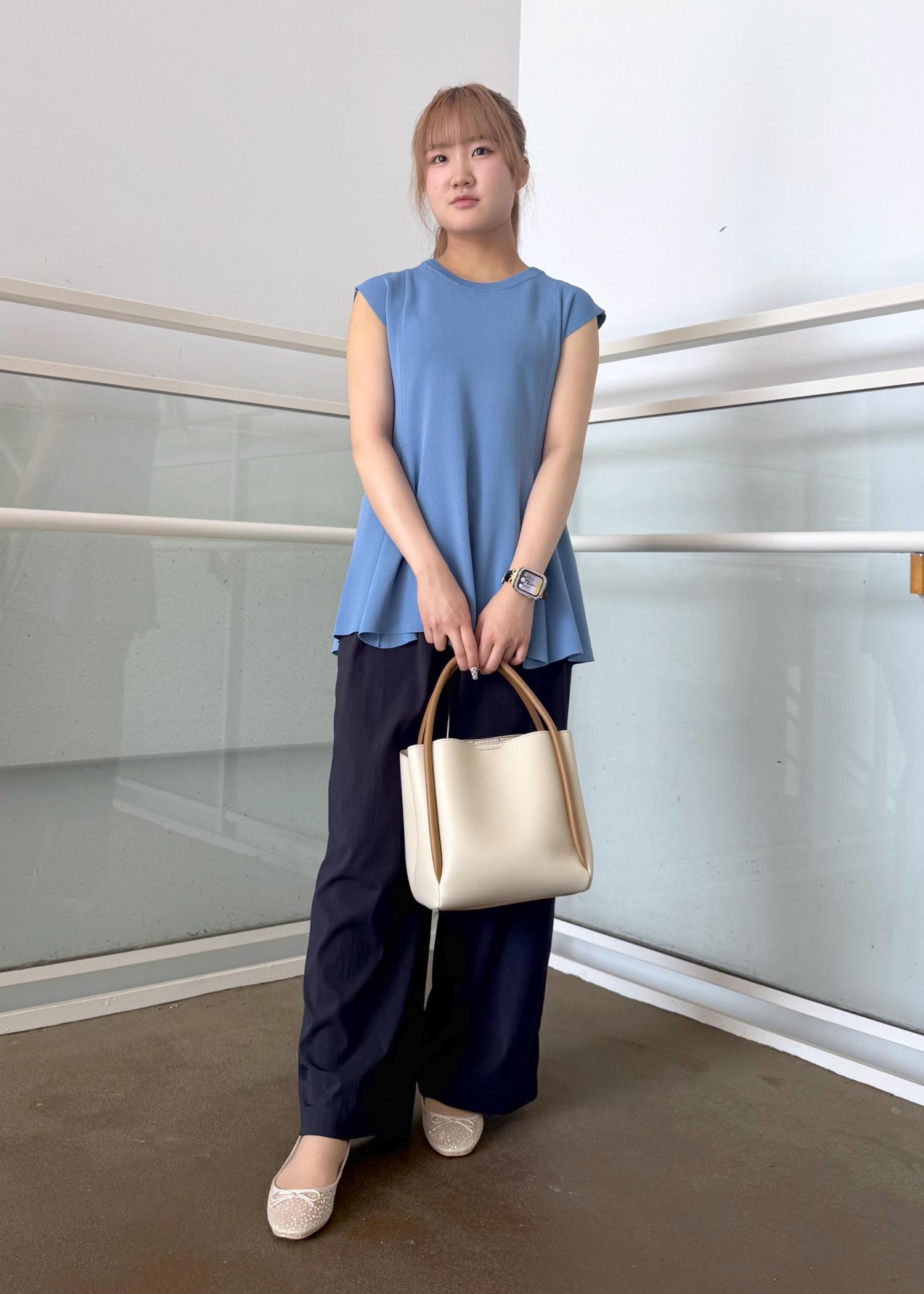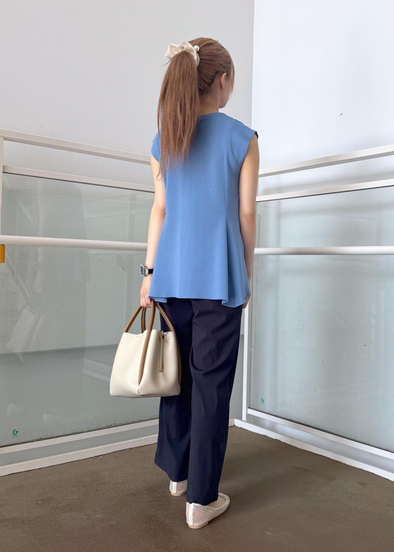 ペプラムデザインなので、体のラインを拾いにくく、シルエットがとても綺麗です!パンツは、サラッと履いていただけるので夏にピッタリのアイテムです!