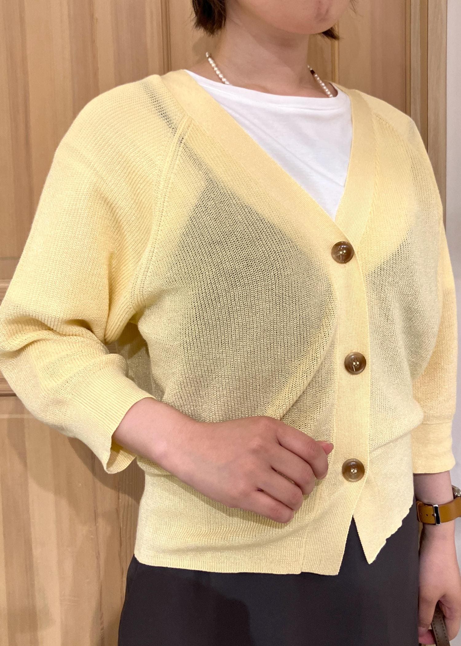 アウトレットROPÉ PICNICLEVITA片畔ニットカーディガンイエロー / 38¥5,995レビューシャリ感があり肌離れのよい素材。