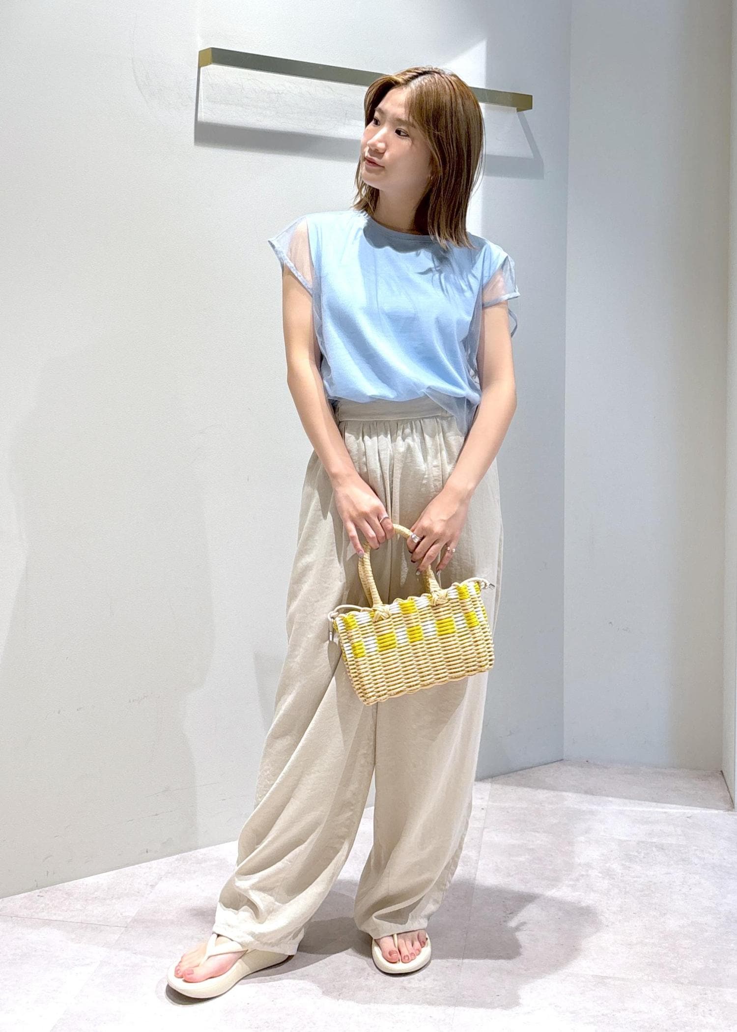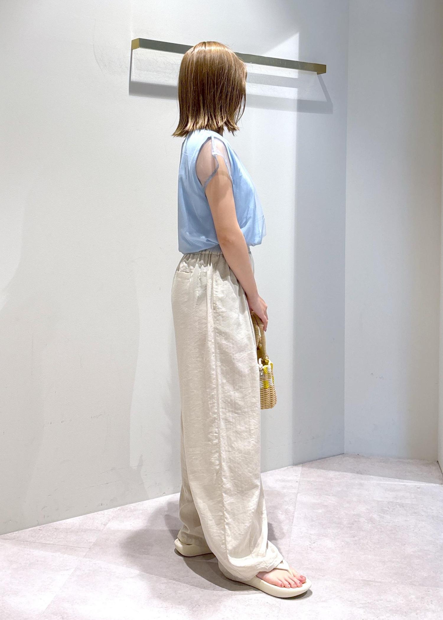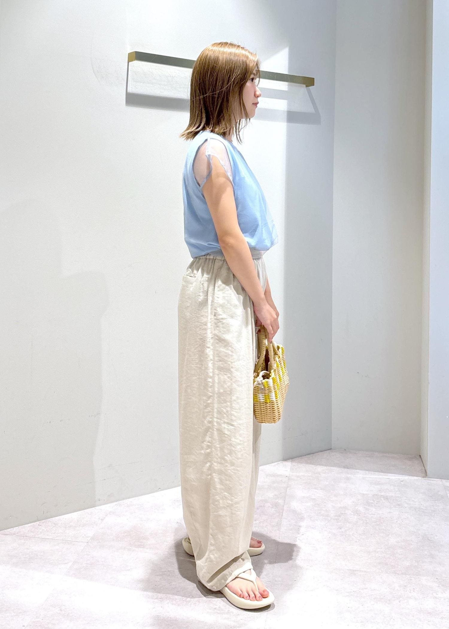 LE CERCLE par ropé麻調リラックスワイドパンツホワイト系 / F¥4,345レビュー157センチでぺたんこ靴でも、お直しいらずで履けます。パンツは太めで肌離れがいいので、涼しく着ていただけます。