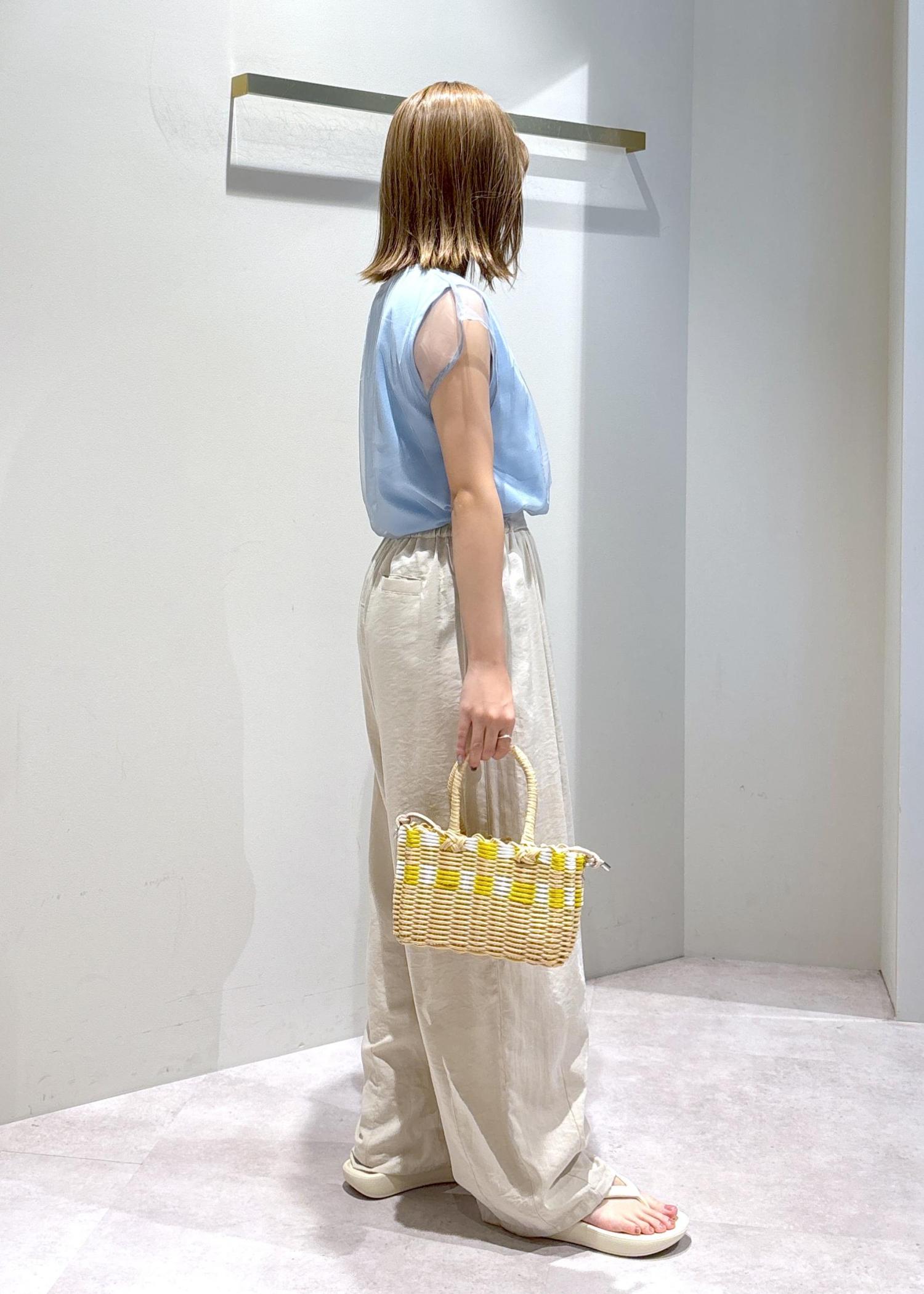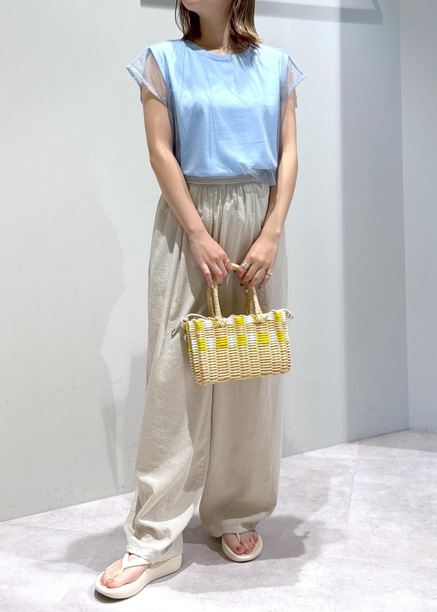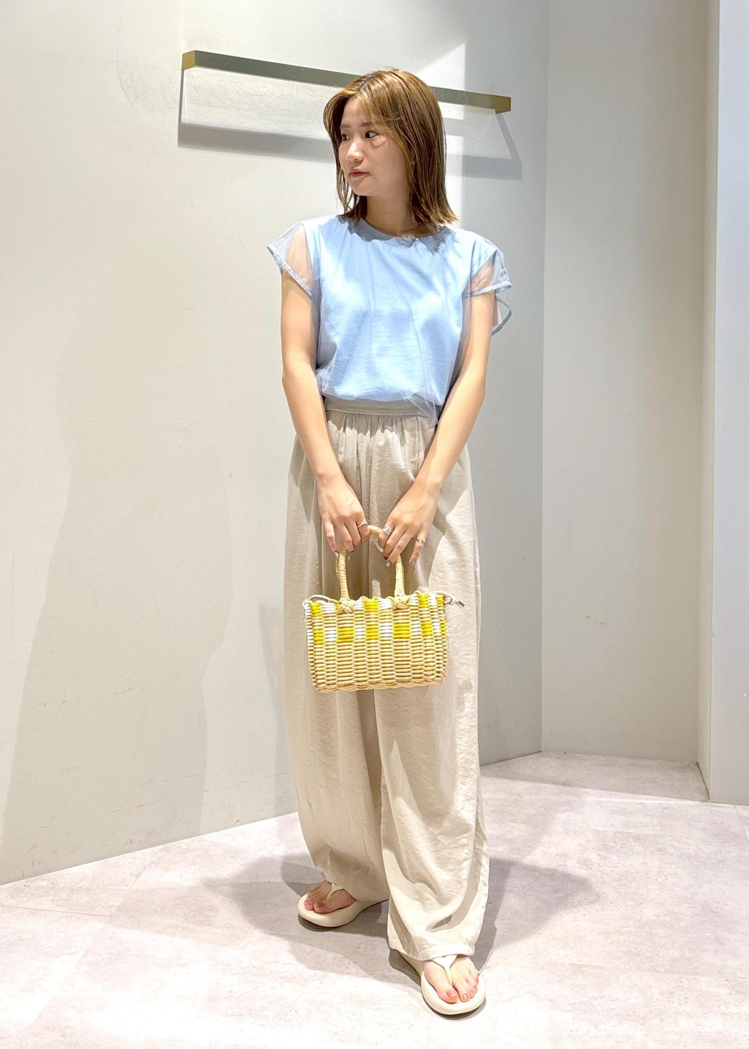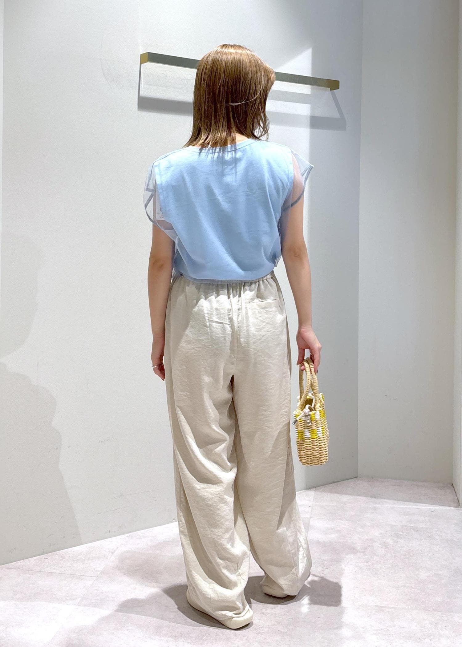 LE CERCLE par ropé麻調リラックスワイドパンツホワイト系 / F¥4,345レビュー157センチでぺたんこ靴でも、お直しいらずで履けます。パンツは太めで肌離れがいいので、涼しく着ていただけます。