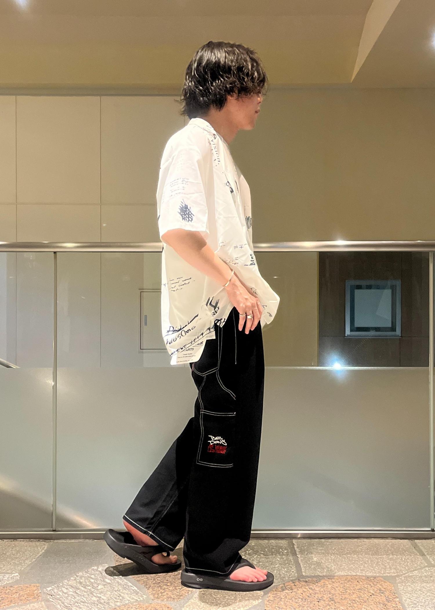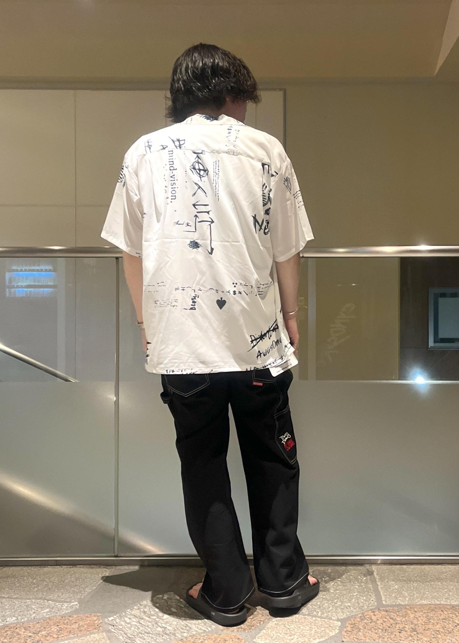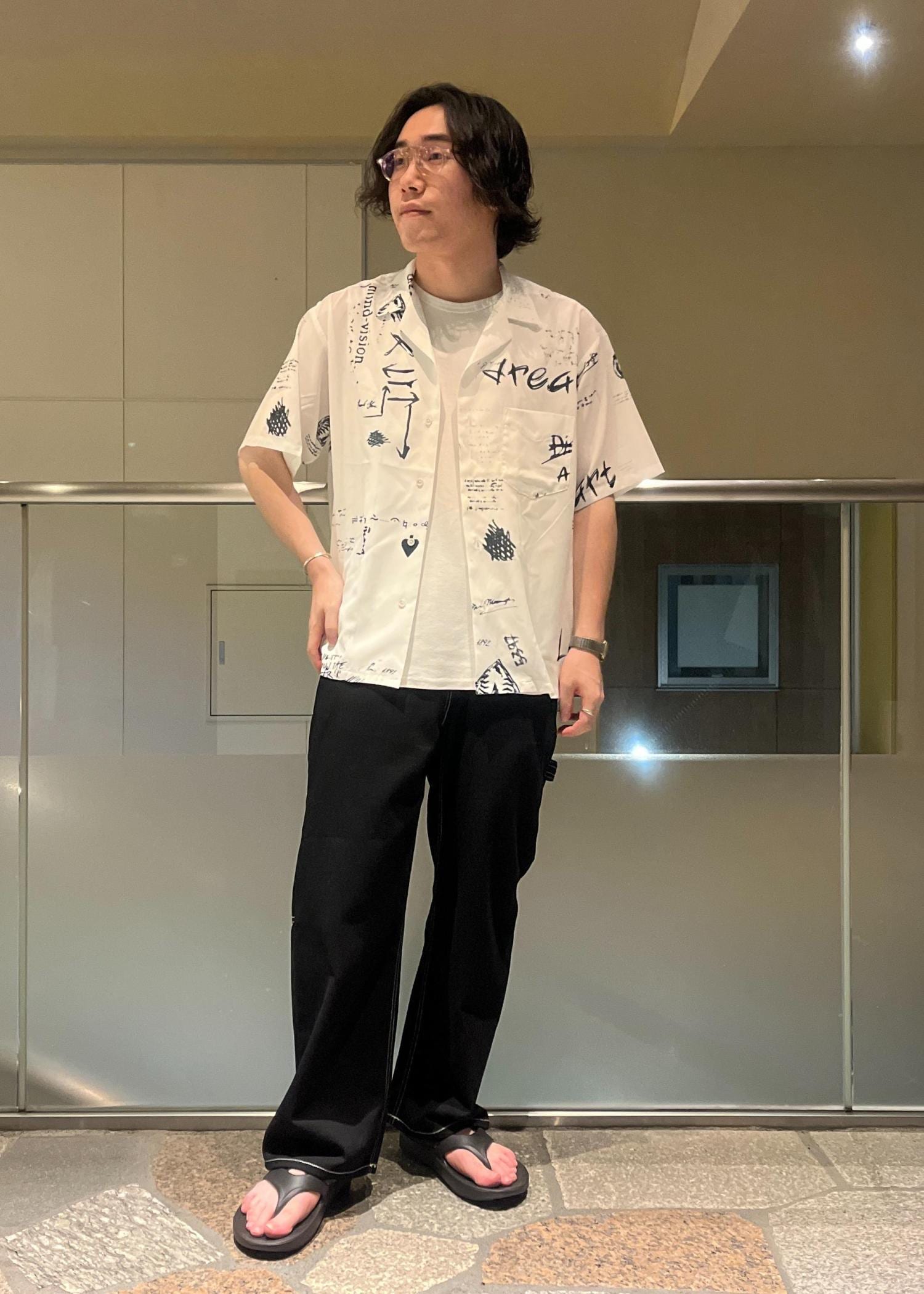 落書き風プリントが目を惹くシャツを主役にしたカジュアルなスタイル。