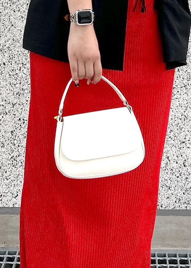 落ち着いた色身なので、スカートやトップスのカラーが明るい色でも合わせやすいです! -