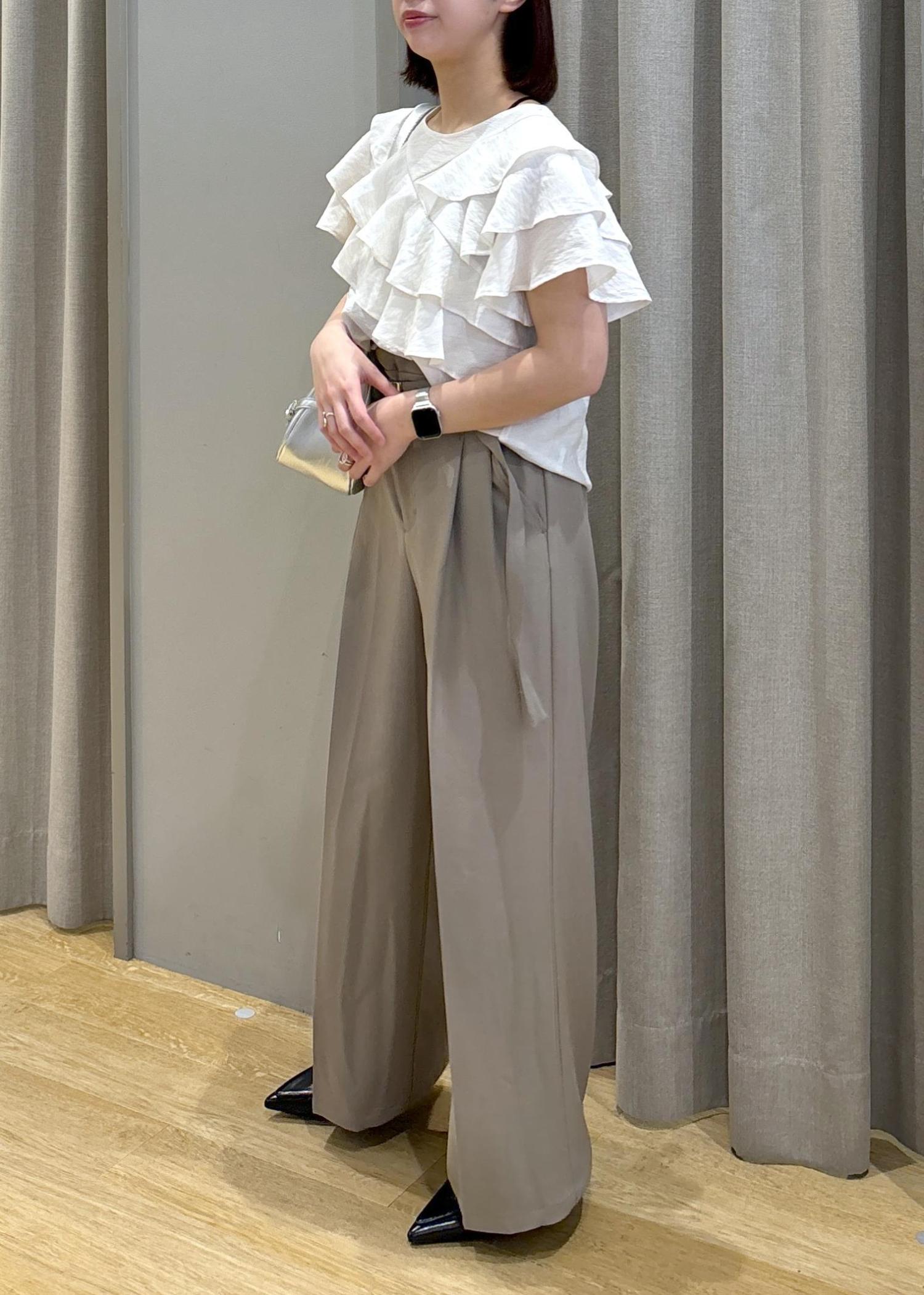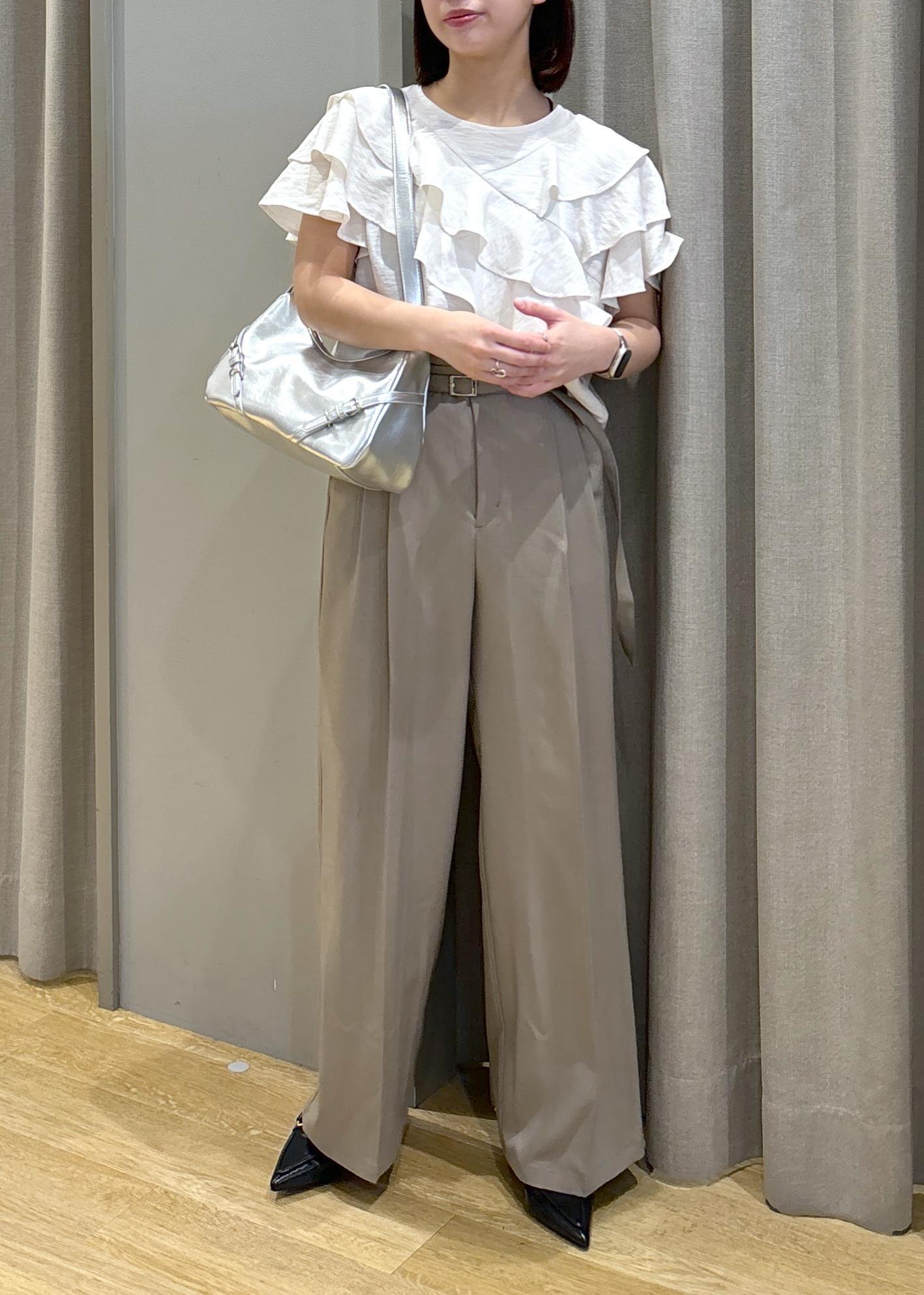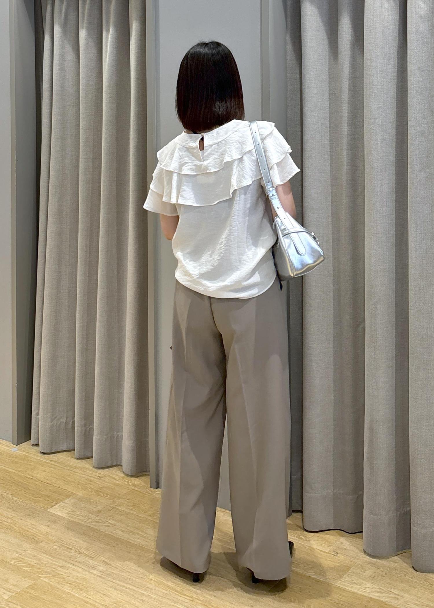 フリルティアードブラウス×タックワイドスラックス