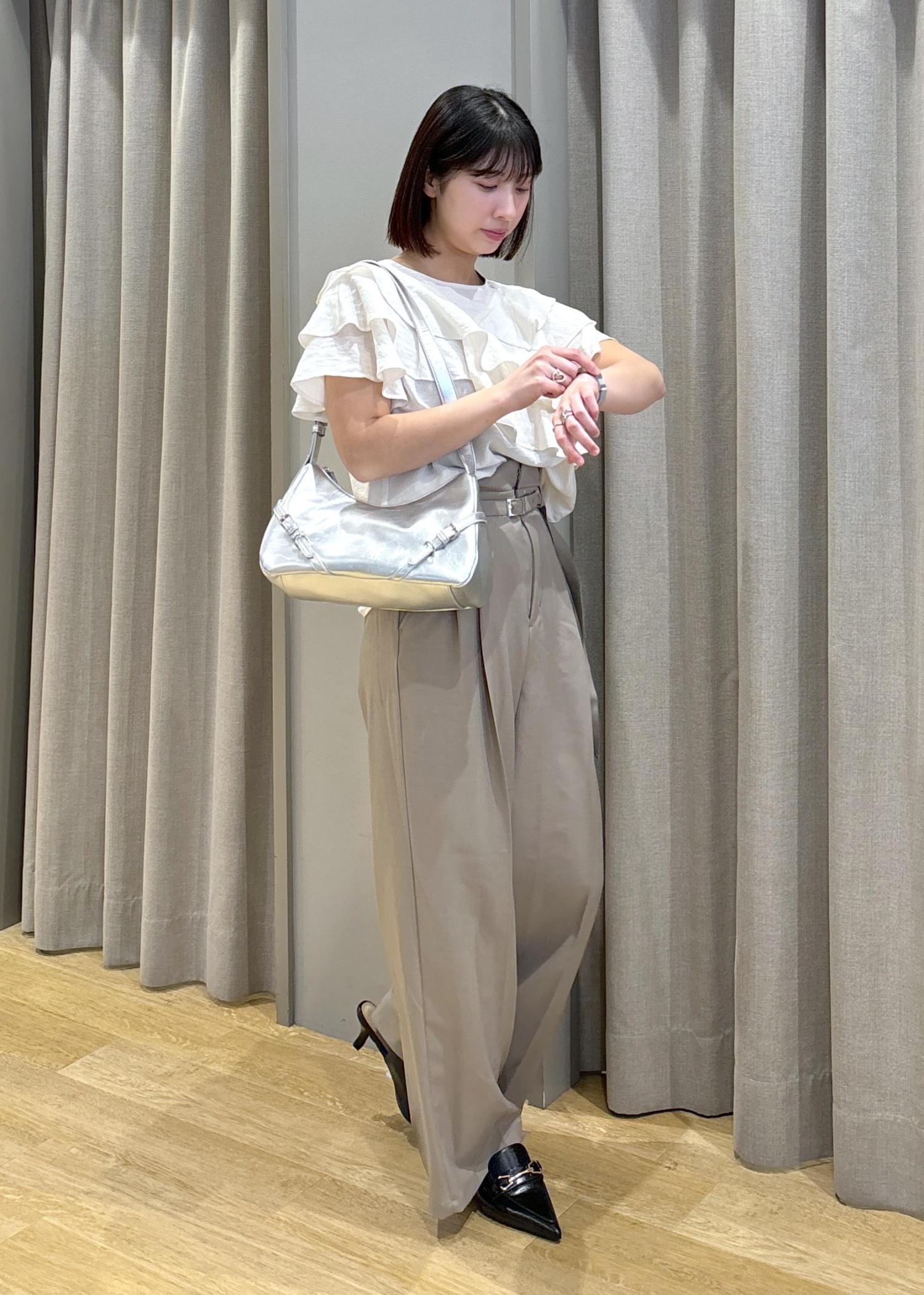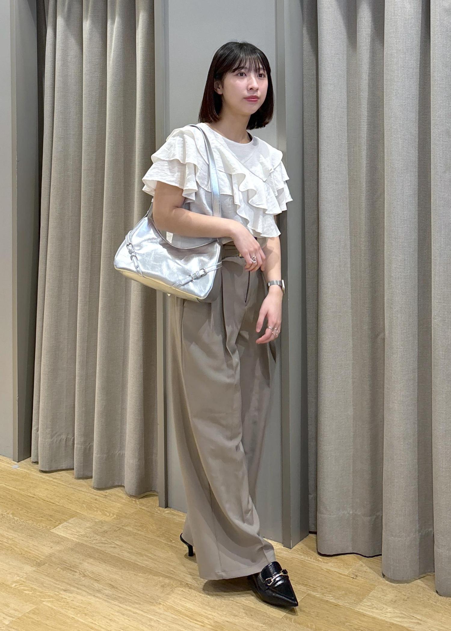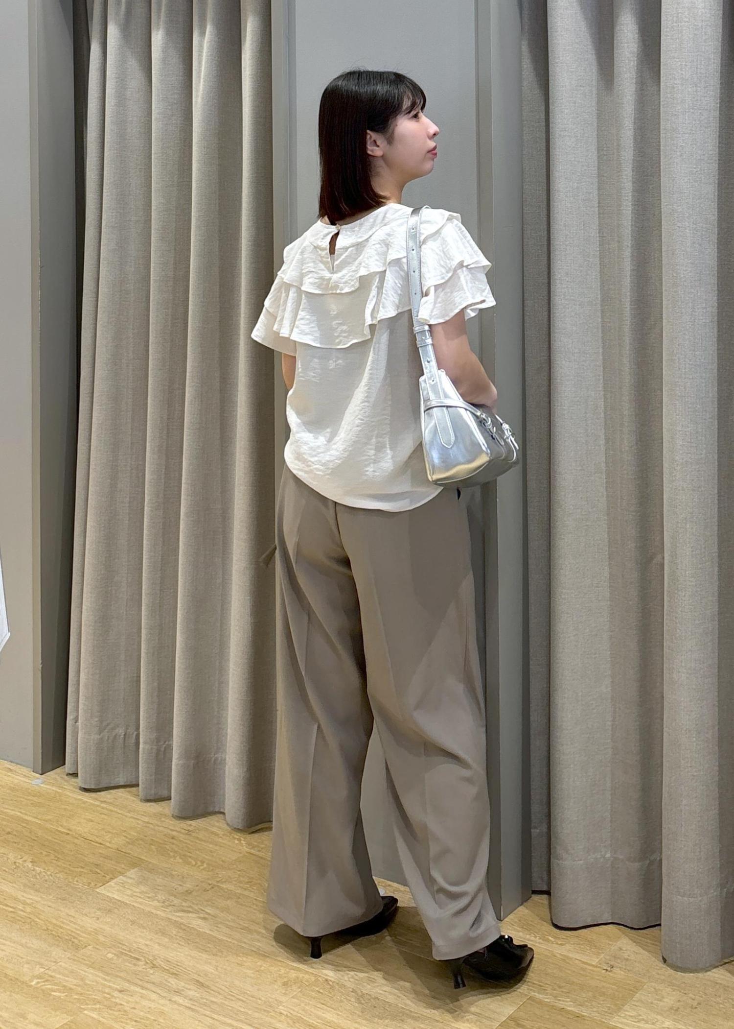 フリルティアードブラウス×タックワイドスラックス