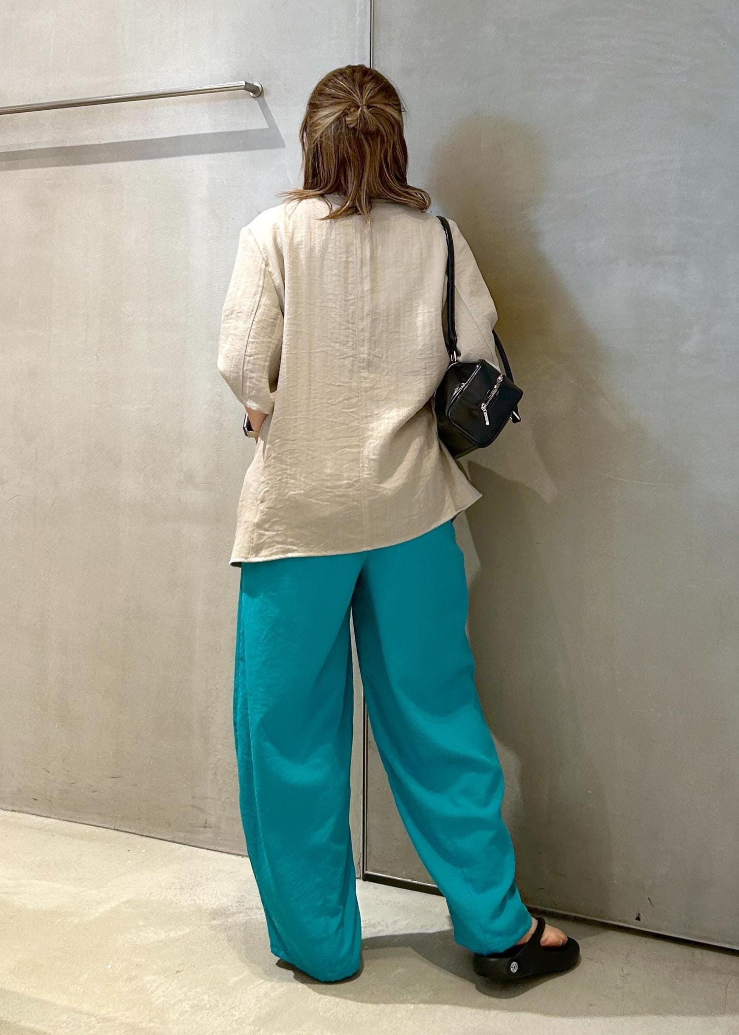 リネンの様な肌触りで、汗ばむ季節にぴったり。ゆとりがあるサイジングで、腰周りのコンプレックスのある私でも余裕を持って着用できました。