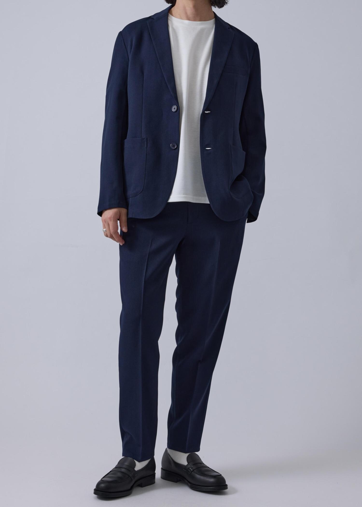j.n.r.dエアコンフォートスラックス/セットアップ対応/軽量/イージーケアネイビー / L¥6,600レビューとにかく軽く、涼しい履き心地で高いストレッチ性もあり、快適なスラックスです。ややコンパクトな作りでスッキリとしたシルエット。