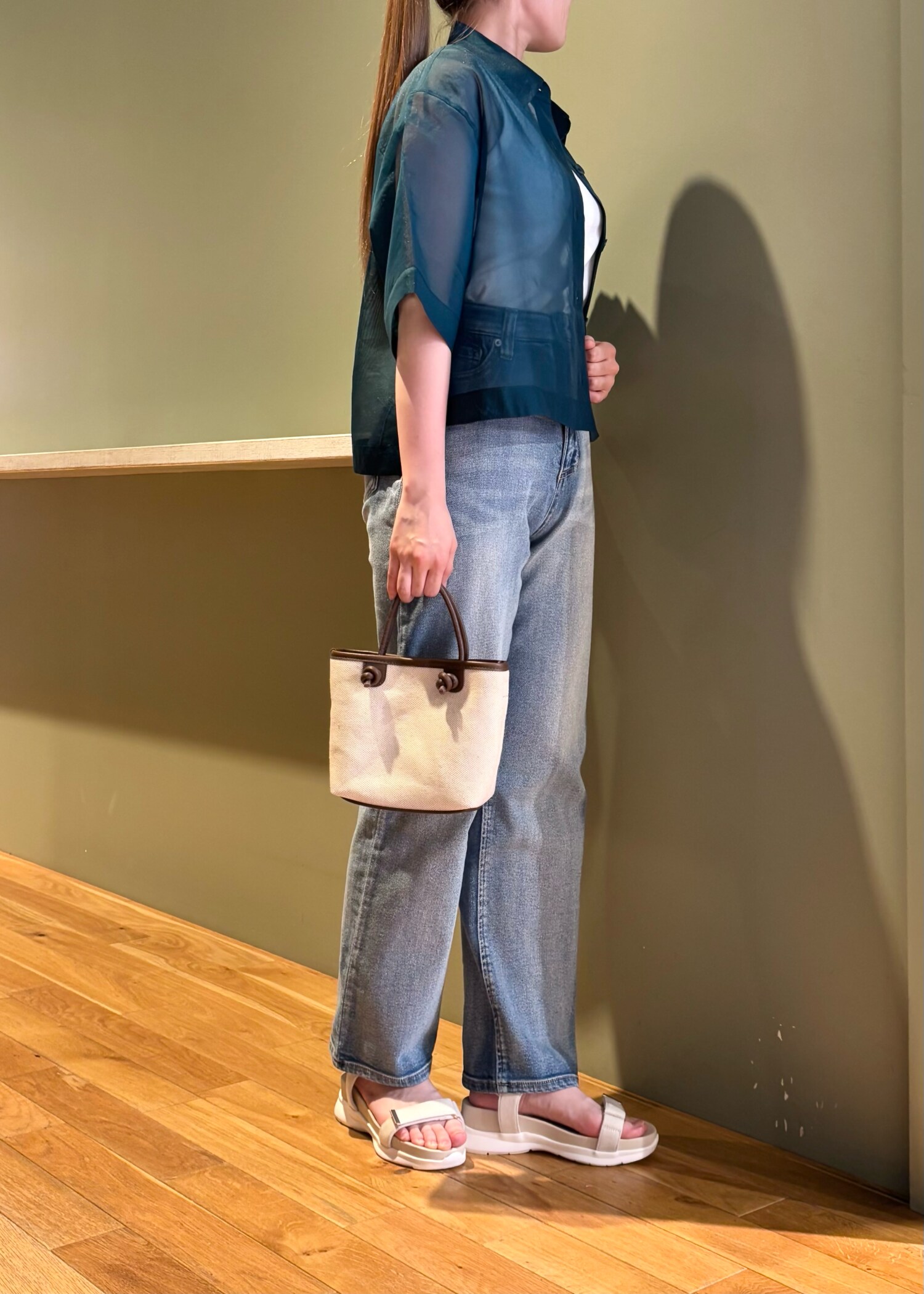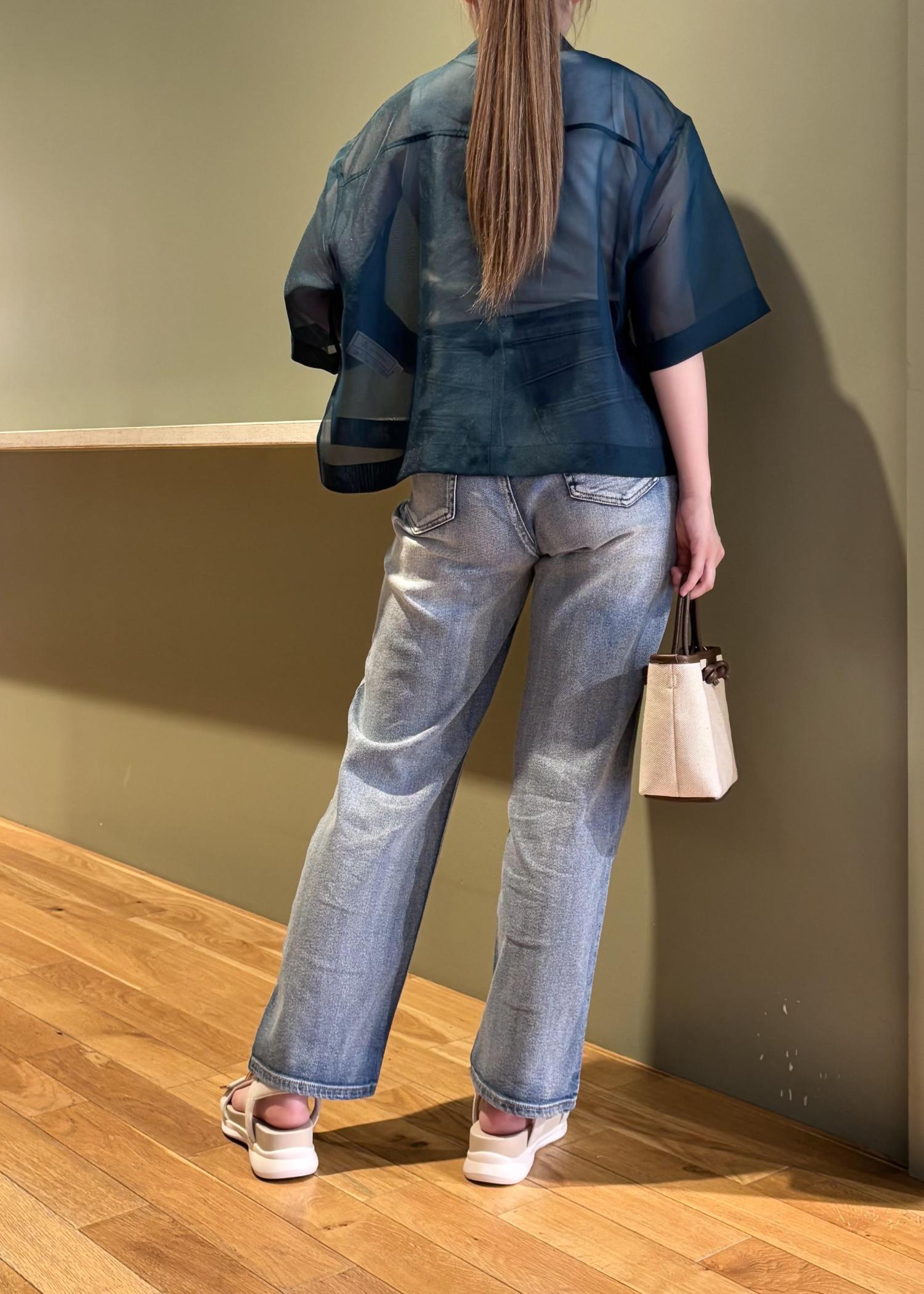 ハーフスリーブシアーシャツ×アメスリタンク×革命デニム コーデ