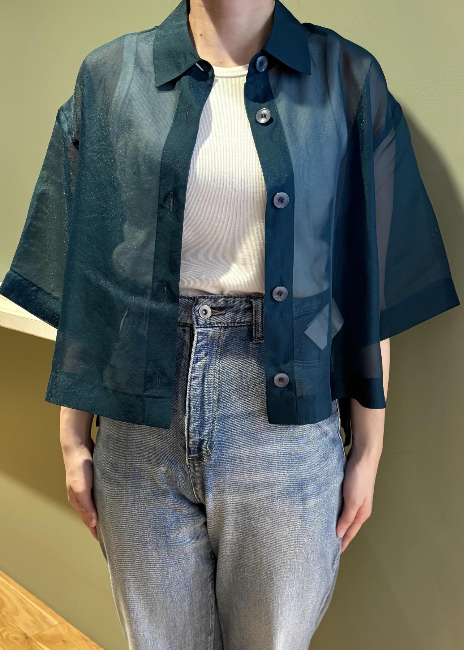 定番色のチャコール、白やブラウンに加え、シアーシャツではあまり見かけないダークグリーンの4色展開です。 -