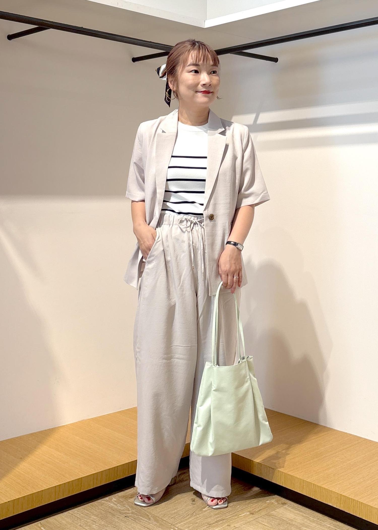 インナーに合わせたボーダーニットも接触冷感機能付きで、コーデした全てのアイテムが暑い日にピッタリです☆