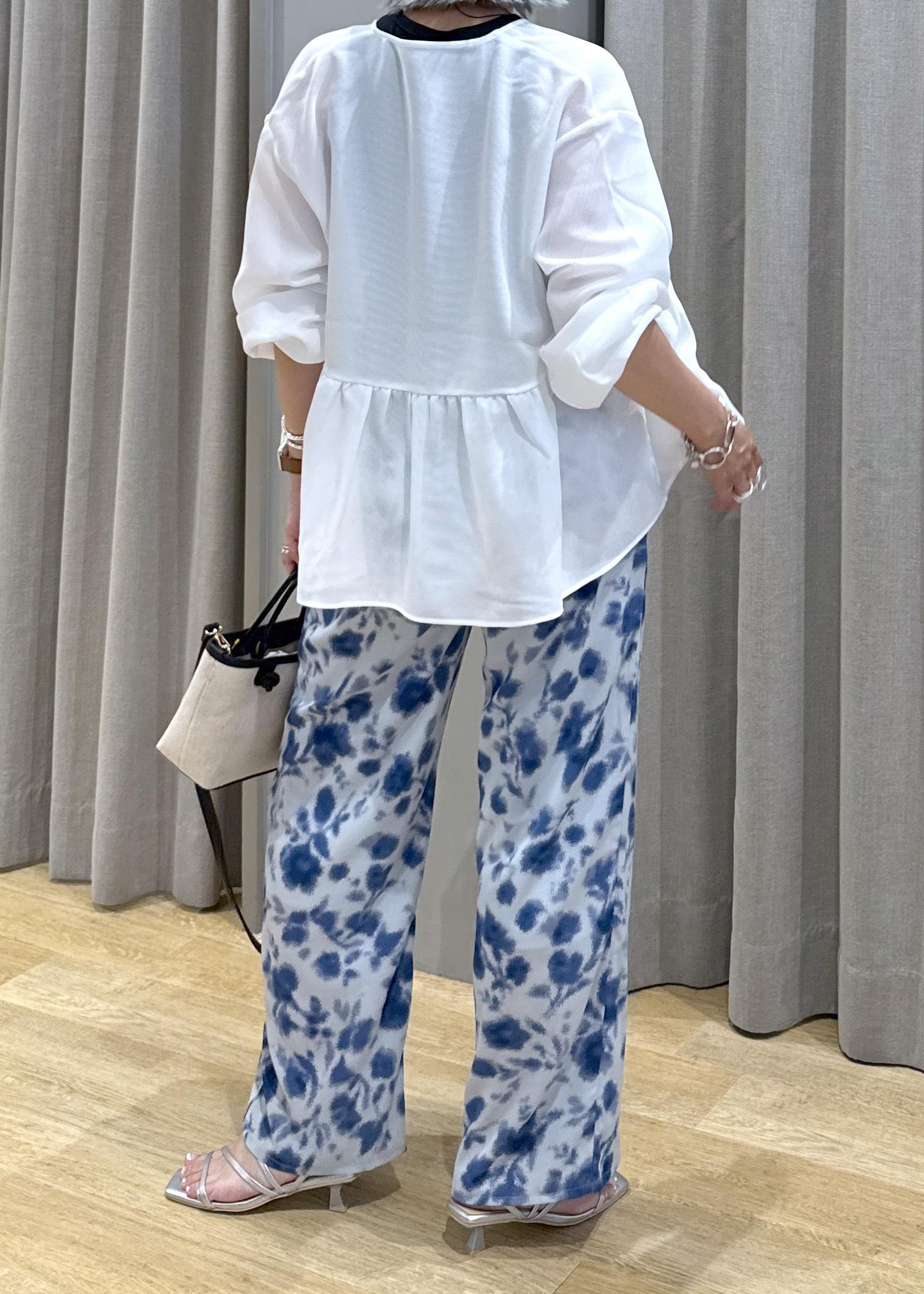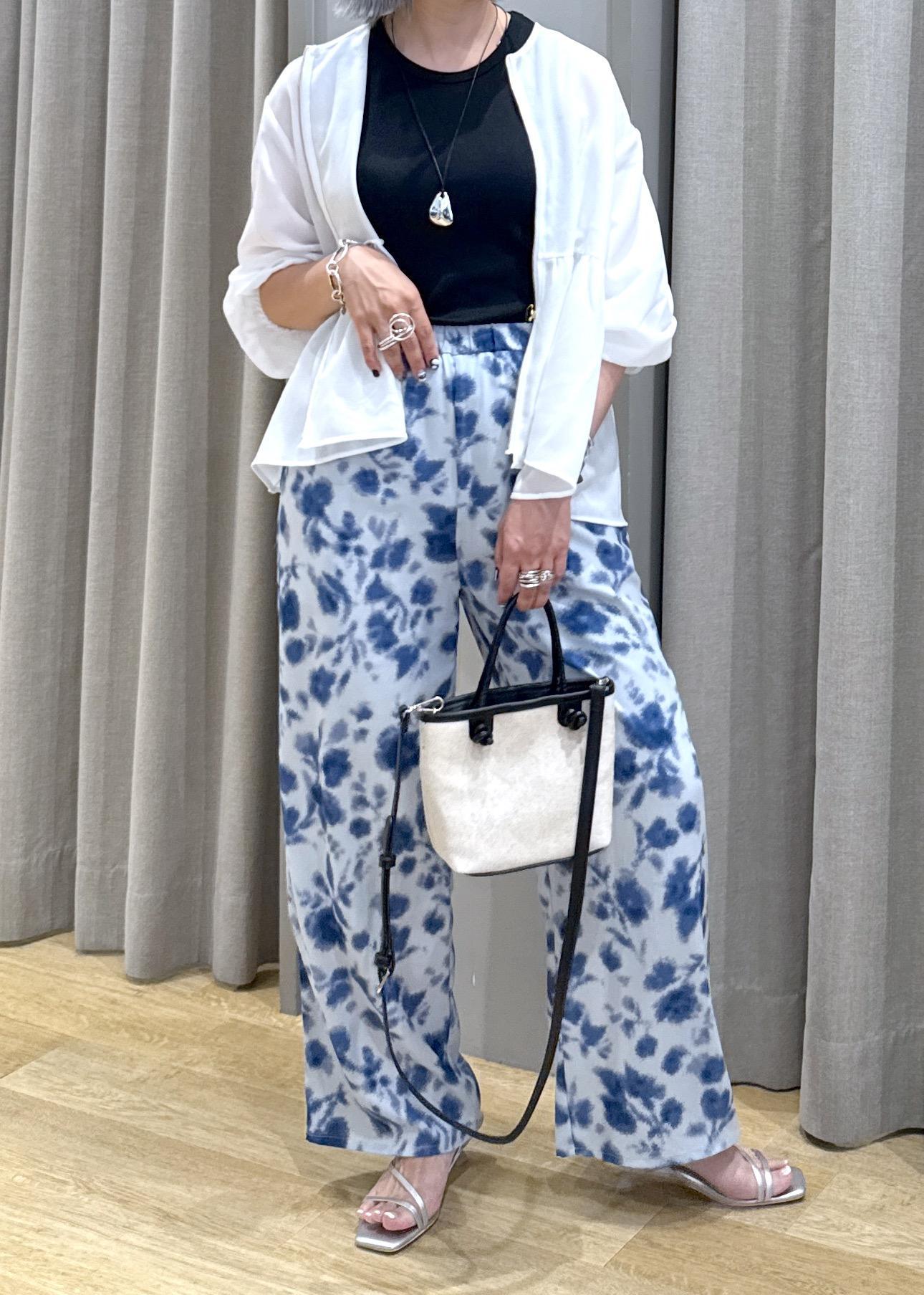 アウトレットROPÉ PICNICフローラルプリントイージーパンツサックス / 38¥3,245レビューニュアンスの花柄がとてもオシャレな