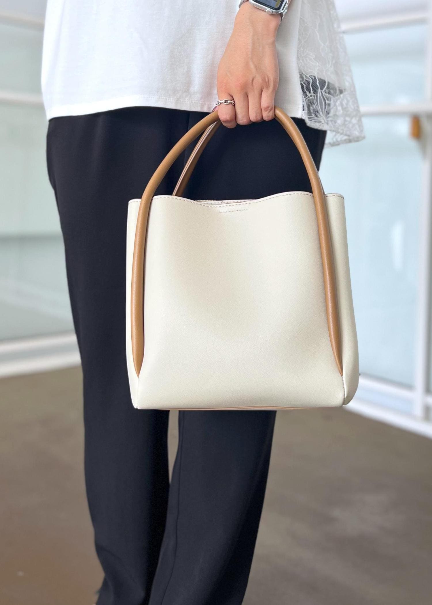 アウトレットROPÉ PICNIC PASSAGE3層スクエアフォルムミドルショルダー&ハンドバッグキナリ / F¥2,996レビュー内側で3層構造で仕分けのしやすいデザインです。