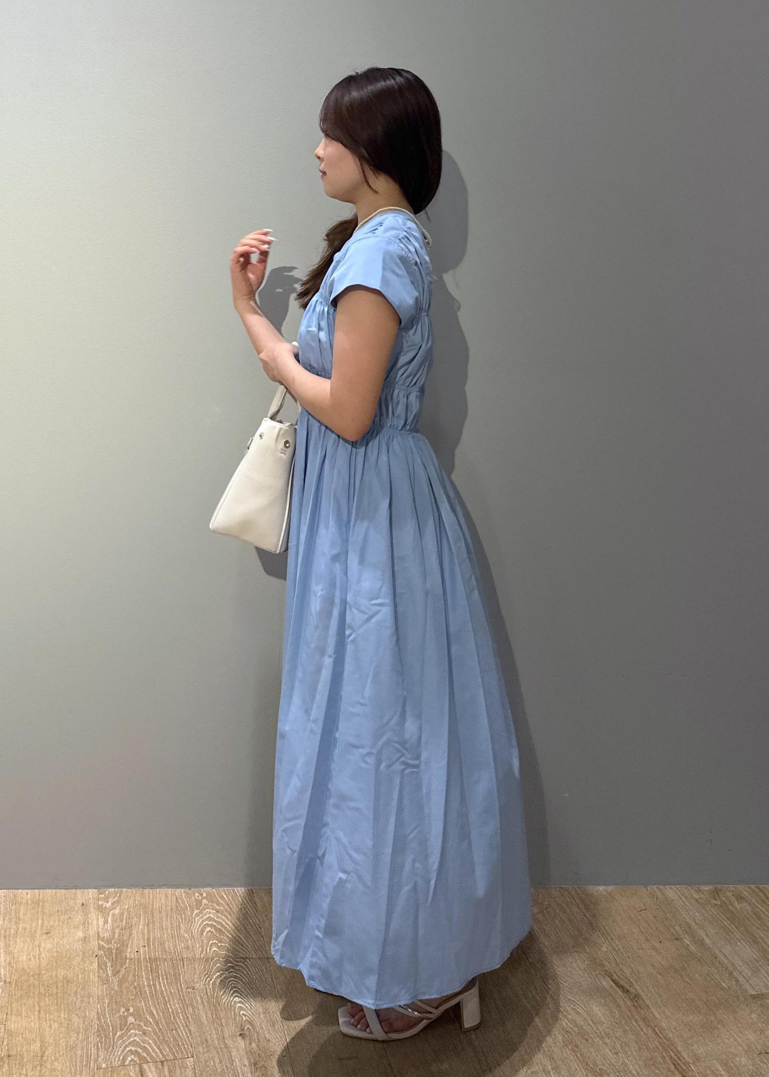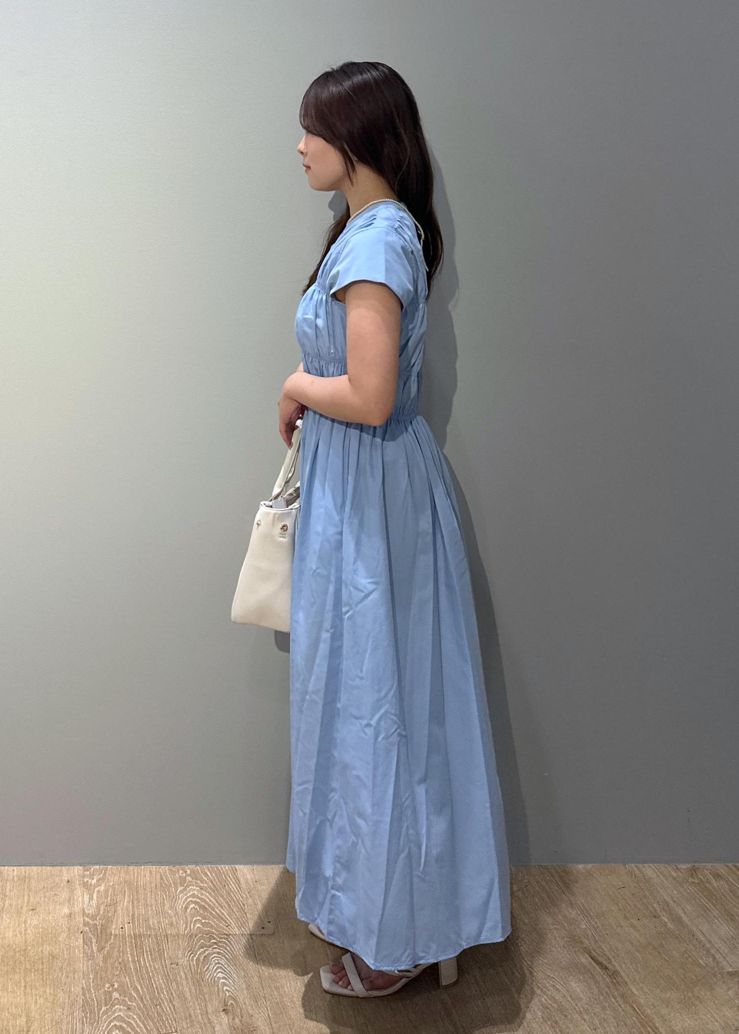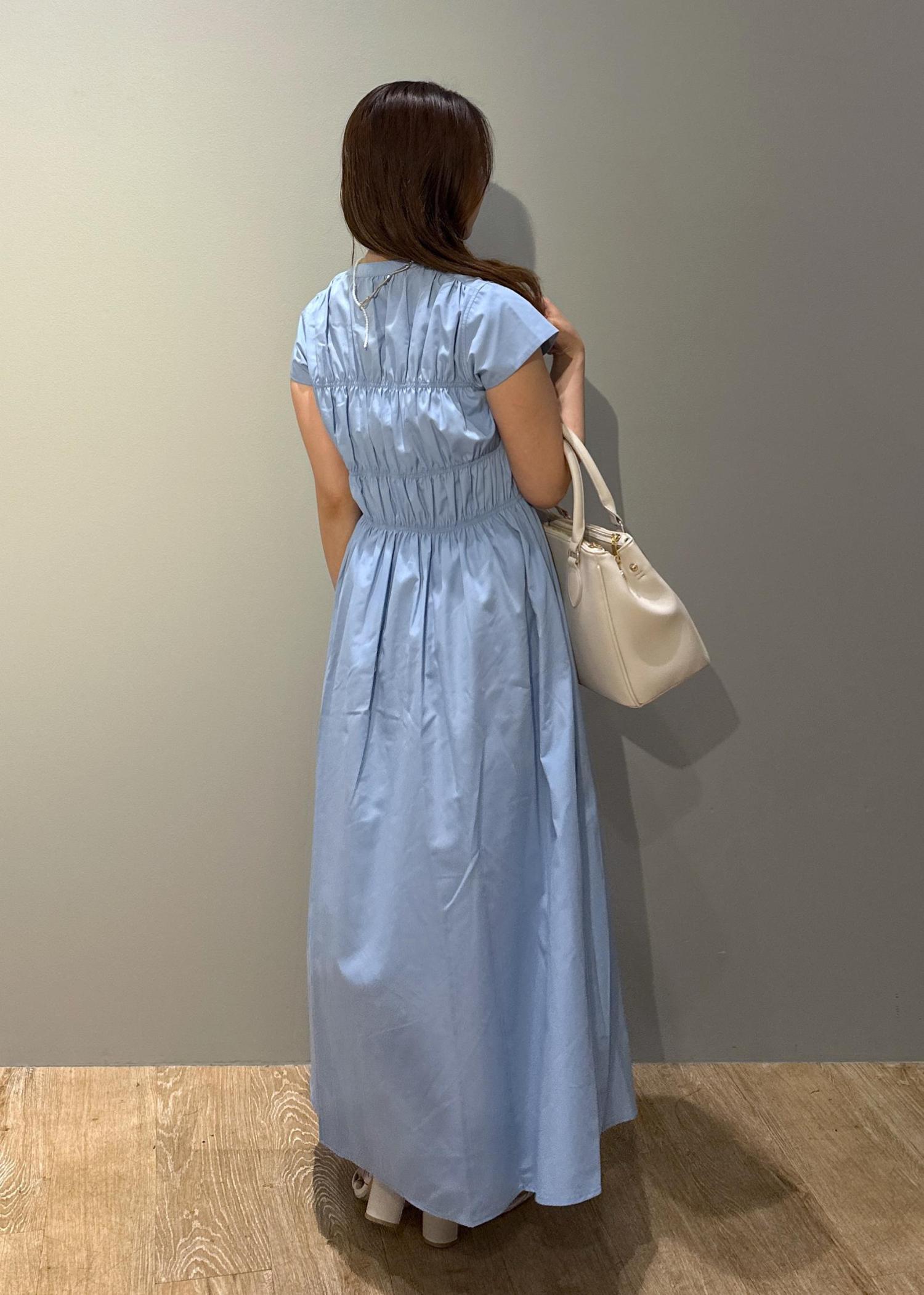 アウトレットVISシャーリングデザインワンピース【WEB限定サイズ】ブルー系 / F¥3,955レビュー丈はくるぶしより上で、ぺたんこ靴でも床に付かずに着用できました。