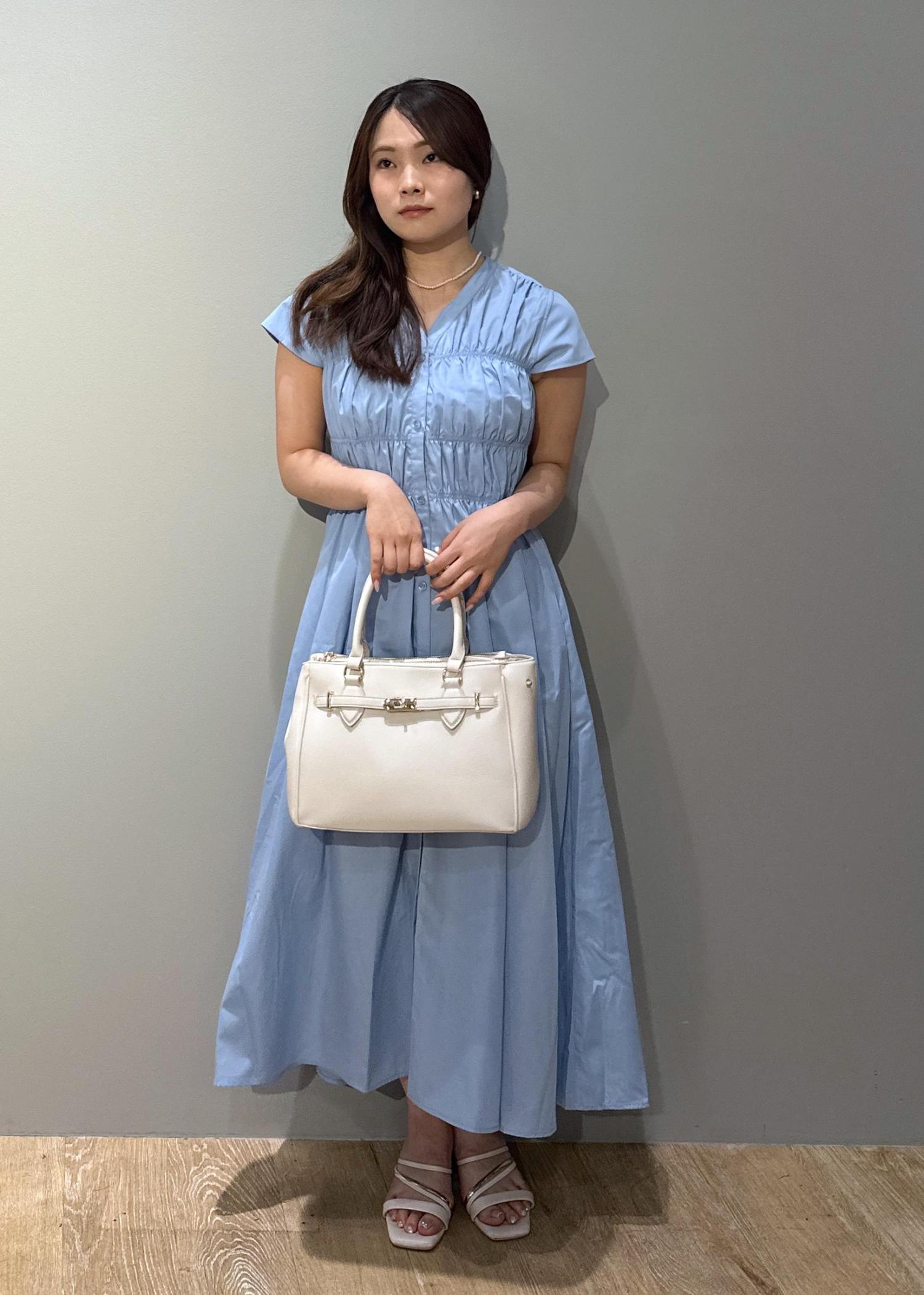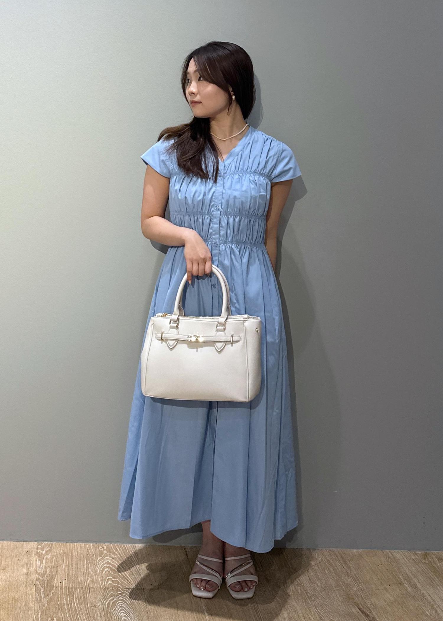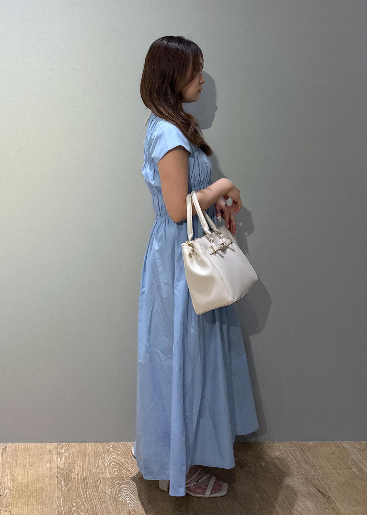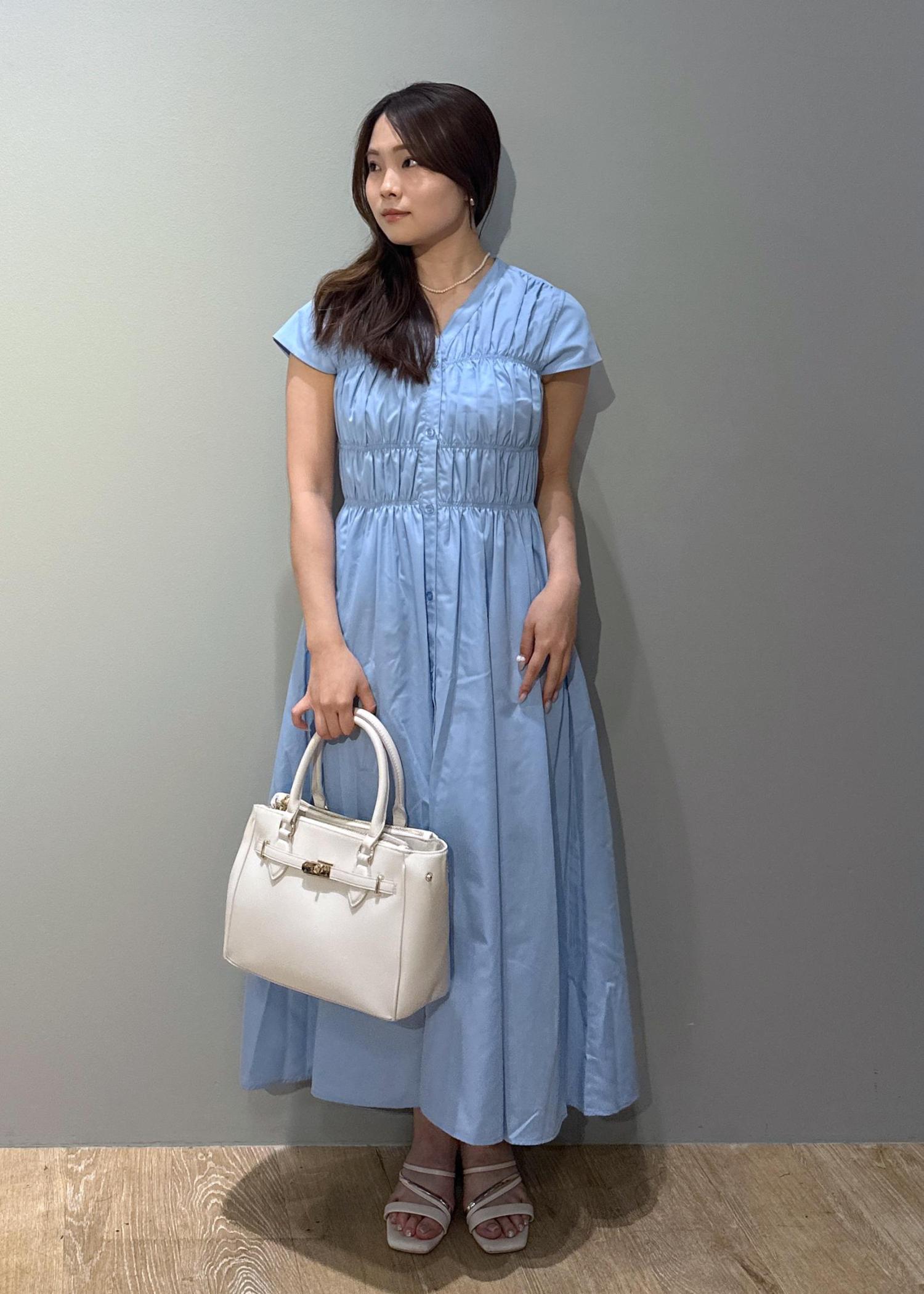 アウトレットVISシャーリングデザインワンピース【WEB限定サイズ】ブルー系 / F¥3,955レビュー丈はくるぶしより上で、ぺたんこ靴でも床に付かずに着用できました。